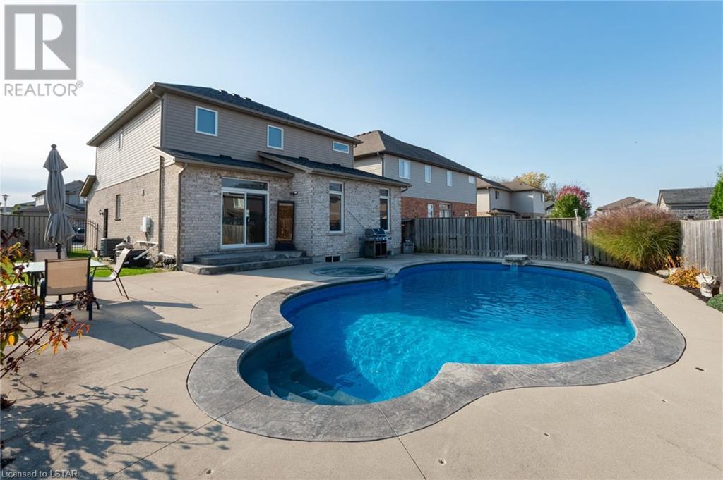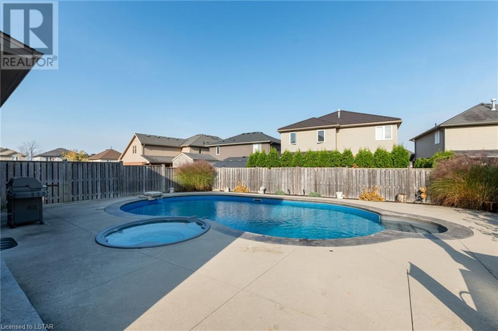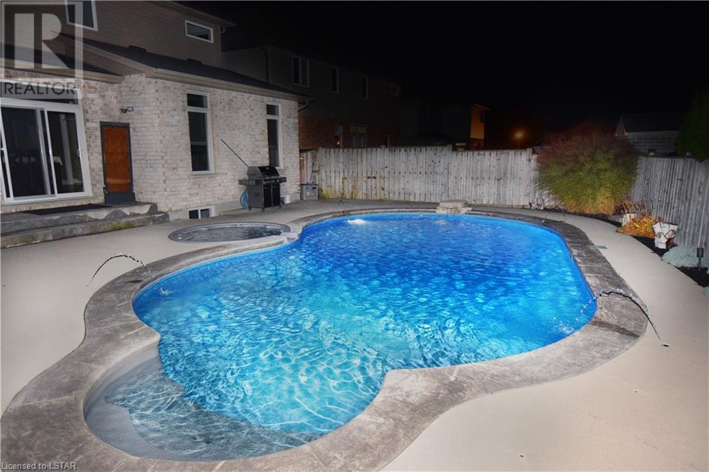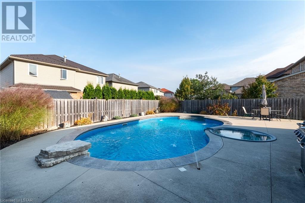 Welcome to your dream home. This exquisite 3-bedroom, 2.5 bathroom family residence in the heart of Hyde Park offers the perfect blend of comfort and relaxation. This home is 2057sf. above ground with additional space in the lower level. Nestled on a spacious lot with a side yard on a private cul-de-sac. This spacious home offers a large primary bedroom with an ensuite and walk-in closet. Two additional bedrooms to ensure convenience for the whole family. The kitchen boasts stainless steel appliances with a gas stove and built-in microwave and an oversized island. The open-concept design seamlessly connects the kitchen, dining area, and living room, creating an inviting space filled with natural light and perfect for entertaining. Additional features include hardwood floors on the main floor, spacious laundry room, corner pantry, freshly painted, owned water heater, central vacuum with accessories. Step right into your own Outdoor Oasis, to your private backyard sanctuary, complete with a large concrete patio and deck, lush landscaping, and room for outdoor dining and relaxation. Enjoy your summers around your salt-water pool with spill-over spa hot tub; deck jets, diving rock, with waterfall, and pool water lights, also new pool gas-heater recently installed. Don't hesitate to book your own private showing today. (id:22211)