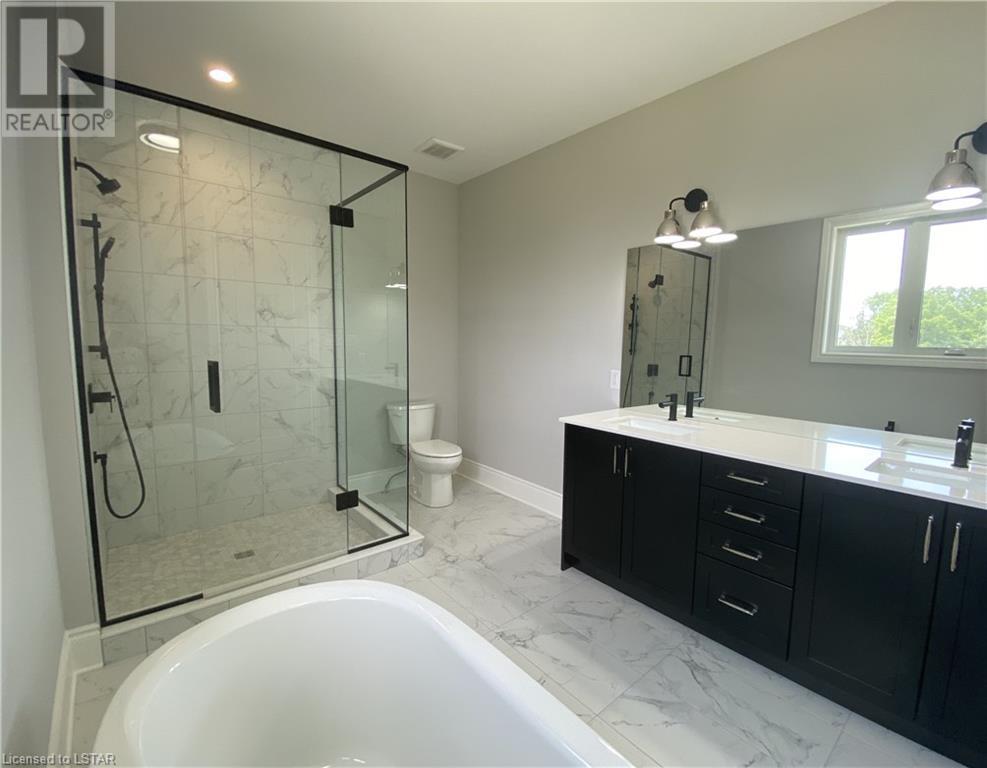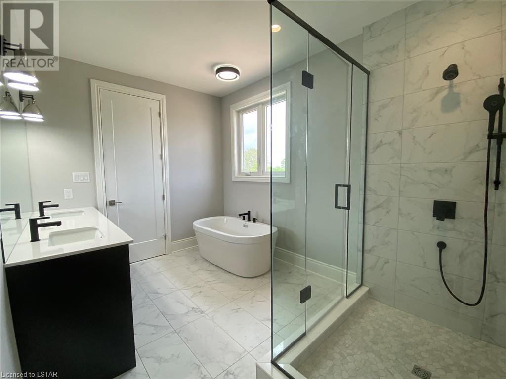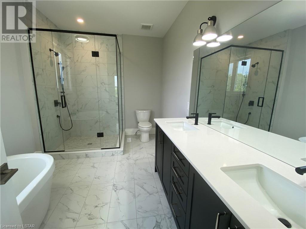 The search is over for your DREAM HOME! Imagine waking up to the sounds of the babbling Thames River while taking in the beautiful surroundings of Meadowlily Woods. Be the first to live in this 2-storey, 5+ bedroom, 5 bath professionally designed home located on the quiet dead-end cul-de-sac of Victoria on the River. Featuring stunning exteriors including Hardi Board siding and a Covington Slate paving stone driveway. Step inside to over 3500/sq ft of finished living space, oversized windows giving tons of natural light, sizeable natural gas fireplace to cozy up to in the family room, open concept with chef inspired kitchen, second floor laundry room, attractive hardwood flooring, rough-in for bar or kitchenette in lower level, as well as walkouts on each level to your future balcony! No fighting for use of the bathroom when each bedroom on the second level has an ensuite! Great location with easy access to the 401/402 Hwy. Act fast, this stunner won’t be around for long! (id:22211)