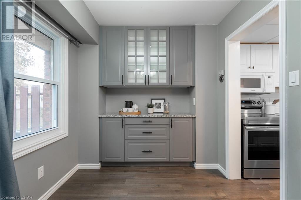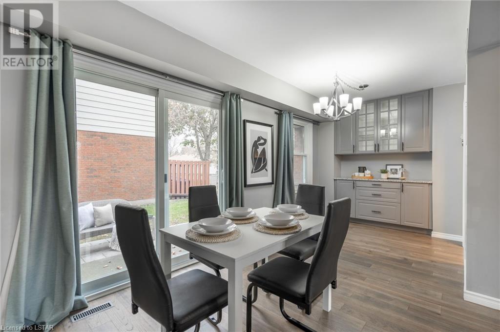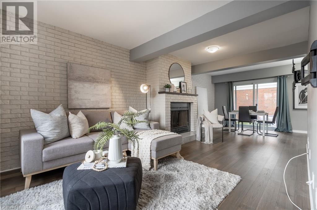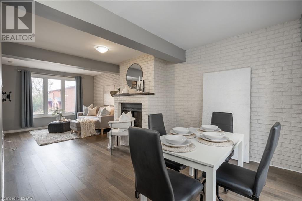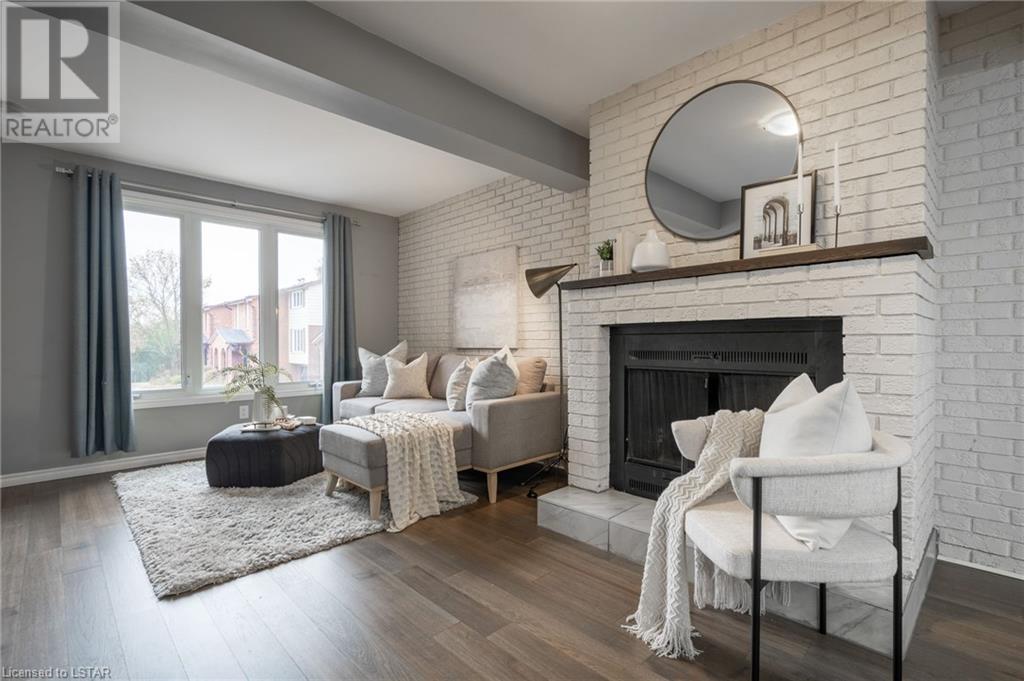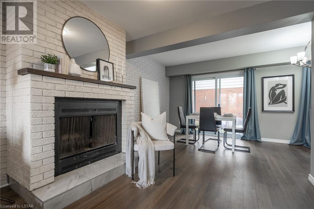 Welcome to 295 Wilkins Street. This 3-story townhome in South London offers a perfect blend of comfort, style, and convenience. Situated in the coveted Highland neighbourhood, this timeless home features a classic red brick exterior offering a lasting first impression. The main floor features a large living room with cozy wood fireplace and captivating white brick accent wall, creating a warm and welcoming environment next to the formal dining space with built-in coffee bar. The updated galley kitchen includes quartz countertops, ample cabinet space and pantry for your storage needs. Main floor is completed with convenient 2pc bathroom. An open staircase leads to the upper level, where three bedrooms offer comfort and privacy. The primary bedroom features a modern 3pc ensuite bathroom and walk-in closet. Upper level is also home to a 4pc main bath and bonus walk-in closet. Engineered hardwood flooring found on the main and upper levels adds sophistication and durability. The lower level boasts an upgraded laundry room with plenty of counter space, sink and cabinets, complemented by stylish tile flooring. This townhome also includes an attached garage and offers visitor parking, walking paths, and Mitches Park down the street. Commuting is easy with transit access, LHSC, shopping, and dining just a few minutes away. The 401 Highway and Downtown London are both less than 10 minutes from your doorstep. Don't miss the opportunity to make this South London townhouse your new home, where style, comfort and accessibility blend together for the perfect living experience. (id:22211)
