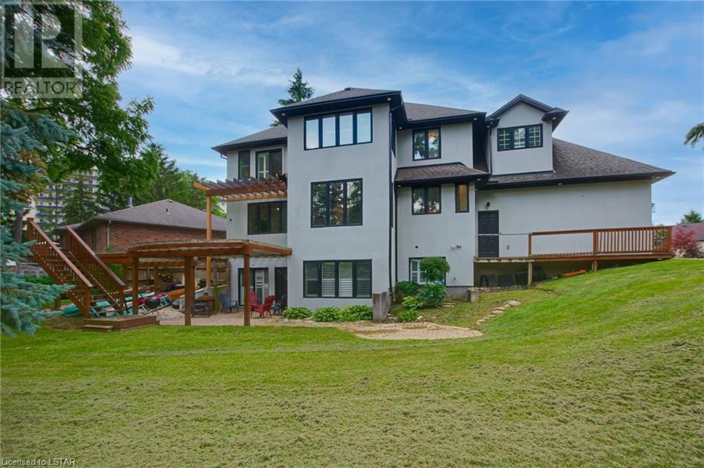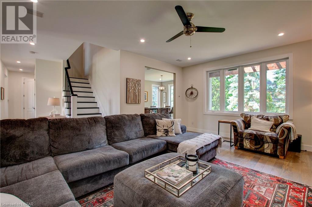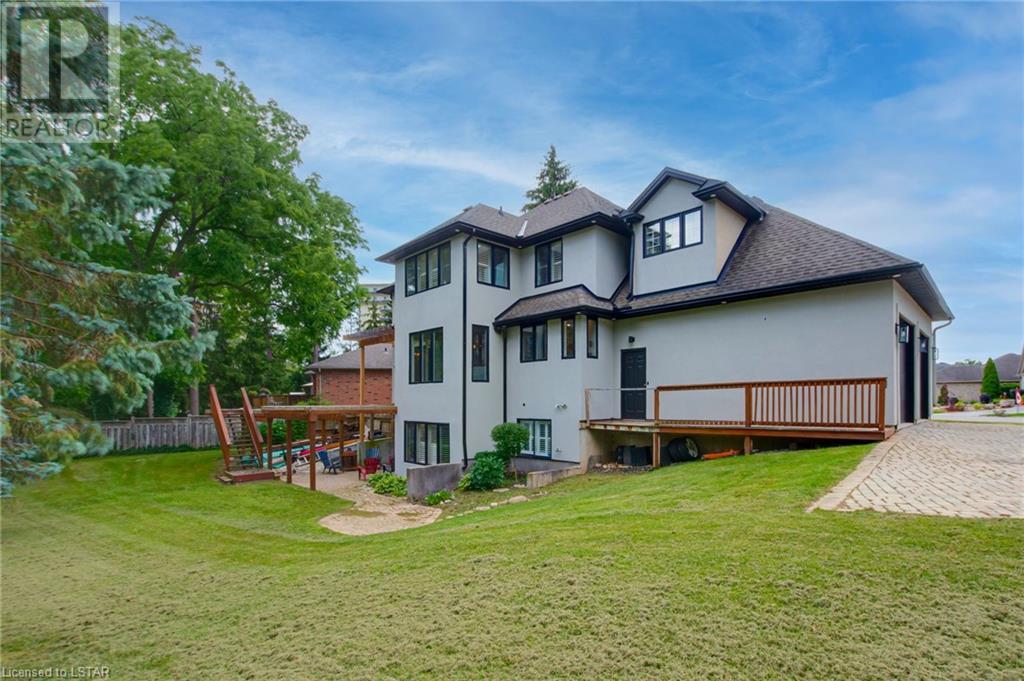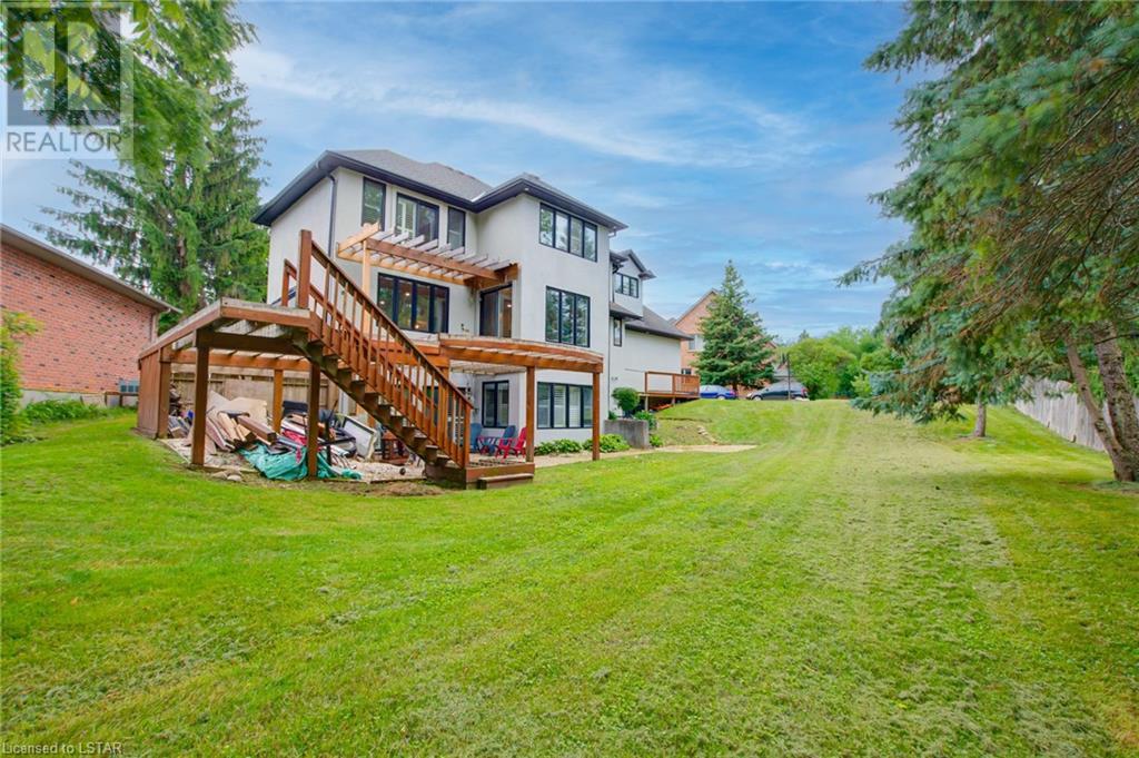 Welcome to the stunning 30 Exmoor Place. Prime location, impeccable features and situated on a peaceful cul-de-sac, within Tetherwood Estates, this home offers privacy and tranquility. As you enter the heart of the home, behold the bright, open main living area with its abundant natural light, lofty 9-foot ceilings, 8 foot doors, and spacious room sizes; catering to both entertaining and family living, accommodating any lifestyle. The chef's dream kitchen boasts ceiling height cabinets, built in stainless steel appliances, large windows, and access to an outdoor deck, that is ready for your customized finishing; ideal for gatherings, or taking in the sunrise and sunset from the second level. The private sanctuary that is the primary suite is a true retreat, offering spaciousness, serenity and an exquisite ensuite bathroom that resembles a luxurious spa. Complete with a dressing room and access to the second floor laundry room, this suite is not lacking in convenience. The second floor has 3 additional generous sized bedrooms and a bathroom. Descend to the lower level of this all encompassing, well thought out home, to be met with the self-contained 2 bedroom auxiliary unit, perfect for guests, extended family, or potential rental income. The bright, expansive walk out level is sure to be accommodating! With views of mature trees, lots of green space, ample deck space, close proximity to Thames Valley walking & cycling trails; this property provides an opportunity to offer your family and guests nothing short of the best! Enjoy the beauty of nature while relishing urban conveniences. Don't miss out on the rare opportunity that this immaculate home presents! (id:22211)