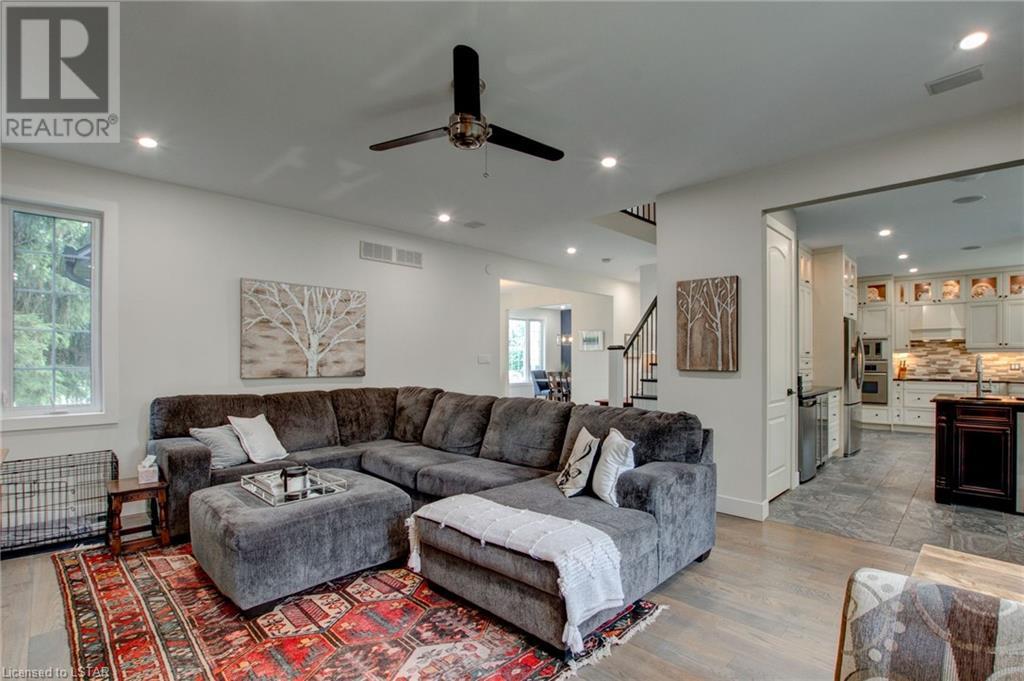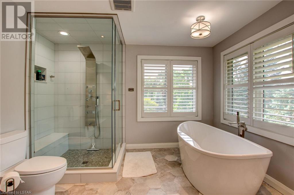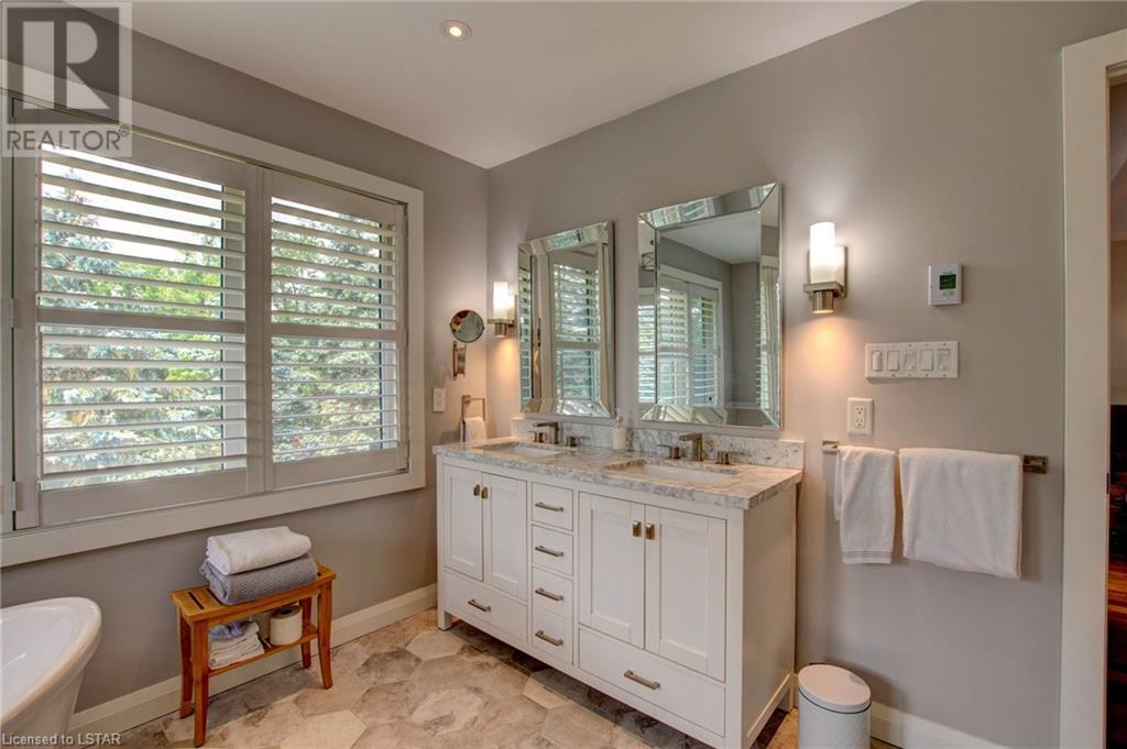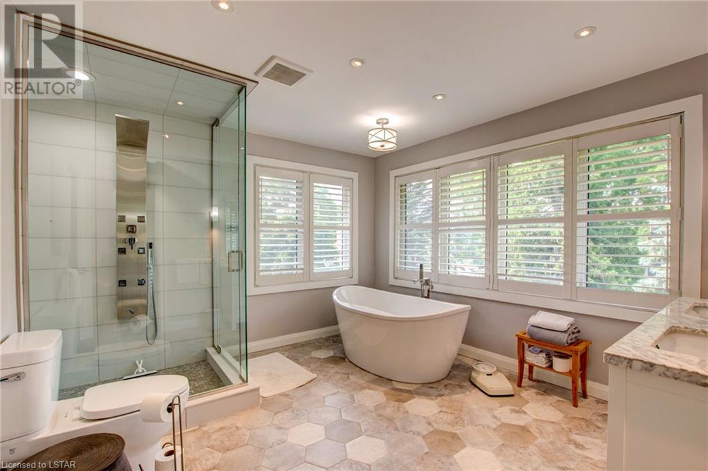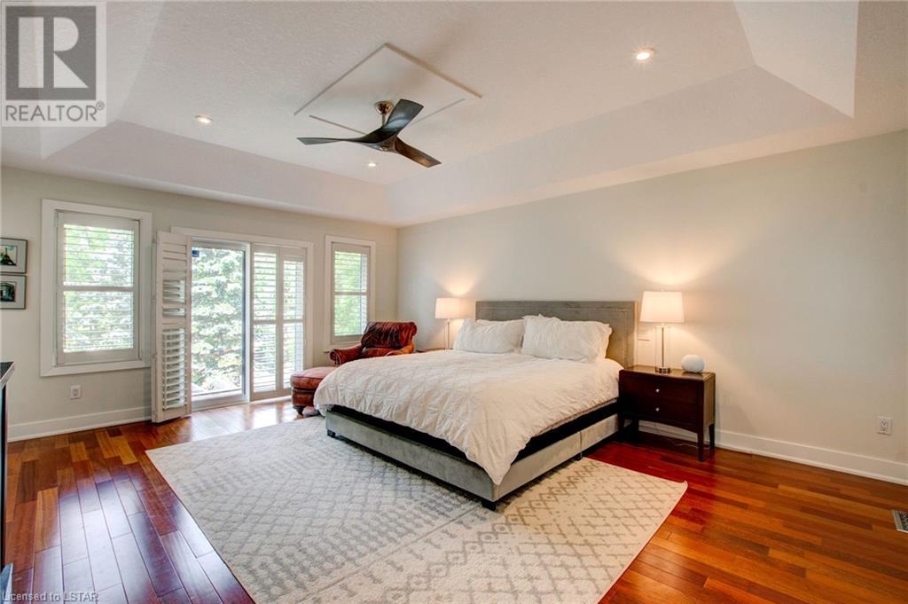 Welcome to the stunning 30 Exmoor Place. Prime location, impeccable features and situated on a peaceful cul-de-sac, within Tetherwood Estates, this home offers privacy and tranquility. As you enter the heart of the home, behold the bright, open main living area with its abundant natural light, lofty 9-foot ceilings, 8 foot doors, and spacious room sizes; catering to both entertaining and family living, accommodating any lifestyle. The chef's dream kitchen boasts ceiling height cabinets, built in stainless steel appliances, large windows, and access to an outdoor deck, that is ready for your customized finishing; ideal for gatherings, or taking in the sunrise and sunset from the second level. The private sanctuary that is the primary suite is a true retreat, offering spaciousness, serenity and an exquisite ensuite bathroom that resembles a luxurious spa. Complete with a dressing room and access to the second floor laundry room, this suite is not lacking in convenience. The second floor has 3 additional generous sized bedrooms and a bathroom. Descend to the lower level of this all encompassing, well thought out home, to be met with the self-contained 2 bedroom auxiliary unit, perfect for guests, extended family, or potential rental income. The bright, expansive walk out level is sure to be accommodating! With views of mature trees, lots of green space, ample deck space, close proximity to Thames Valley walking & cycling trails; this property provides an opportunity to offer your family and guests nothing short of the best! Enjoy the beauty of nature while relishing urban conveniences. Don't miss out on the rare opportunity that this immaculate home presents! (id:22211)