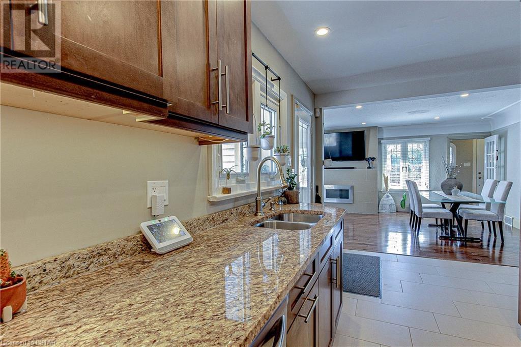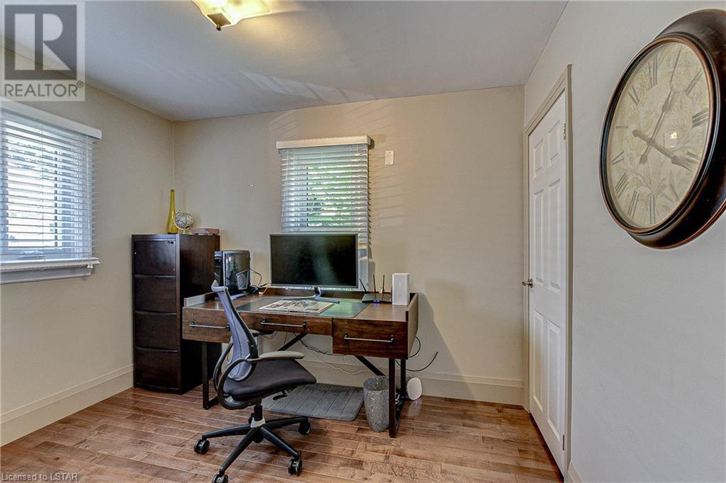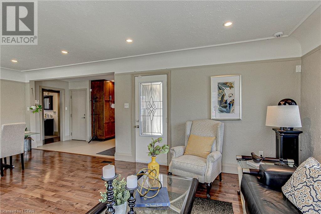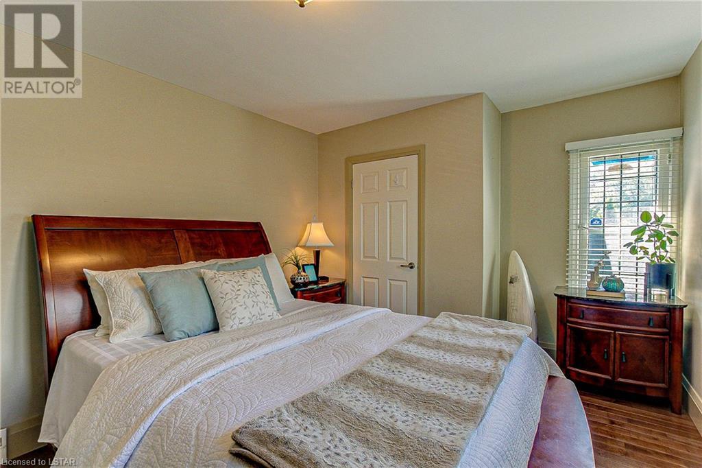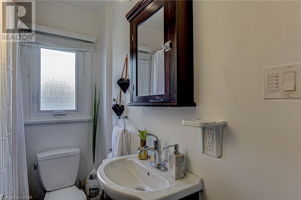 Excellent opportunity to own this solid property with all convenience around! 2 bedrooms on main with upgraded kitchen, flooring & bathroom. Gas fireplace in living room with eating area. The lower level has separate entrance with full kitchen, bathroom and 2 bedrooms perfect for granny suite or additional rental income. Oversized 28x24 foot garage enough for cars and equipment. Located in high traffic area, this property would be perfect for starters with extra rental income, small business owners with exposure on Wellington road. Well maintained! One call you are in! (id:22211)