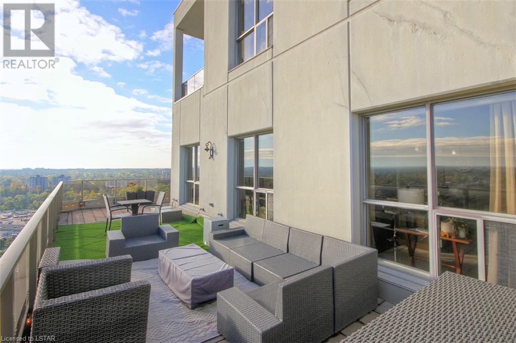 Paradise in the Sky! Impressive Bright 24th Floor Private 2200 Sq Ft Executive Corner Penthouse with 720 Sq Ft Wrap Around Terrace, and an Additional 186 Sq Ft Balcony off the Master, Only 6 Private Condos on the 24th Floor. 2 Bedrooms + Den, 5 Piece Master Ensuite, and 4 Piece Guest Bathroom. South West Facing Condo with 2 Premium Penthouse Parking Spots (UG 11 & UG 14) + Oversized Storage Locker (Main Level - 6). All the Finishing's You Can Expect in a Luxurious Penthouse, Plus High-End Audio / Video System throughout Professionally Installed by London Audio. Open Design is Perfect for Entertaining. Modern Hardwood Flooring (no carpet), Large Master Bedroom, 2 x Walk in Closets, with 5 Piece Ensuite Bathroom, Modern Walk-in Shower, Separate Jucuzzi Tub, Double Sinks & Heated Flooring. High End Upgraded Stainless Steel Appliances Complete with Customized Granite Counter Tops & In-Suite Laundry. Building Facilities include Large Professional Exercise Centre, Massive Party Area w/Pool Table, Professional Theatre Room, Outdoor Terraces contains Gas Fireplace, BBQ's, Putting Green, Loads of Patio Furniture & 2 Guest Suites! Walking Distance to Budweiser Gardens & Covent Market. EV Car Charging Port Available Ask Listing Agent for Details (id:22211)