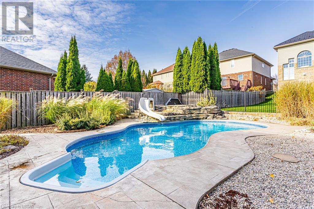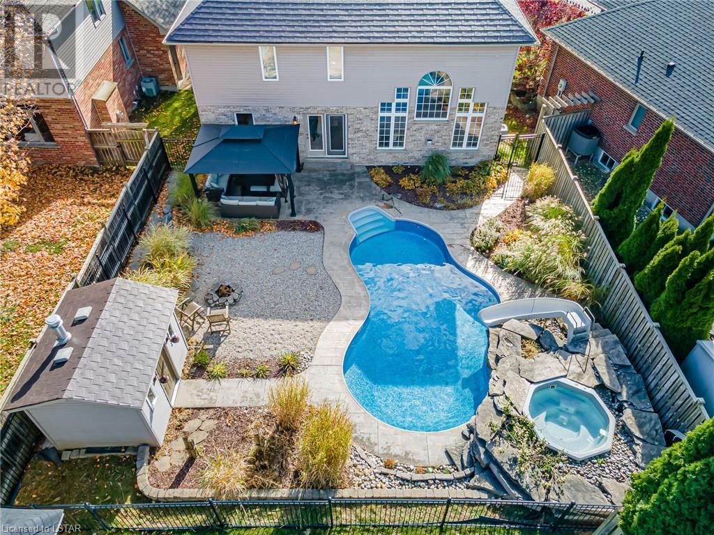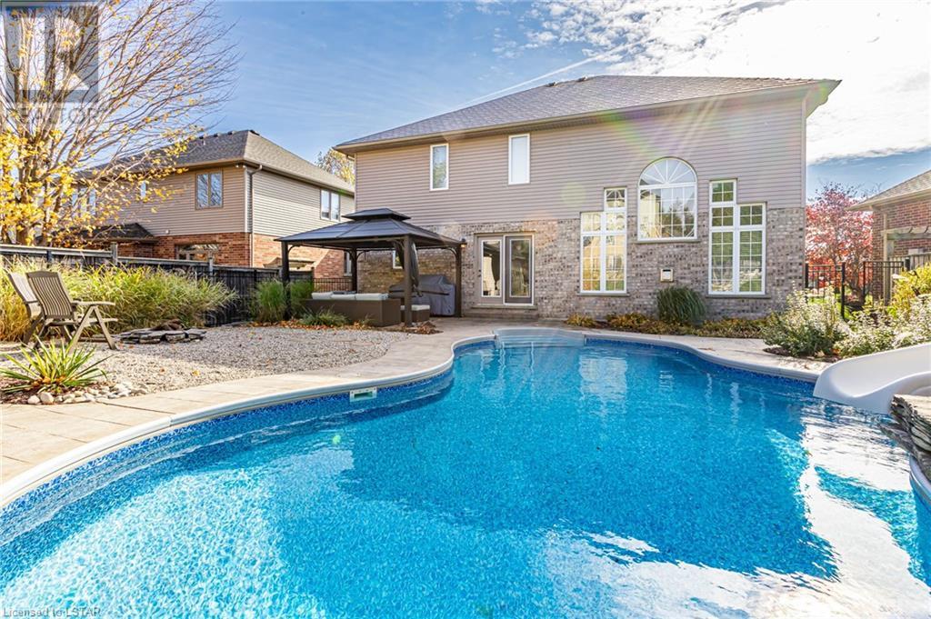 This charming 2-storey home is situated in a family-oriented community, offering an ideal blend of convenience and comfort. Located within walking distance of Jack Chambers Public School, and just steps away from community ponds, trails, public transit and more, this property offers the perfect setting for family life. The house itself is a standout gem, featuring a spacious interior with high ceilings that create an inviting atmosphere. The double-car garage and ample parking space for up to 6 cars ensure you'll have plenty of room for vehicles and guests. With 4 bedrooms, including a primary bedroom complete with a walk-in closet and a luxurious 5-piece ensuite, this home is designed to provide you and your family the opportunity to grow into. The main level of the house is designed with an open concept in mind, highlighting an open concept kitchen with an eat-at island. From here, you can enjoy direct views of the backyard, making it easy to keep an eye on outdoor activities! Speaking of the backyard, it's a true oasis with an in-ground saltwater pool, a relaxing hot tub overlooking the pool, a cozy gas fireplace, and a covered gazebo. This outdoor space is perfect for entertaining and creating lasting family memories. The basement of the home offers a blank canvas for you to finish and customize according to your own preferences, and it features in-floor heating for added comfort.Some recent updates to the property include a durable metal roof, new windows, a 2-year-old furnace, a 1-year-old air conditioning system, and new covers for both the pool and hot tub. These upgrades make this home not only attractive but also a wise investment for the future. This property truly embodies the essence of a welcoming family home in a fantastic community, offering comfort, convenience, and plenty of potential for personalization. Don't miss the opportunity to make it your own. (id:22211)
