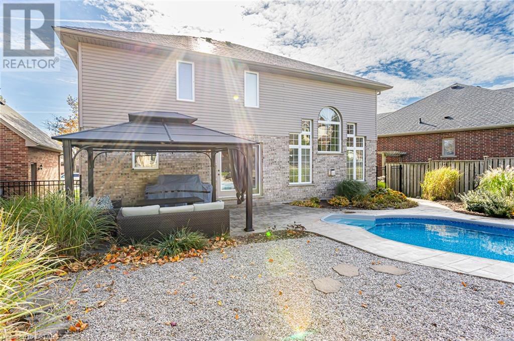 This charming 2-storey home is situated in a family-oriented community, offering an ideal blend of convenience and comfort. Located within walking distance of Jack Chambers Public School, and just steps away from community ponds, trails, public transit and more, this property offers the perfect setting for family life. The house itself is a standout gem, featuring a spacious interior with high ceilings that create an inviting atmosphere. The double-car garage and ample parking space for up to 6 cars ensure you'll have plenty of room for vehicles and guests. With 4 bedrooms, including a primary bedroom complete with a walk-in closet and a luxurious 5-piece ensuite, this home is designed to provide you and your family the opportunity to grow into. The main level of the house is designed with an open concept in mind, highlighting an open concept kitchen with an eat-at island. From here, you can enjoy direct views of the backyard, making it easy to keep an eye on outdoor activities! Speaking of the backyard, it's a true oasis with an in-ground saltwater pool, a relaxing hot tub overlooking the pool, a cozy gas fireplace, and a covered gazebo. This outdoor space is perfect for entertaining and creating lasting family memories. The basement of the home offers a blank canvas for you to finish and customize according to your own preferences, and it features in-floor heating for added comfort. Some recent updates to the property include a durable metal roof, new windows, a 2-year-old furnace, a 1-year-old air conditioning system, and new covers for both the pool and hot tub. These upgrades make this home not only attractive but also a wise investment for the future. This property truly embodies the essence of a welcoming family home in a fantastic community, offering comfort, convenience, and plenty of potential for personalization. Don't miss the opportunity to make it your own. (id:22211)