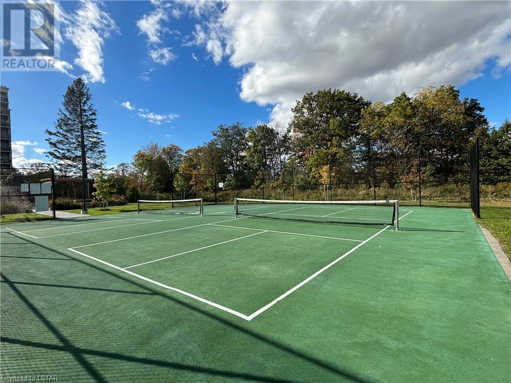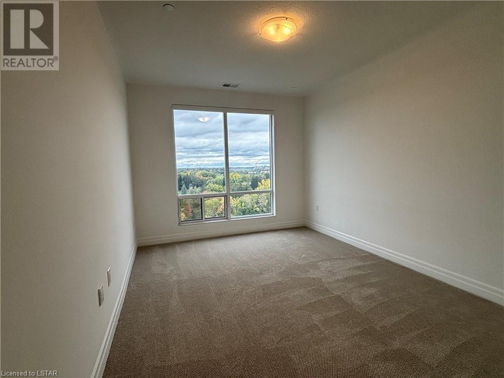 Stunning 1610 sqft north facing 2 bedroom with a den condominium, golf course and green area views from all windows. This unit features a contemporary design with a spacious kitchen including a walk in pantry, granite countertops and stainless steel appliances. High 9 foot ceilings, premium engineered wood flooring, a large living room leading to a 90 sqft balcony. The balcony is accessed through sliding doors where you can relax and enjoy the views. Gorgeous primary bedroom is complete with a large walk-in closet and luxury ensuite. Second bedroom also has a large walk-in closet and has a second full bathroom. Both bathrooms are featuring heated floors. This in-suite laundry room is large and with ample storage. This unit includes 2 owned parking spaces with one of them a EV spot. And a large size storage locker for the extras. Enjoy benefits of a condominium lifestyle in the incredible amenities centre that includes a games room, golf simulator, resident lounge, guest suite, sports court, gym, dining room. The unit is in a popular Tricar building located in North London. A perfect community for active and affluent living with Masonville Place with exceptional shopping, restaurants, Golf & Country Club, Sunningdale walking trails, grocery stores, entertainment, university hospital and Western university. (id:22211)