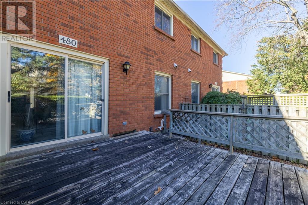 480 Wilkins St, London, On. Wonderful Lockwood Park, Sought after Highland Hills Complex. Large master bedroom with balcony, walk in closet, and updated elegant ensuite plus 2 other good sized spacious bedrooms, brand new kitchen with loads of cupboards and storage, Livingroom and Dining area with new carpet. Patio doors to fully enclosed, private back deck and patio area, lower finished family room plus loads of storage space, attached single car garage. Complex backs onto beautiful Mitches Park with walking trails, tennis courts, playground and greenspace Close to Victoria Hospital, Wortley Village, White Oaks Shopping Centre, Transit, Restaurants and all amenities. (id:22211)