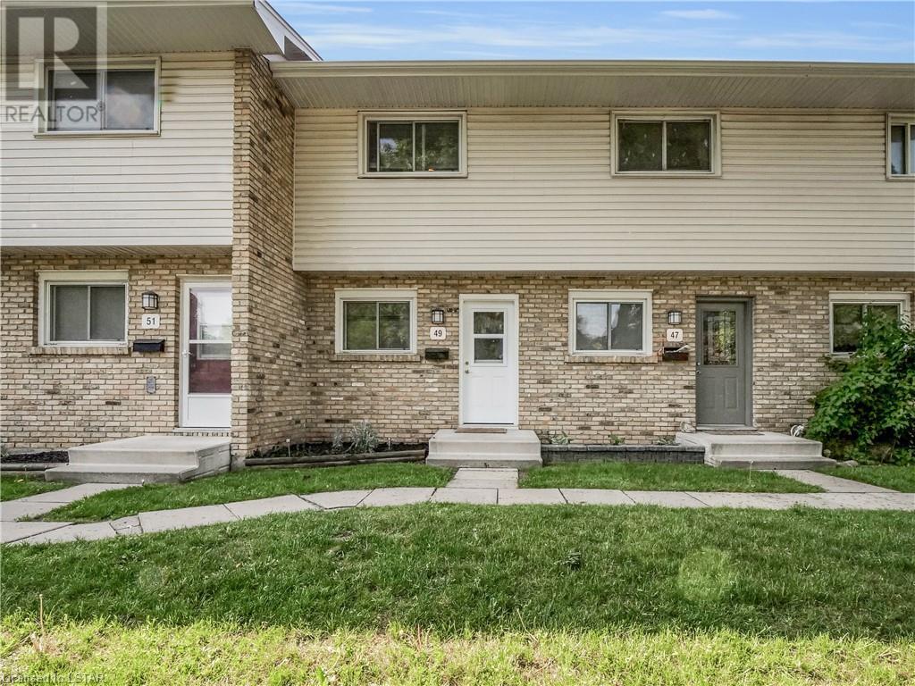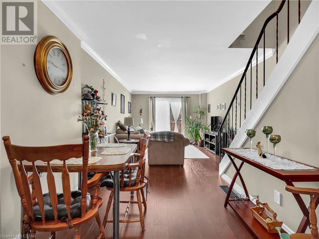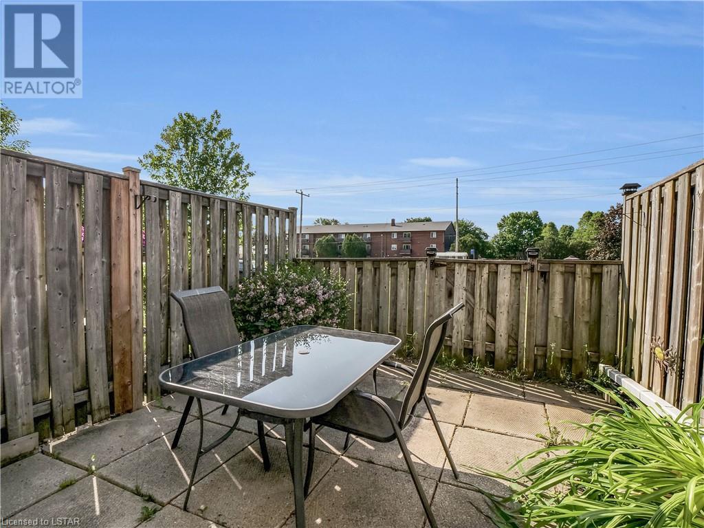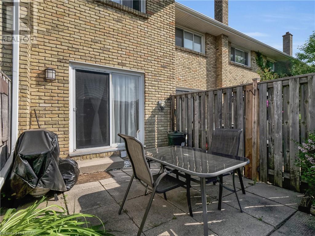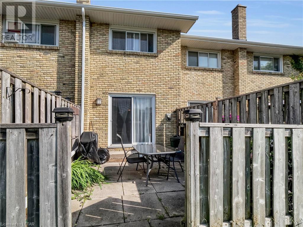 Cozy and charming row townhome in a great neighbourhood in London East. Two storey, 2 bedroom, 1 full bathroom. Main floor features open concept dining and living room with sliding doors leading to a private patio. New flooring throughout. Unfinished basement with opportunity for development or great area for storage. Clean and dry lower level. All five appliances included. Nicely landscaped property. Well cared for and maintained condo building area. Private and assigned parking space. The condo fees include heat (gas furnace) and water. Excellent proximity to public transit, schools and bus routes, parks, shopping and many amenities. (id:22211)
