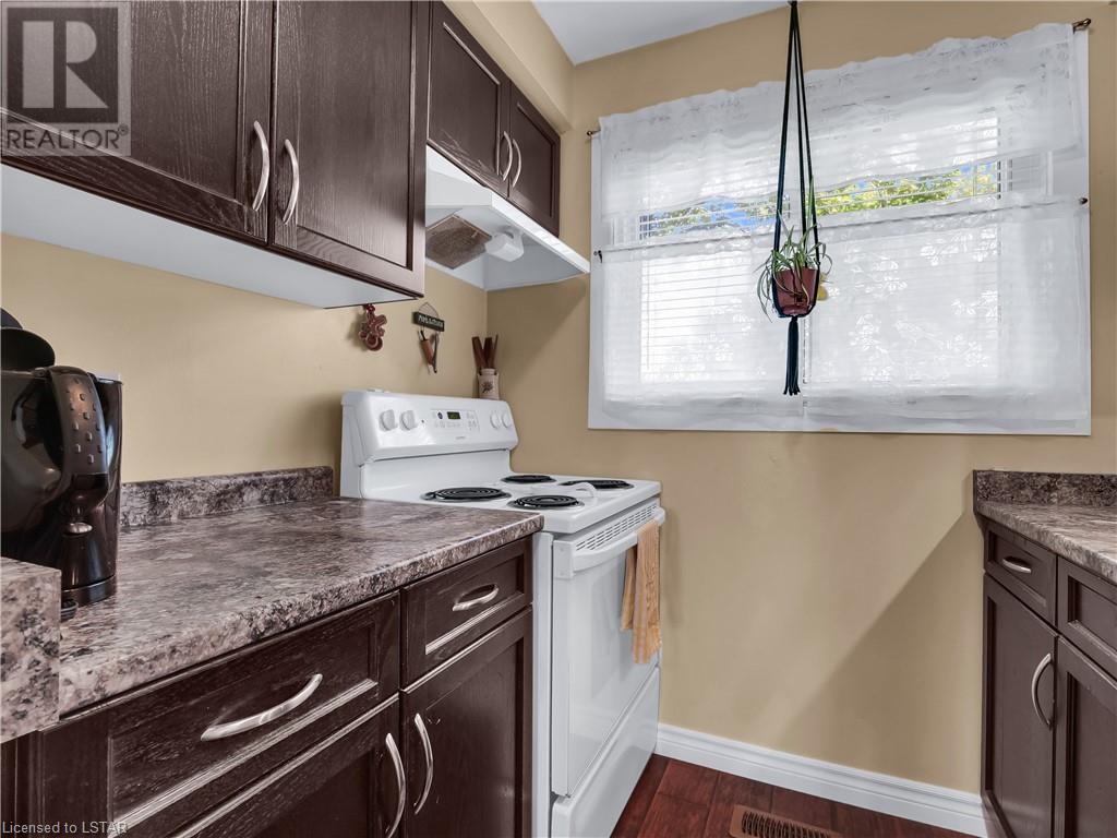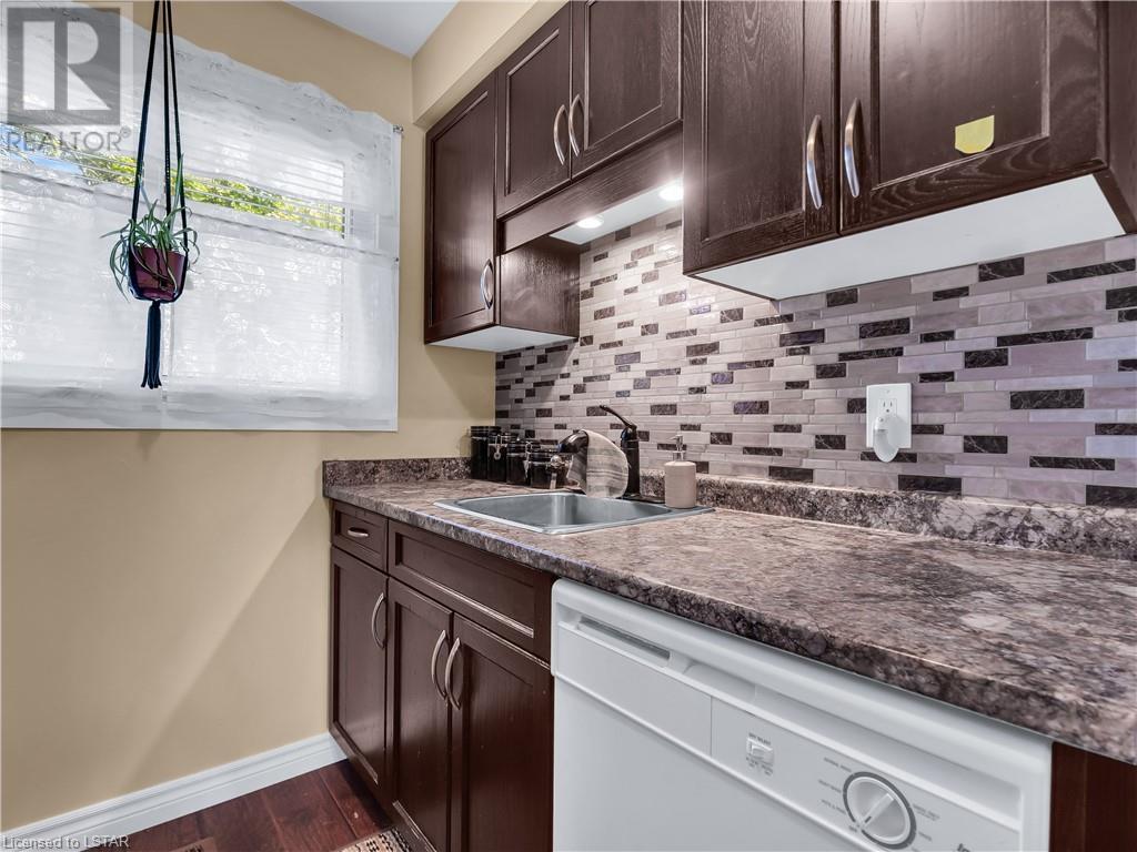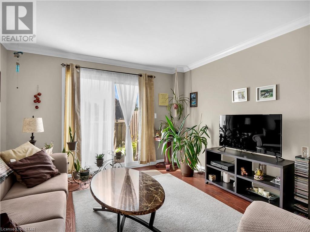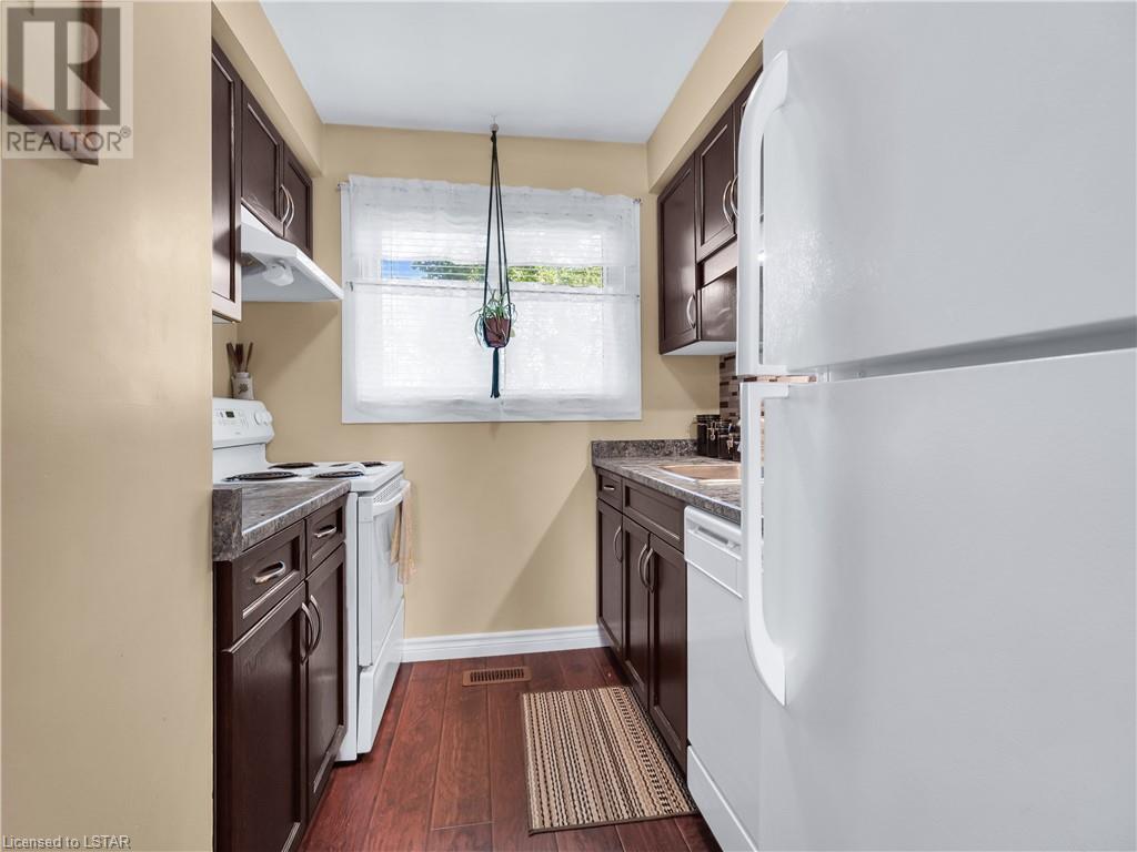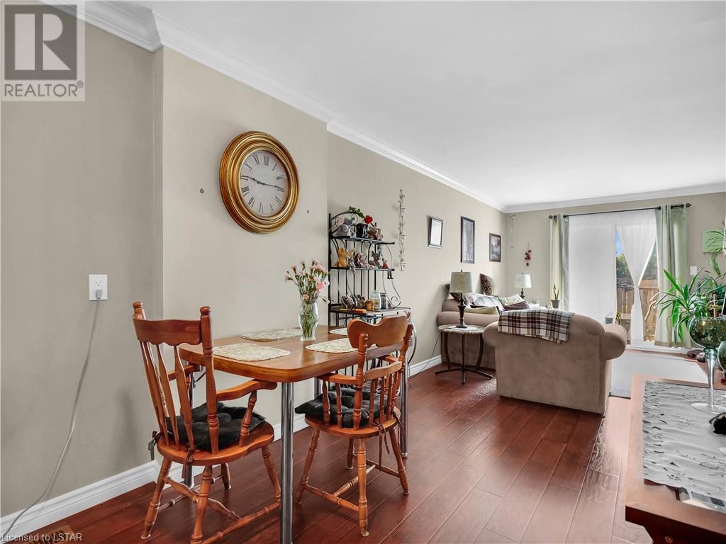 Cozy and charming row townhome in a great neighbourhood in London East. Two storey, 2 bedroom, 1 full bathroom. Main floor features open concept dining and living room with sliding doors leading to a private patio. New flooring throughout. Unfinished basement with opportunity for development or great area for storage. Clean and dry lower level. All five appliances included. Nicely landscaped property. Well cared for and maintained condo building area. Private and assigned parking space. The condo fees include heat (gas furnace) and water. Excellent proximity to public transit, schools and bus routes, parks, shopping and many amenities. (id:22211)