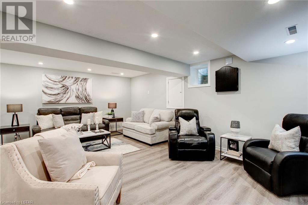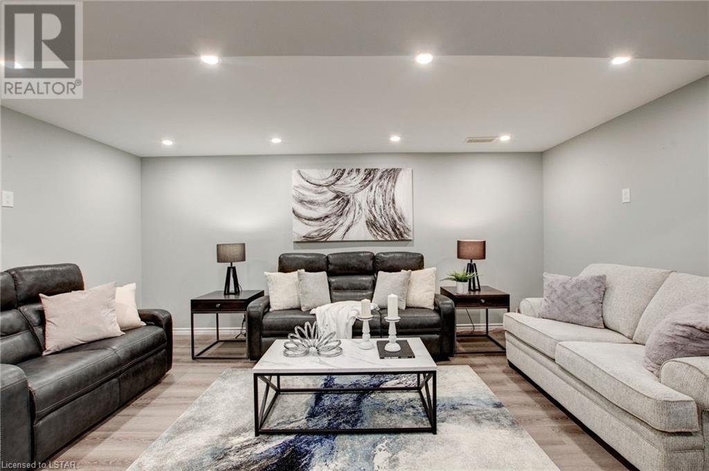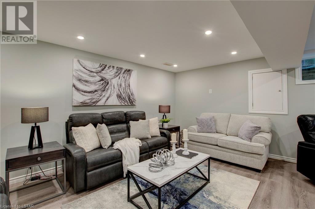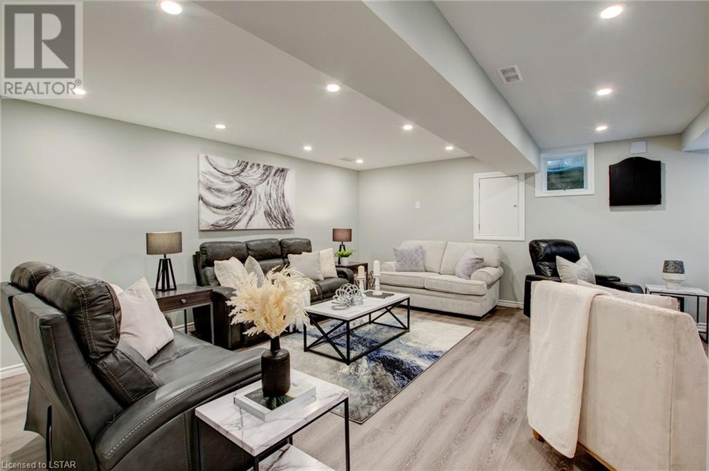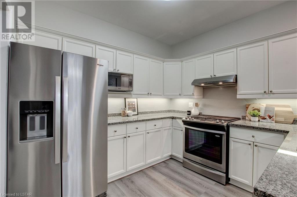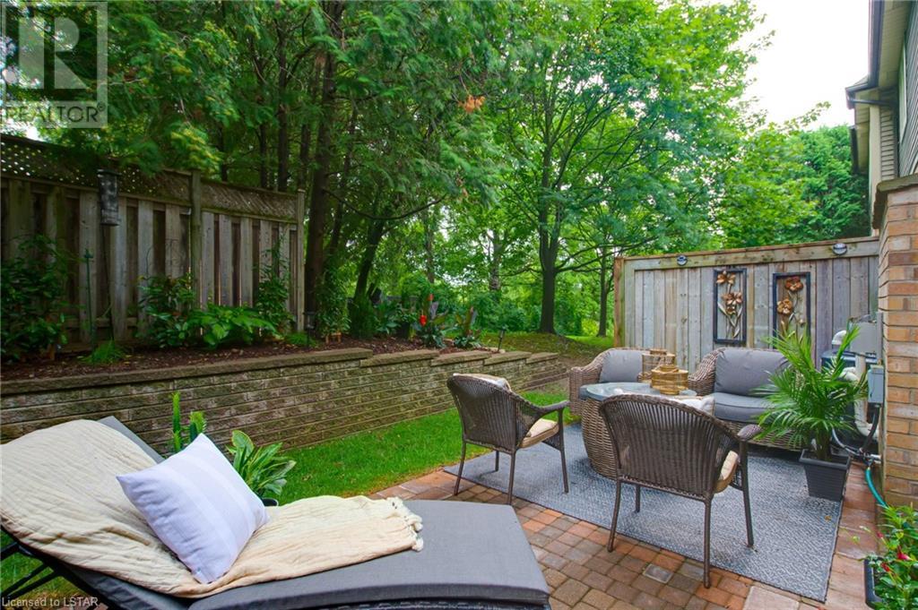 Located minutes from downtown London, surrounded by some of the best amenities in the city, welcome to the highly desirable Oakridge neighbourhood. This timeless 2-storey townhome features 2 bedrooms and 3 bathrooms, perfect for first-time buyers and professionals seeking both comfort and convenience. This condo is nicely renovated and completely move-in ready. Main floor is home to LVP flooring, modern decor, open concept design with large kitchen, granite counters, subway tile backsplash, s/s appliances, formal dining area, 2-piece powder room, sun-filled living room with open staircase and cozy gas fireplace. The upper level greets you with an oversized landing, ideal for a reading area or desk space. The two spacious bedrooms feature soaring vaulted ceilings and the principal room is home to a walk-in closet and 5-piece ensuite. Additionally, the upper level has a nicely finished 4-piece main bathroom. Completed in 2023, the finished basement is home to an oversized rec room, perfect for watching the game or entertaining guests, as well as additional cold storage and laundry area. The backyard of this condo offers the perfect space to unwind after a long day, surrounded by nature with plenty of privacy on a paving stone patio. Overall, the location of this home is truly unbeatable, offering easy access to downtown London's array of restaurants, shops and entertainment options. Outdoor enthusiasts will be pleased with the proximity to nearby trails, Thames River and Springbank Park, welcoming you with picturesque scenery and an abundance of green space. Come see for yourself today! (id:22211)