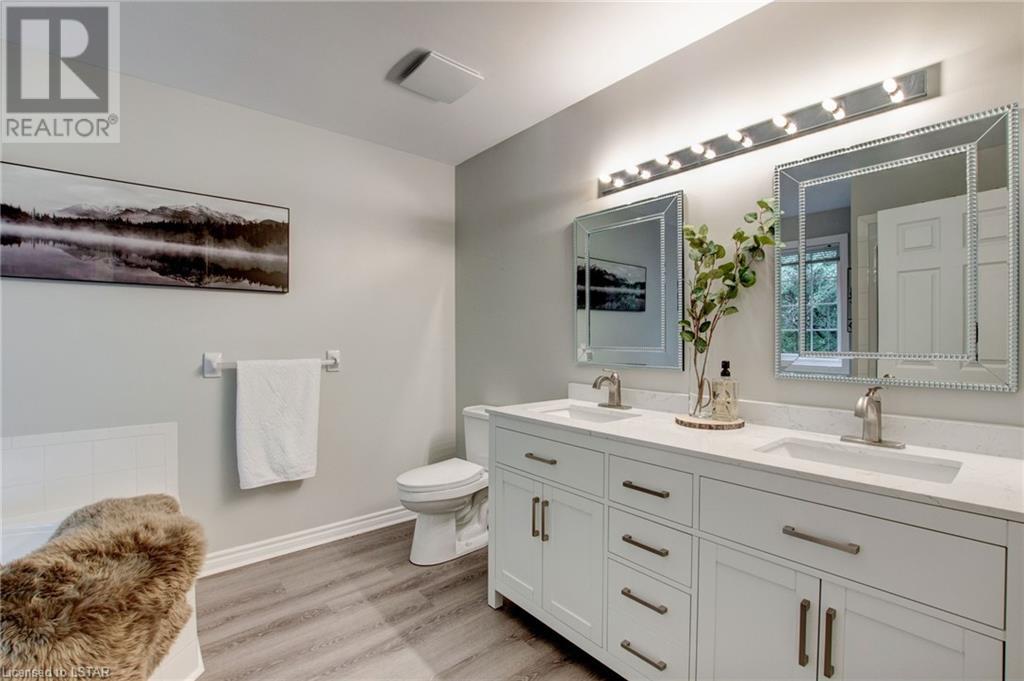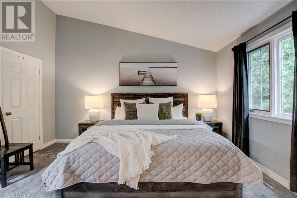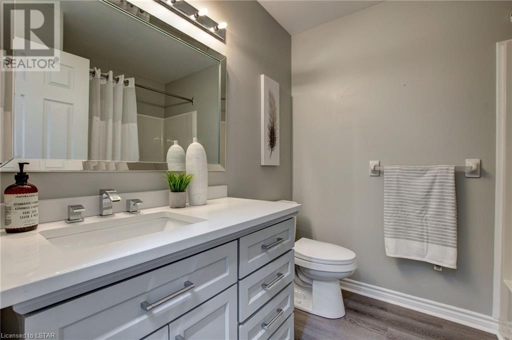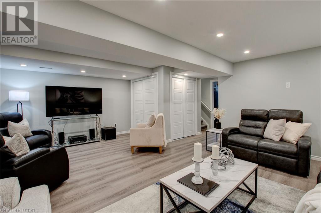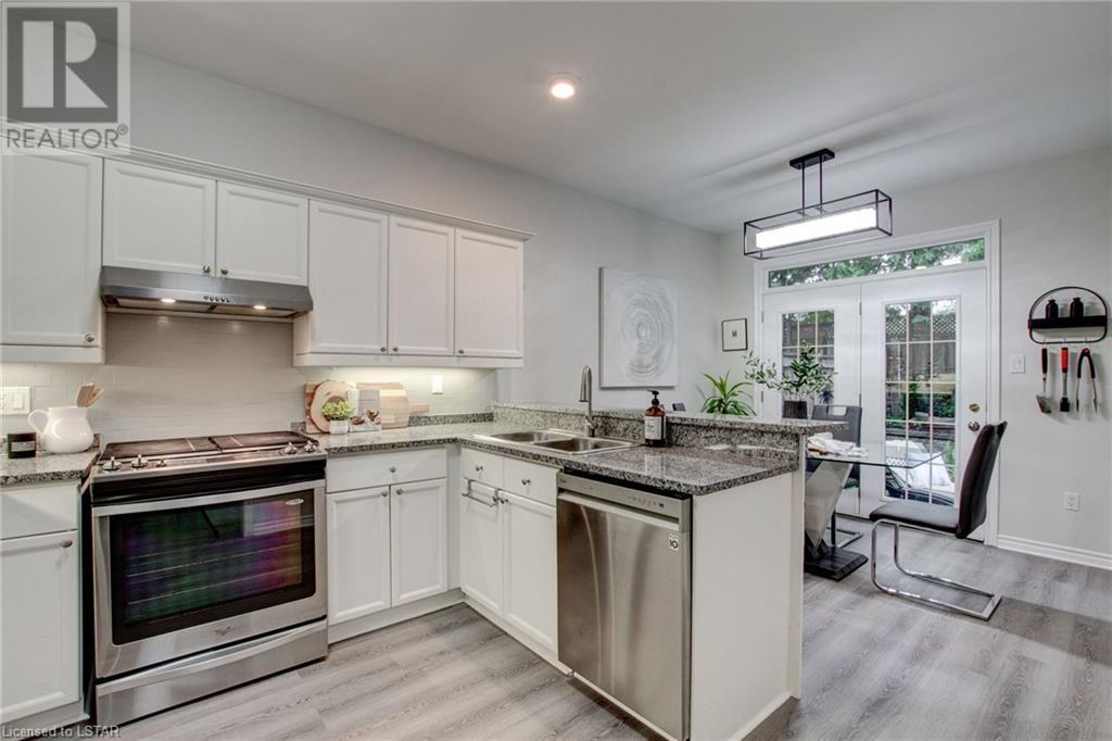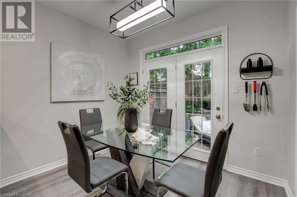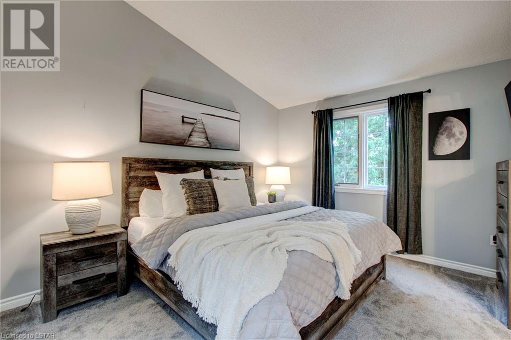 Located minutes from downtown London, surrounded by some of the best amenities in the city, welcome to the highly desirable Oakridge neighbourhood. This timeless 2-storey townhome features 2 bedrooms and 3 bathrooms, perfect for first-time buyers and professionals seeking both comfort and convenience. This condo is nicely renovated and completely move-in ready. Main floor is home to LVP flooring, modern decor, open concept design with large kitchen, granite counters, subway tile backsplash, s/s appliances, formal dining area, 2-piece powder room, sun-filled living room with open staircase and cozy gas fireplace. The upper level greets you with an oversized landing, ideal for a reading area or desk space. The two spacious bedrooms feature soaring vaulted ceilings and the principal room is home to a walk-in closet and 5-piece ensuite. Additionally, the upper level has a nicely finished 4-piece main bathroom. Completed in 2023, the finished basement is home to an oversized rec room, perfect for watching the game or entertaining guests, as well as additional cold storage and laundry area. The backyard of this condo offers the perfect space to unwind after a long day, surrounded by nature with plenty of privacy on a paving stone patio. Overall, the location of this home is truly unbeatable, offering easy access to downtown London's array of restaurants, shops and entertainment options. Outdoor enthusiasts will be pleased with the proximity to nearby trails, Thames River and Springbank Park, welcoming you with picturesque scenery and an abundance of green space. Come see for yourself today! (id:22211)
