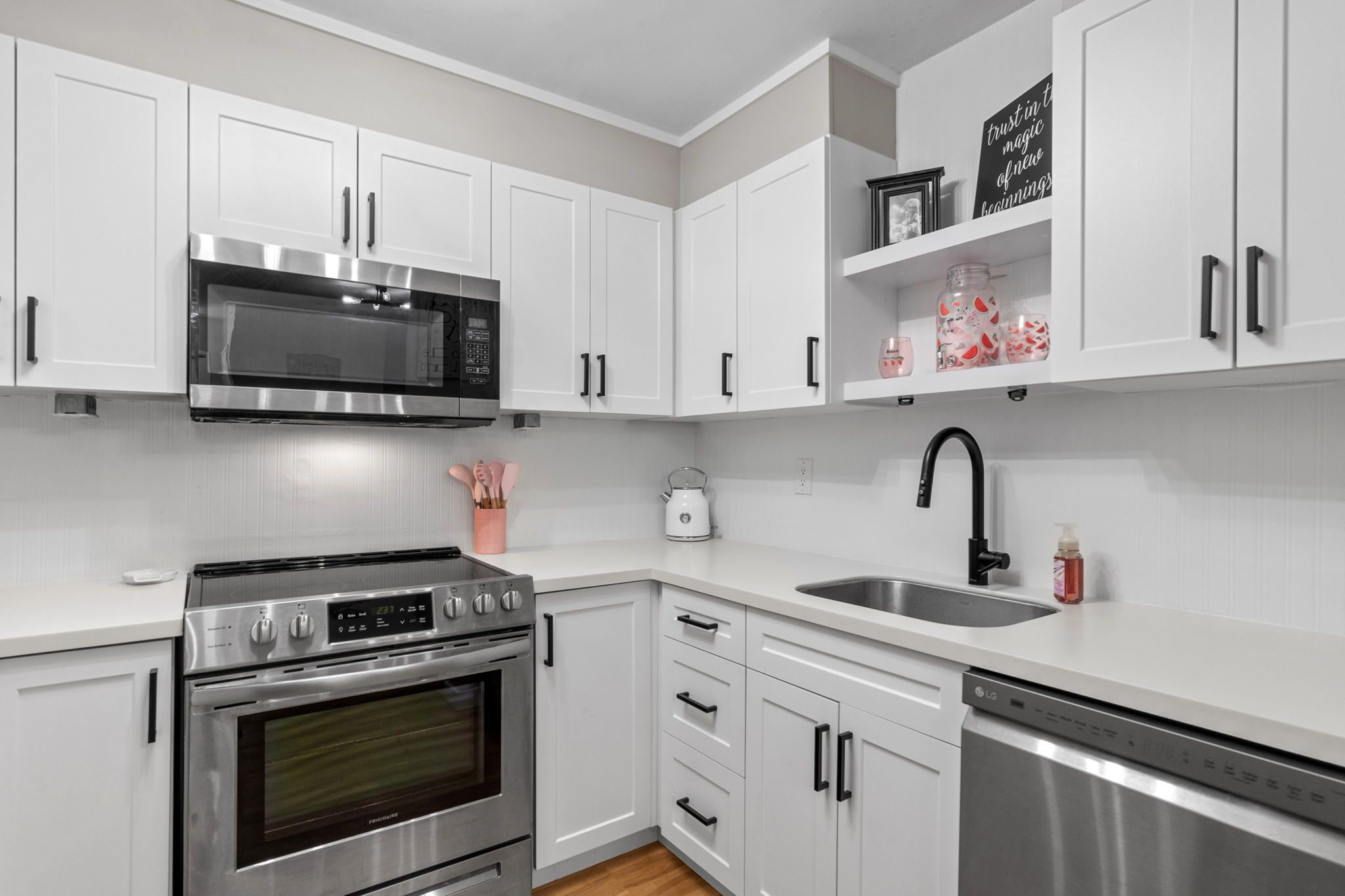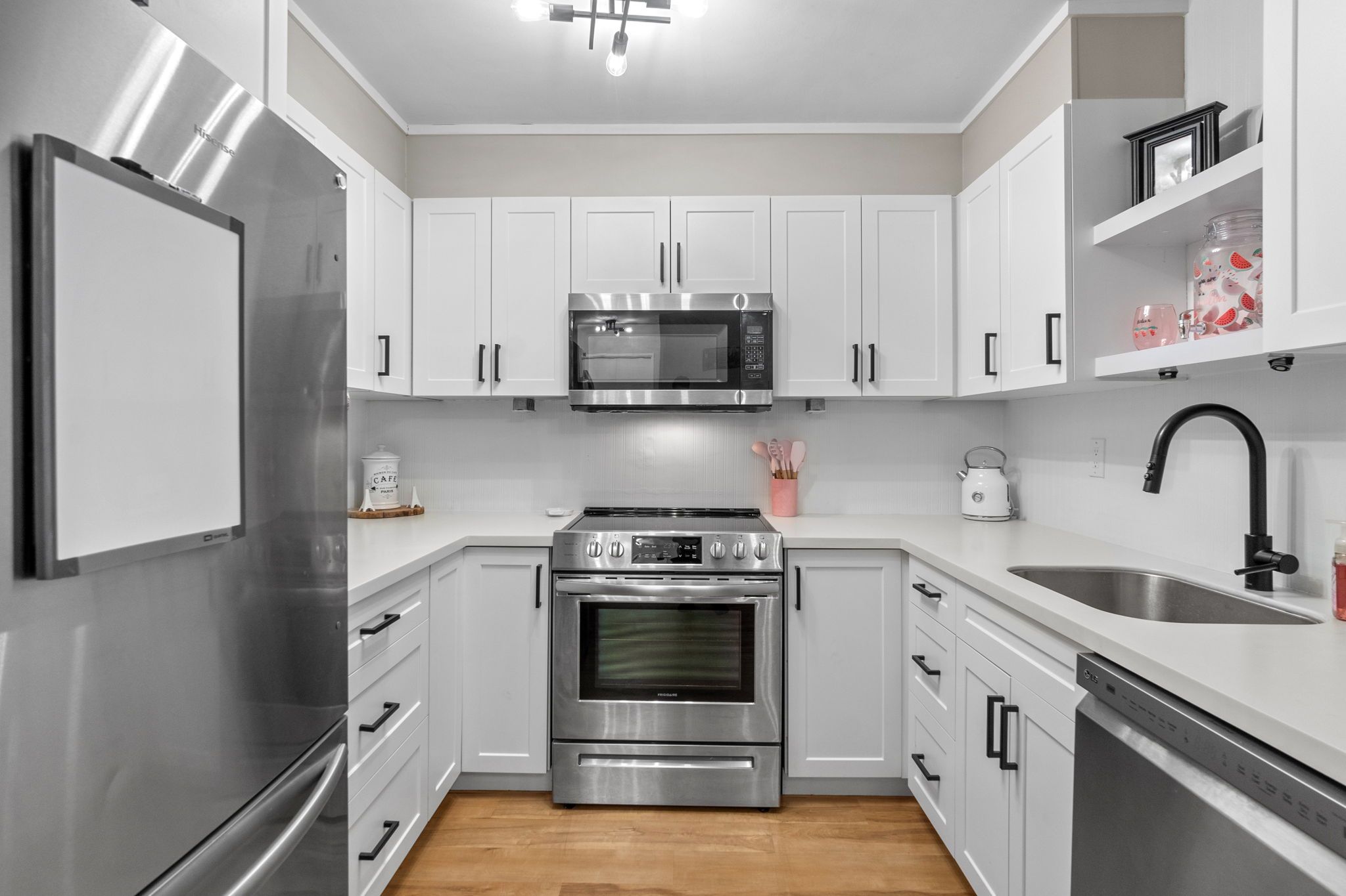 Welcome to this beautifully updated 1-bedroom condo, offering modern finishes and unbeatable convenience. The bright white kitchen features quartz countertops and stainless steel appliances, creating a sleek and functional space. The open-concept dining and living areas flow seamlessly, leading to sliding patio doors that open onto a private balcony. This main-floor unit is a rare find, allowing direct access from the parking lot, perfect for bringing in groceries or letting pets in and out with ease. The spacious bedroom is filled with natural light, and the 4-piece bathroom adds to the comfort of this home. Plus, the laundry room is located just across the hall for added convenience. Enjoy a low-maintenance lifestyle with condo fees covering heat, hydro, water, garbage, recycling, lawn care, and snow removal. Situated close to Fanshawe College, The Factory, Western Fair, public transit, schools, and walking trails, this condo is perfect for students, professionals, or anyone looking for easy living in a great location!