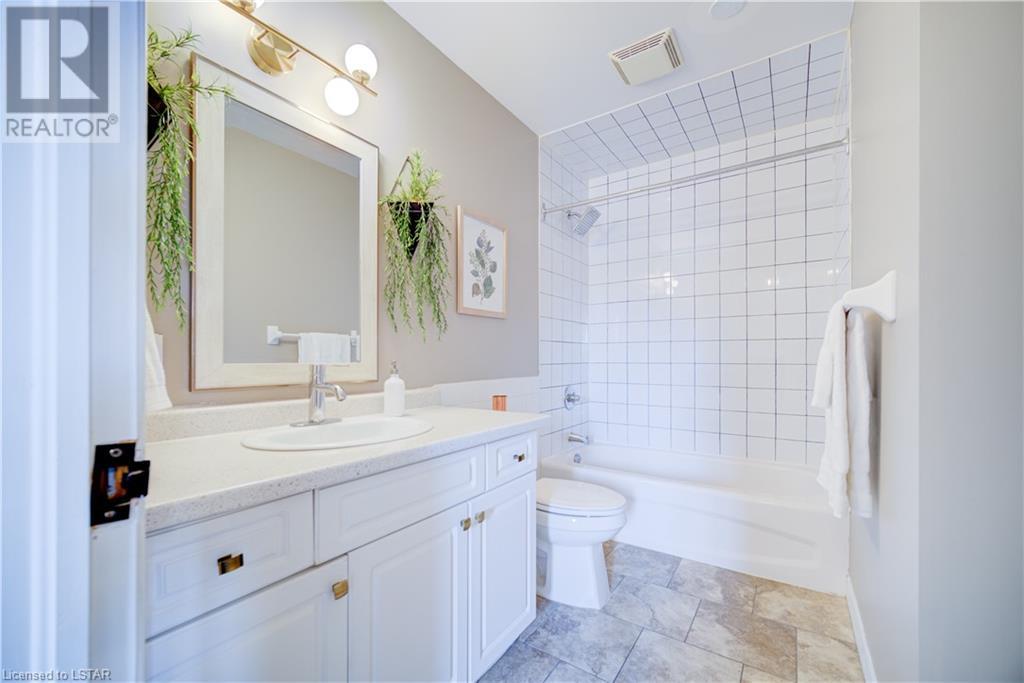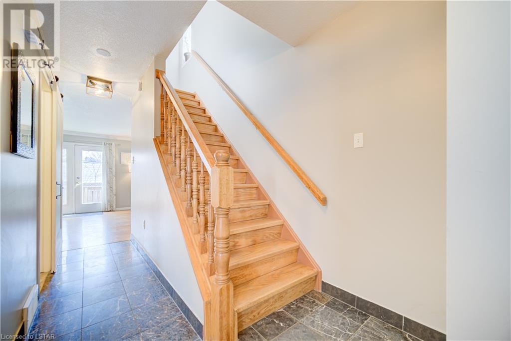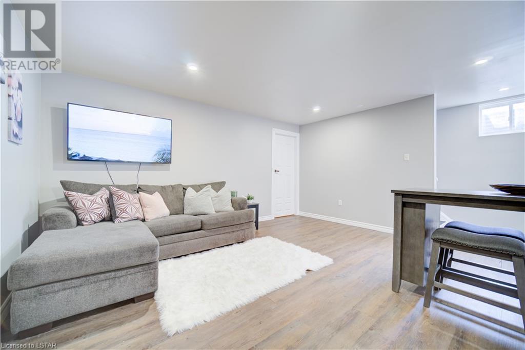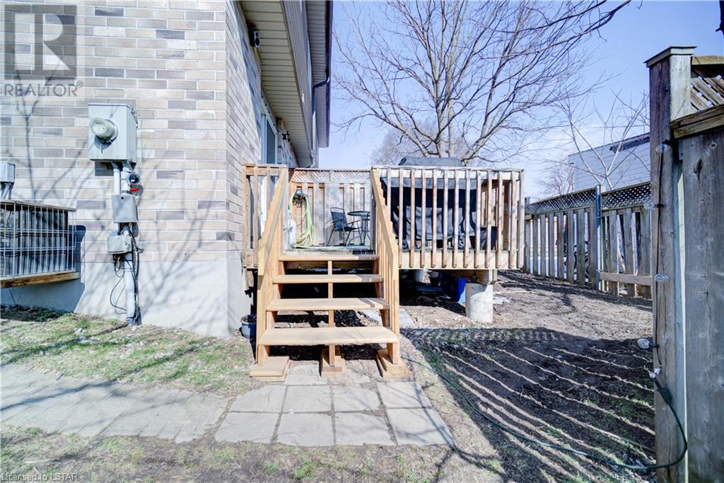 This is your opportunity to own a fantastic home on a quiet dead-end street! This semi-detached home with VERY LOW CONDO FEES ($125/mo) may just be the one you’ve been waiting for. You are greeted with an open eat-in kitchen with a new backsplash (2022), new countertops (2022), and newer stainless-steel appliances (2020). The grand living room is complete with hardwood flooring, crown molding, and features a glass patio door which leads to a private deck and very large, fully fenced backyard. The yard was completely made over in 2021 and features an oversized stone patio with built in firepit, perfect for entertaining friends and family on those hot summer nights! Heading upstairs, you will find 3 generously sized bedrooms, including a massive primary room! Downstairs you will find yourself in a finished basement with new pot lights (2022) and an open concept second living space. In the utility room, there is a newer washer & dryer (2020) and tons of room for storage. This home is just seconds away from the city’s bike trails, Thames river, schools, and parks. This centrally located gem is one you won’t want to miss! (id:22211)