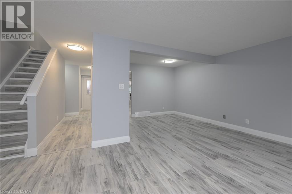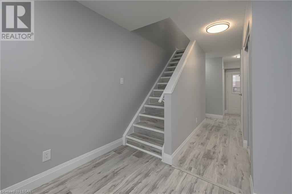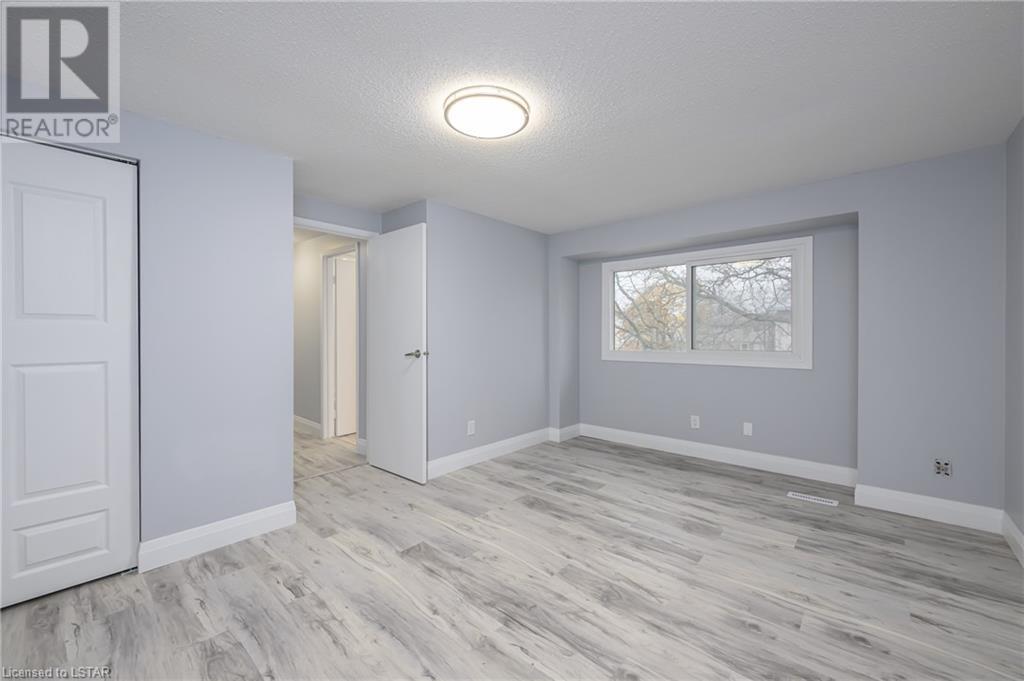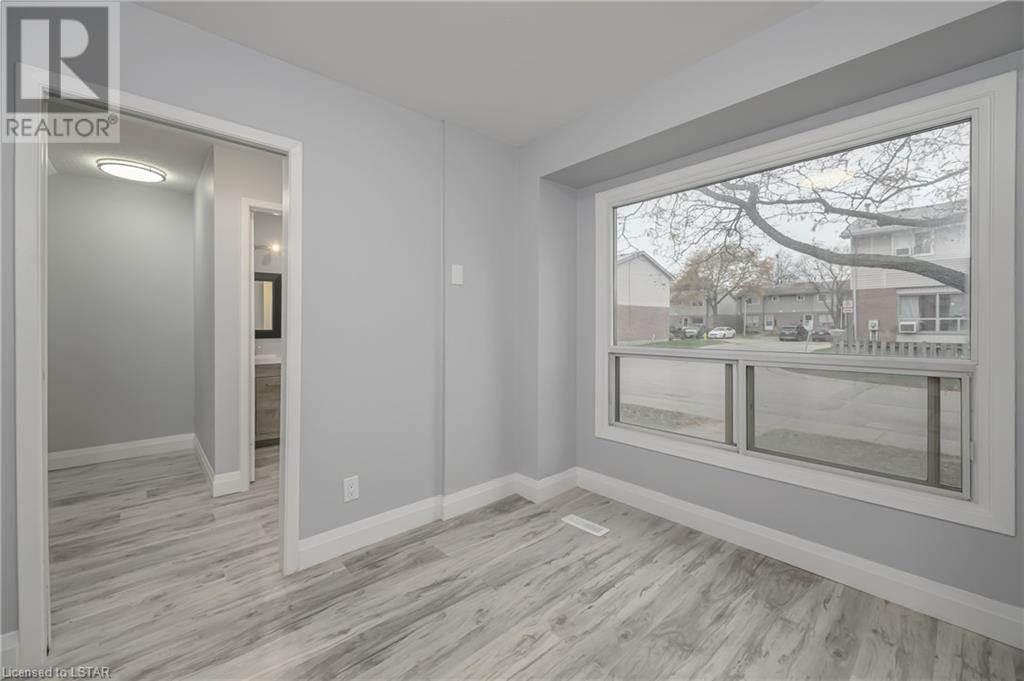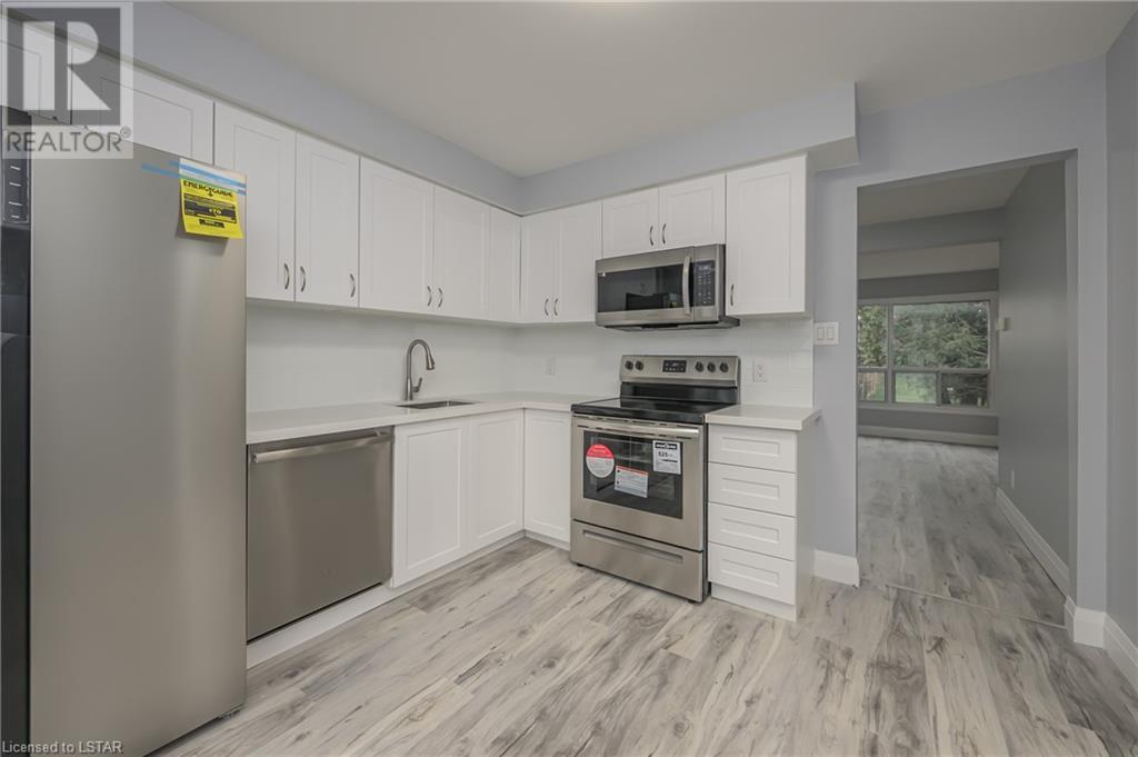 Major renovation just completed - move in condition. Renovated kitchen, baths, flooring, light fixtures, paint and more. Spacious 3 bedroom condo. 1 1/2 baths. Great location with easy access to Fanshawe College, London airport, shopping, schools, transit and restaurants. Good sized living room. Separate dining area. Eat in kitchen. Huge master bedroom with 2 closets. Good bedroom sizes. Finished room in the lower - could be family room, another bedroom or an office. Huge utility room - Tons of storage space. New refrigerator, stove and built-in microwave. Also includes owned water heater, newer furnace and dishwasher, washer and dryer. Great home to live in or for an investment. A must see!! Ready for immediate occupancy (id:22211)