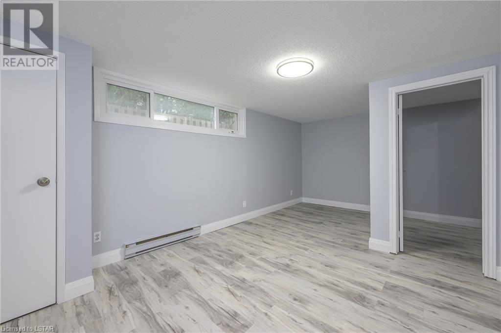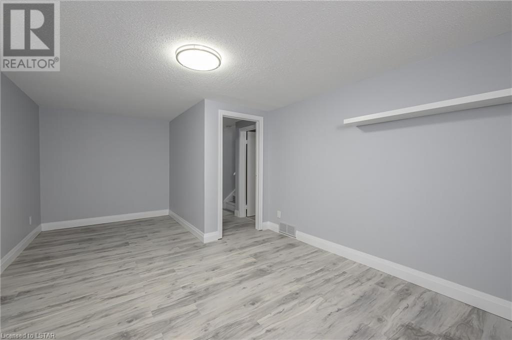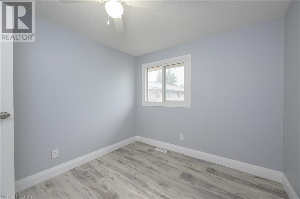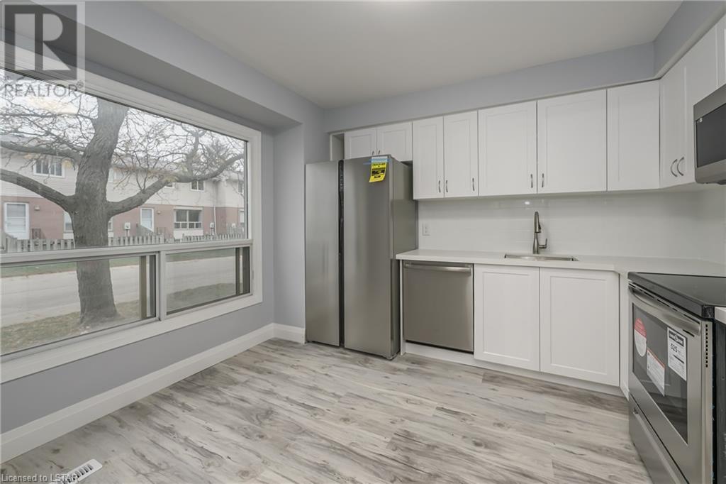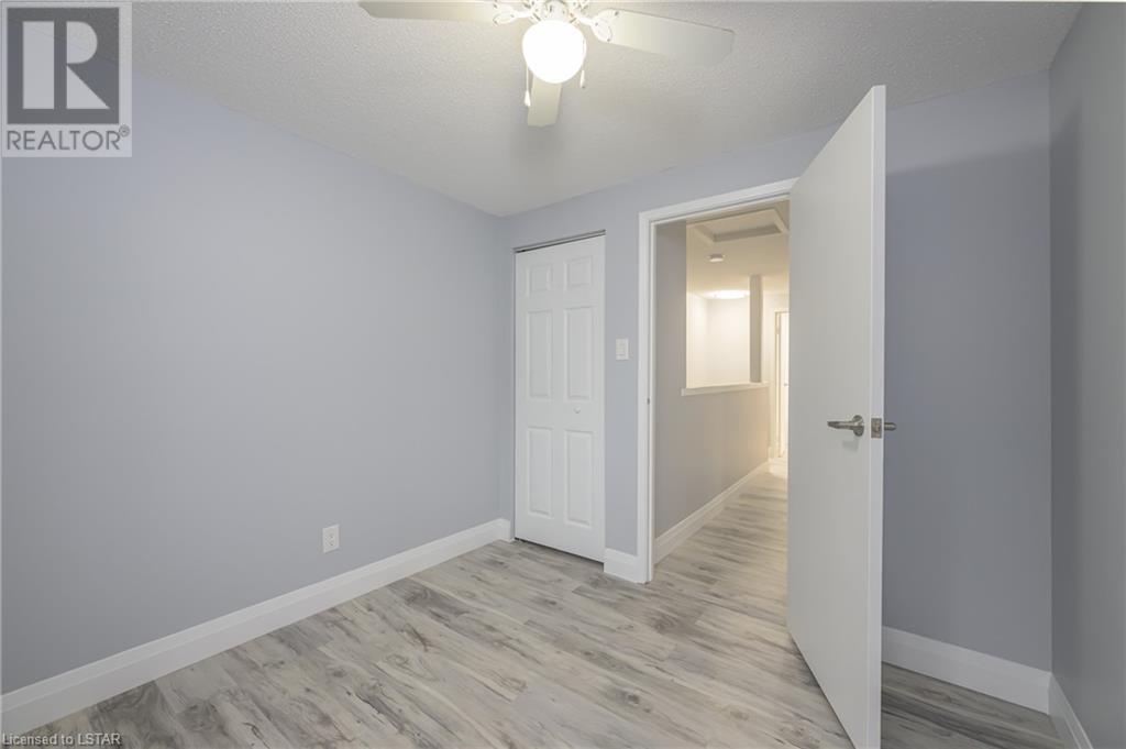 Major renovation just completed - move in condition. Renovated kitchen, baths, flooring, light fixtures, paint and more. Spacious 3 bedroom condo. 1 1/2 baths. Great location with easy access to Fanshawe College, London airport, shopping, schools, transit and restaurants. Good sized living room. Separate dining area. Eat in kitchen. Huge master bedroom with 2 closets. Good bedroom sizes. Finished room in the lower - could be family room, another bedroom or an office. Huge utility room - Tons of storage space. New refrigerator, stove and built-in microwave. Also includes owned water heater, newer furnace and dishwasher, washer and dryer. Great home to live in or for an investment. A must see!! Ready for immediate occupancy (id:22211)