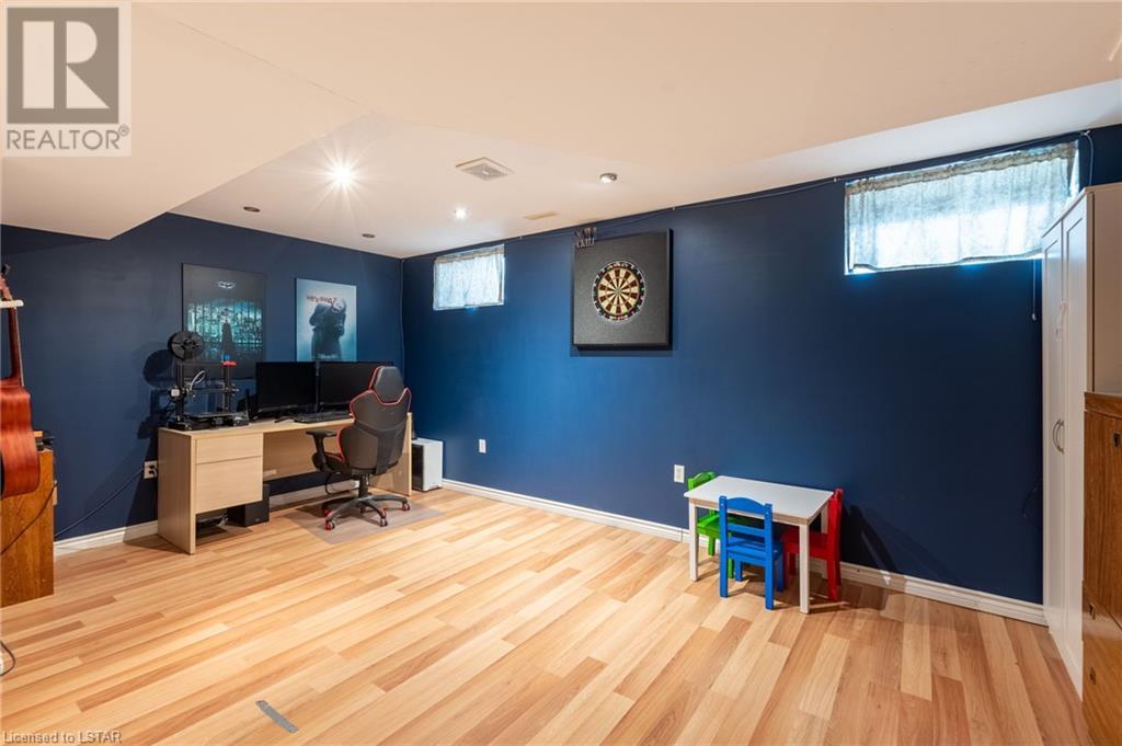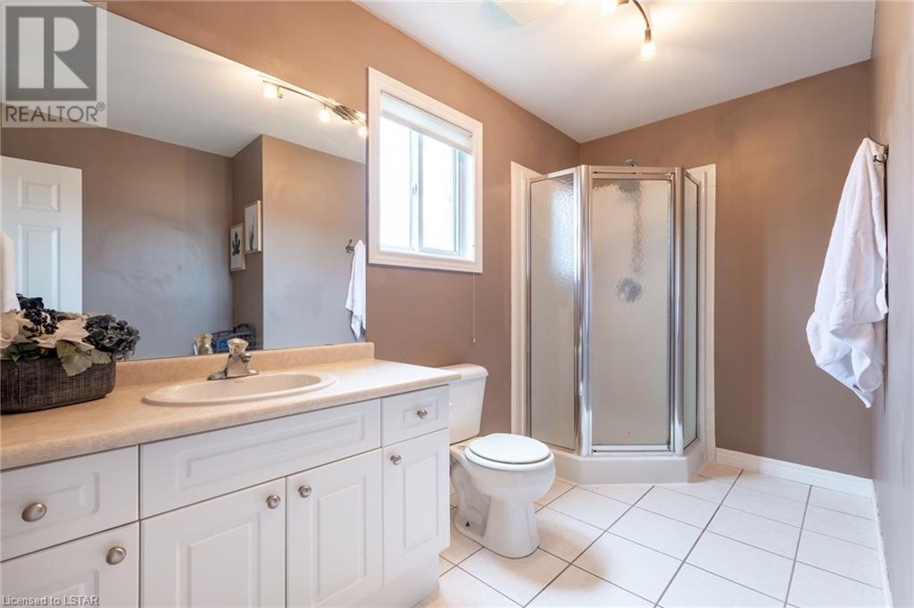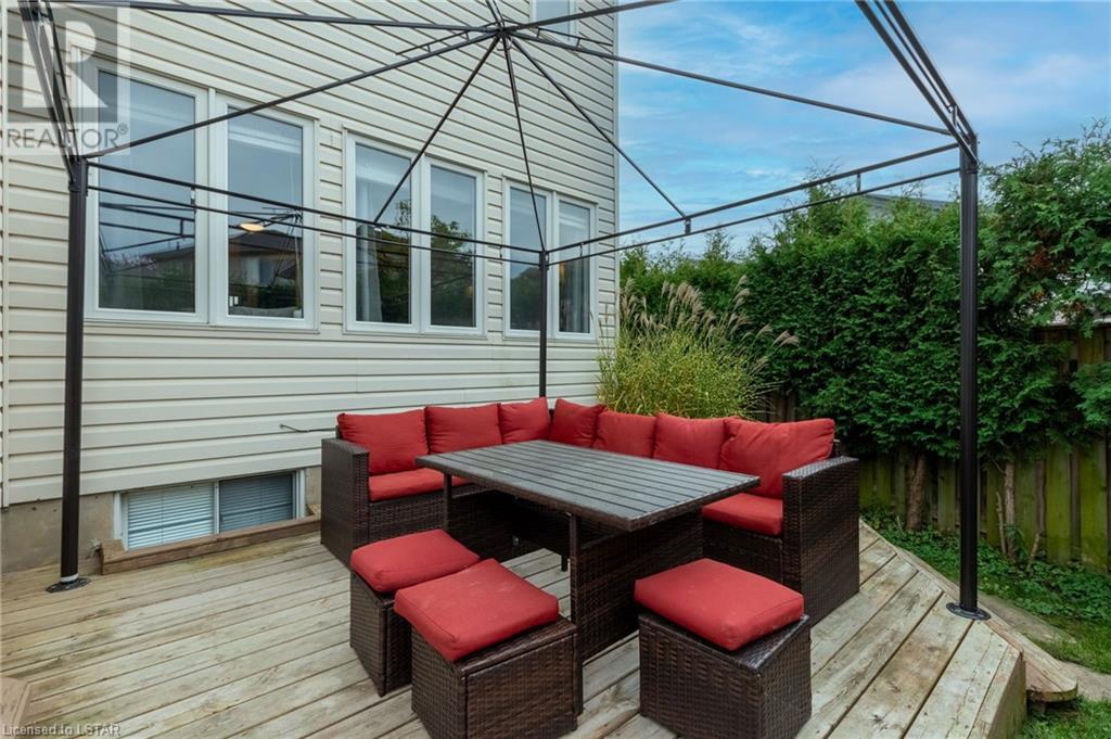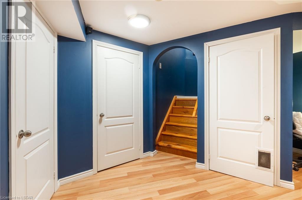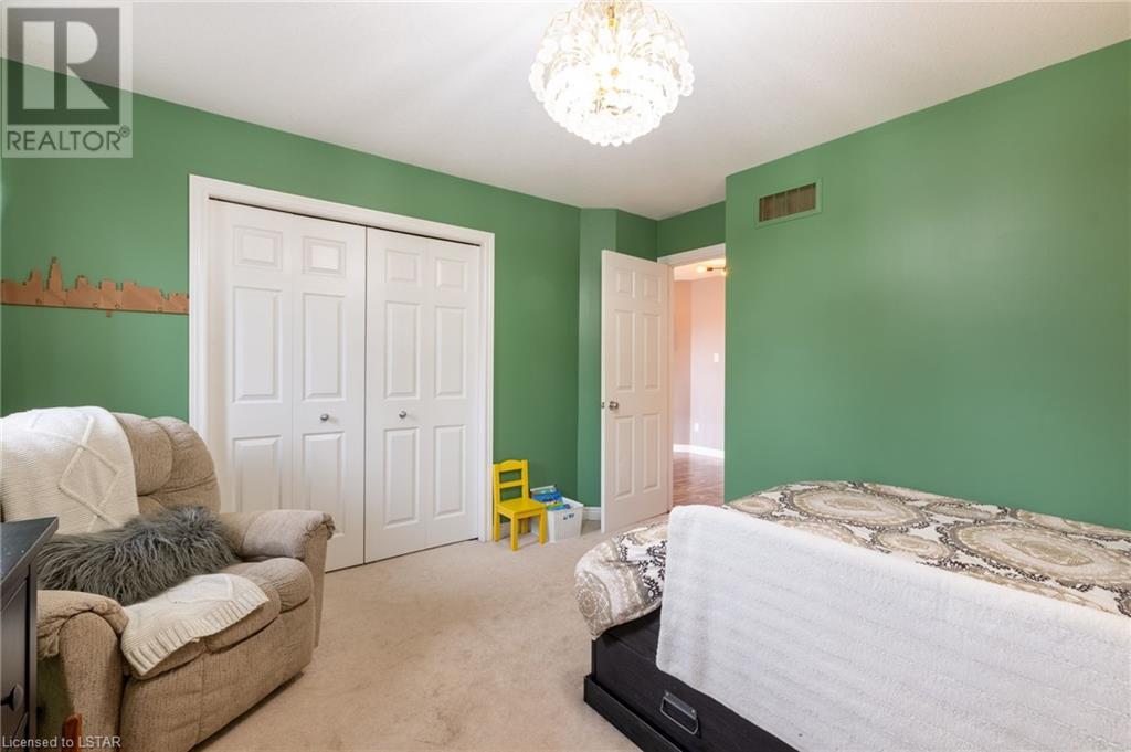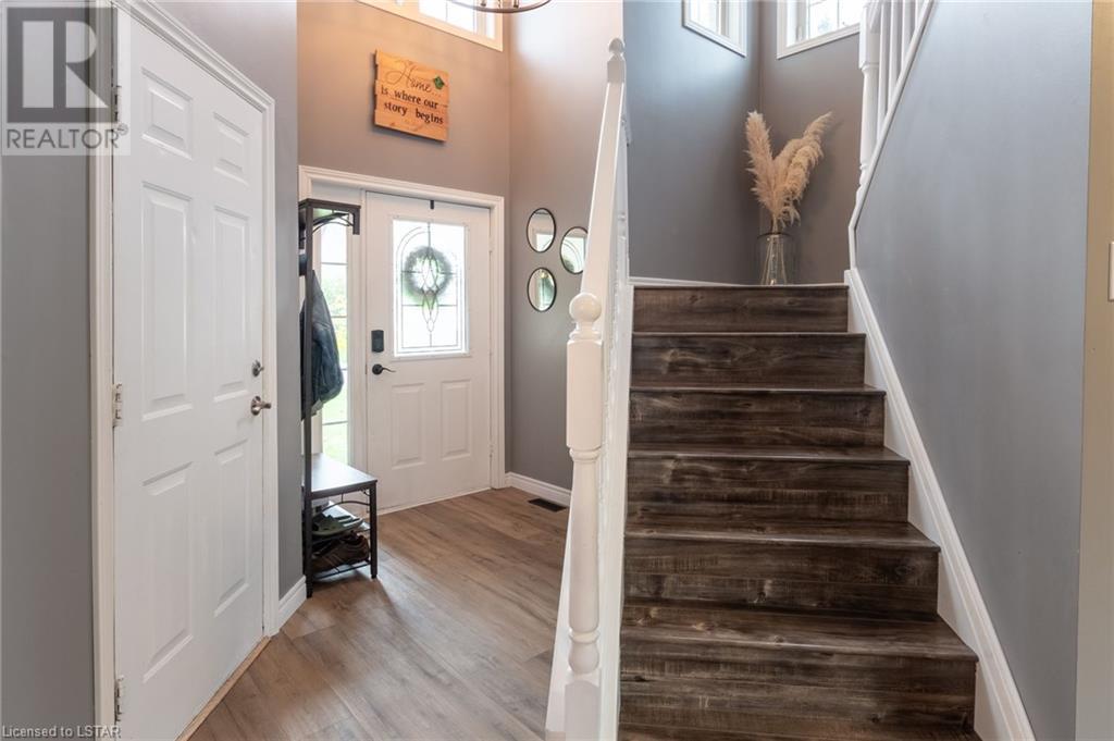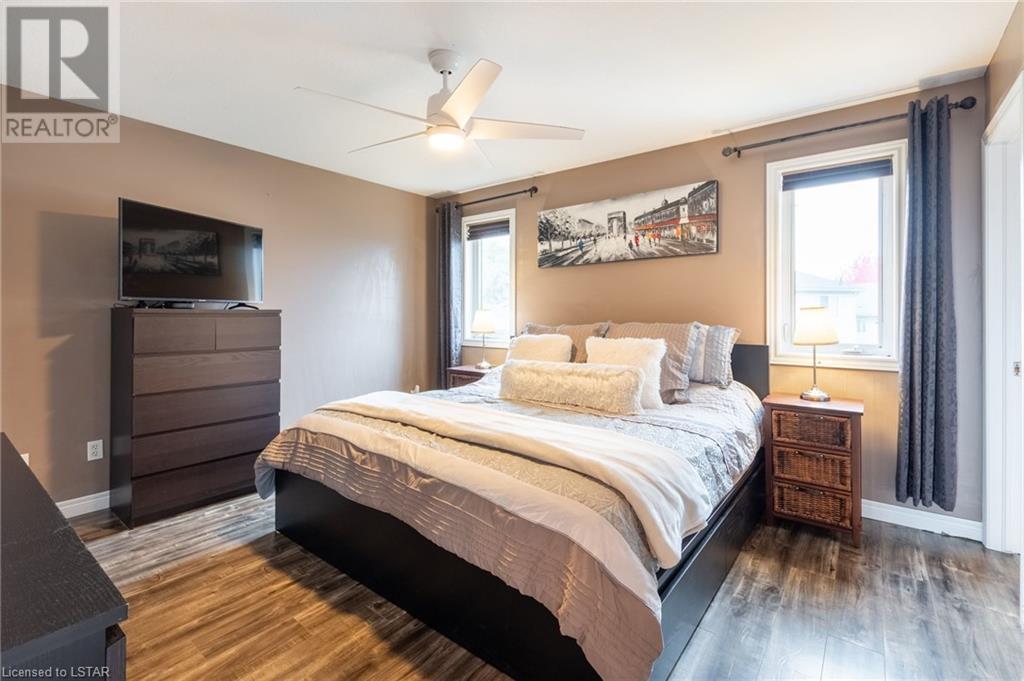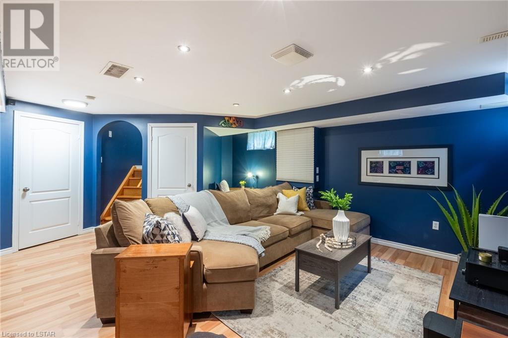 Trafalgar Heights proudly presents 6 Folkstone Court, a beautiful and impeccably maintained two-story residence. The moment you arrive on this quiet court, you'll be greeted by the charming curb appeal, characterized by stunning landscaping and an expansive stamped concrete driveway that accommodates up to four vehicles. The main level has been recently transformed with BRAND NEW vinyl composite flooring throughout (waterproof, scratchproof) and a captivating BRAND NEW kitchen designed by talented Casey’s Creative Designs. This luxurious kitchen is bright and inviting featuring a sleek eat-in bar, premium-grade quartz countertops, gas stove, dimmable pot lights, custom-built cabinetry with built-ins for functionality including garbage pullout, lazy susan, large utensil bins/spice rack, tray dividers and pull-out drawers and chic featured tile wall with floating shelves. Upgraded stainless steel appliances. The upper level has been thoughtfully upgraded laminate flooring and hosts three bedrooms and 2 full bathrooms. The primary suite showcases a spacious walk-in closet and a large 3pc ensuite. Fully finished lower level provides an expansive recreation room, laundry area, storage nooks and a utility space housing a new furnace installed in 2020. Additional updates: roof (2016), lighting & ceiling fans throughout, 2023 sliding patio door with inside blinds(Canada Glass) and custom window treatments throughout majority of the home. Completing this turnkey property is a charming backyard and a two-car garage. Conveniently situated on a peaceful court, in close proximity to the London airport, golf courses, shopping, restaurants, schools and quick access to major highways. (id:22211)
