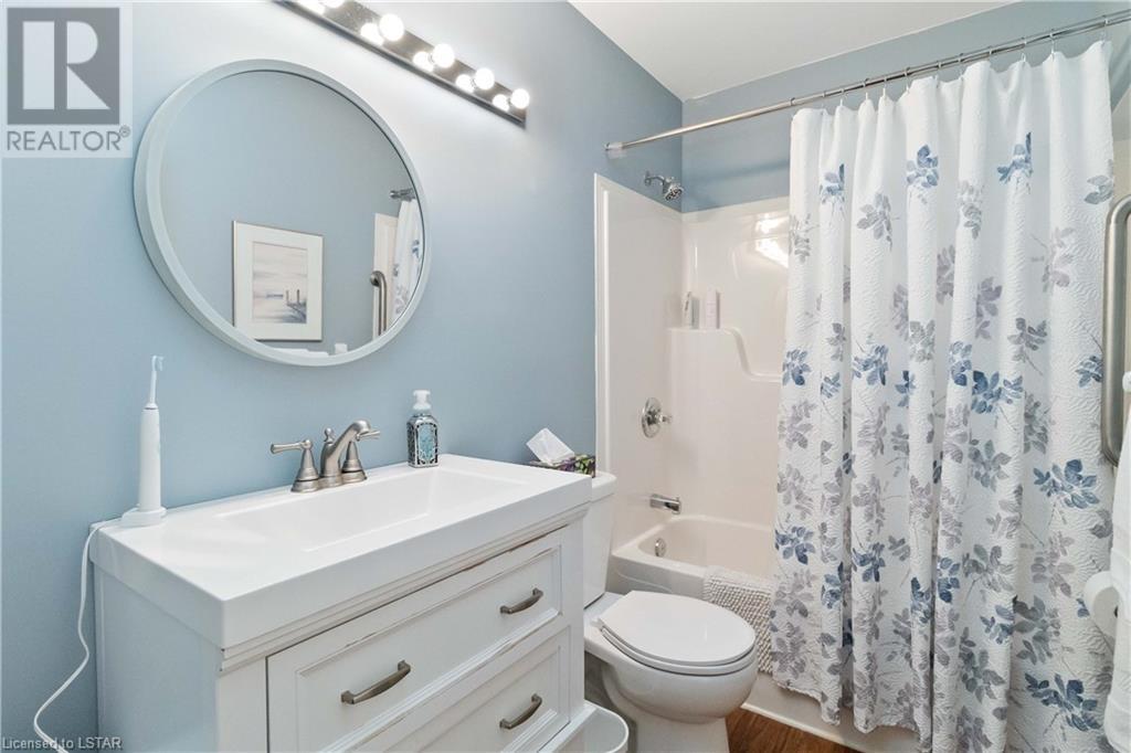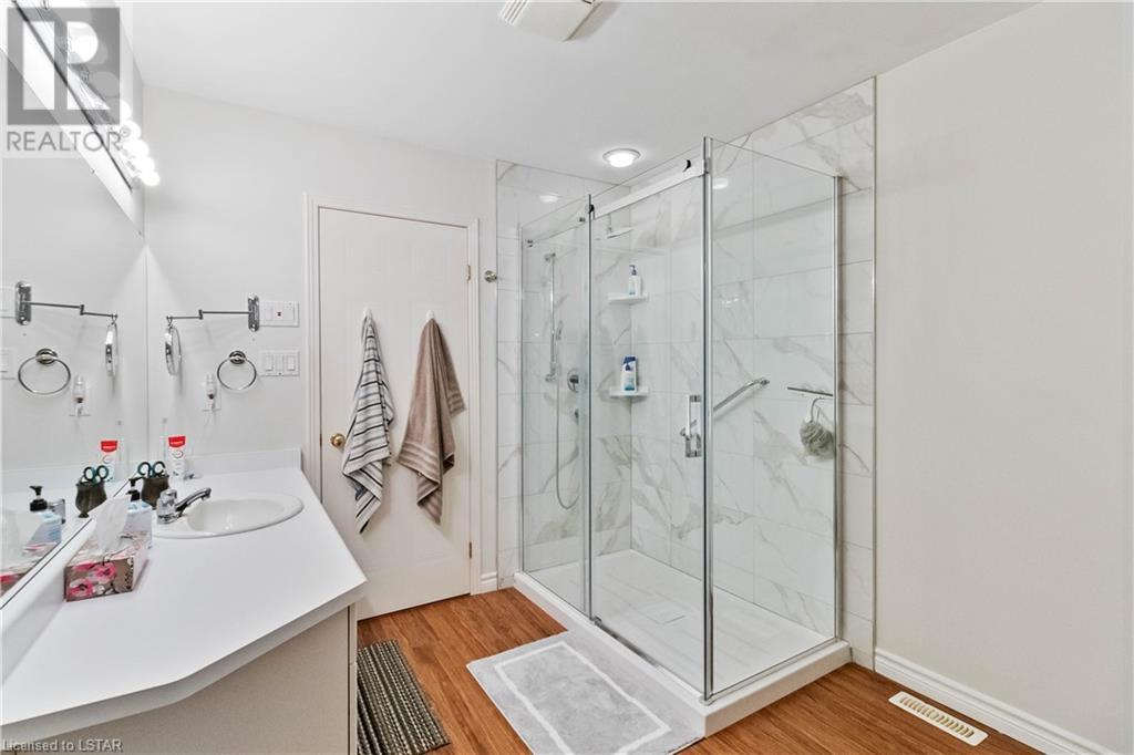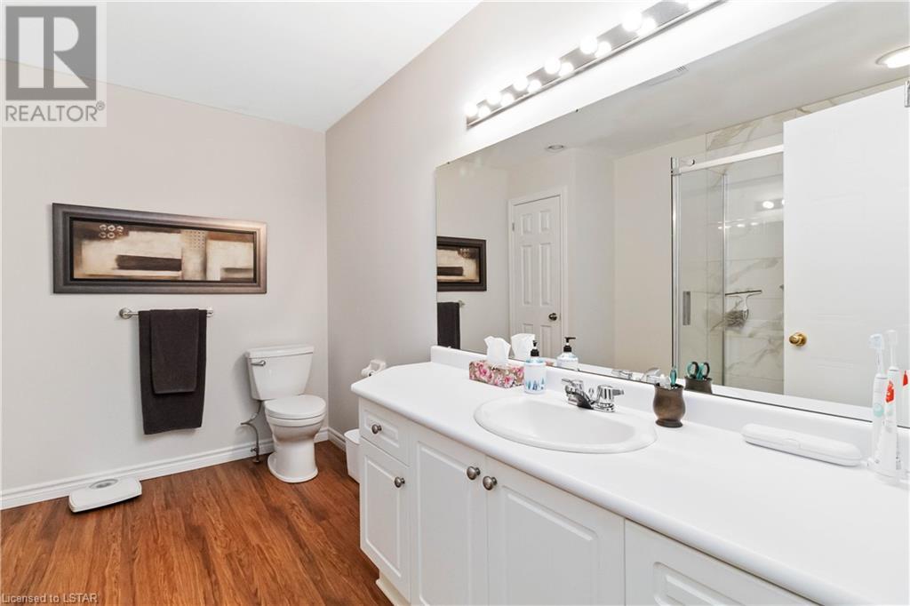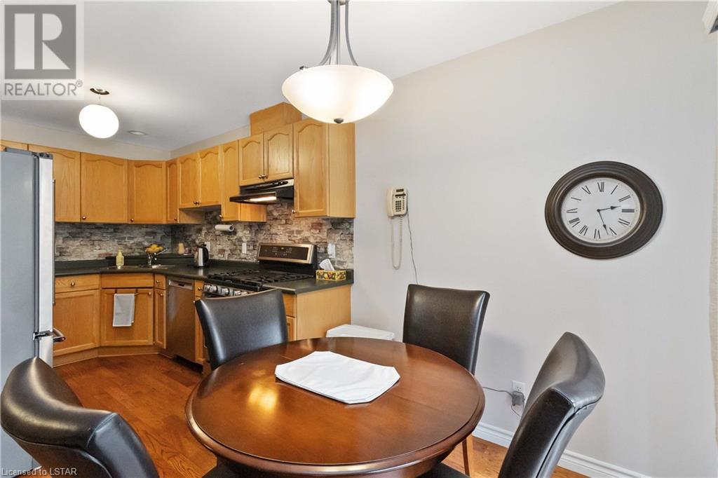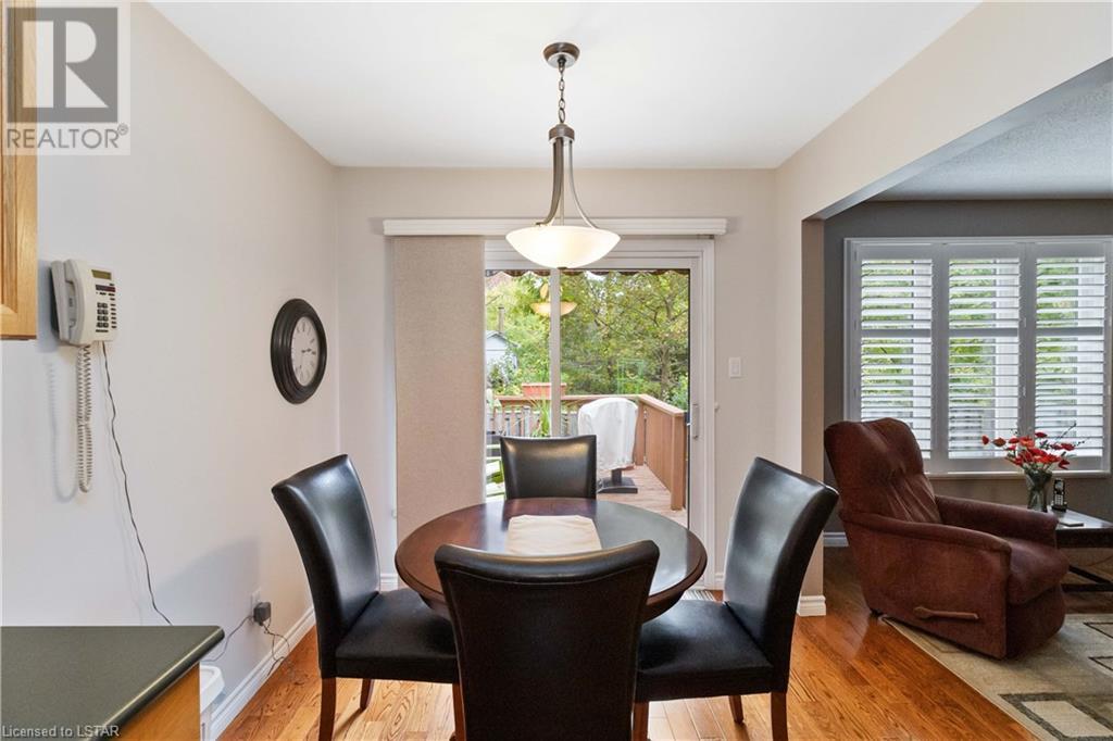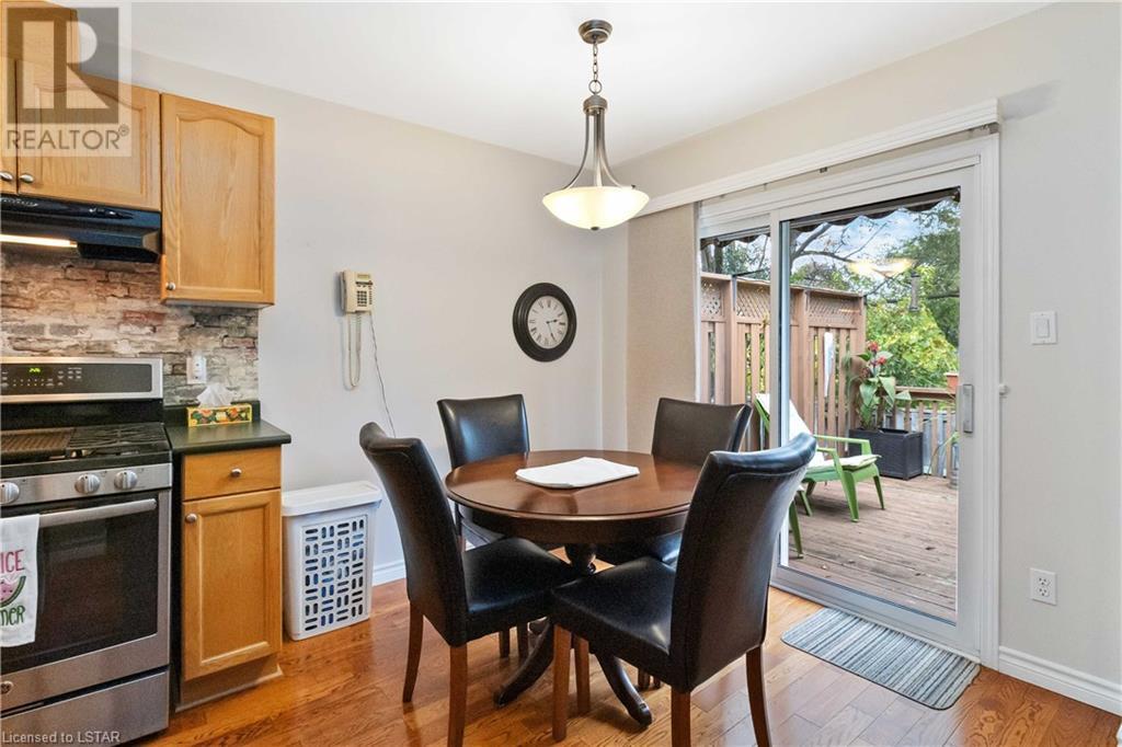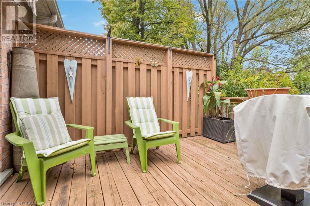Location, location, location! Premium North London condo backing on to Stoney Creek. Home has been meticulously maintained. Walk in to inviting entranceway and see gleaming hardwood floors, large living room, eat-in kitchen with sliding door to above ground deck with electric canopy overlooking Stoney Creek. Main floor laundry room, single car garage with inside entry. Master bedroom has updated ensuite with large walk-in shower, second bedroom and 4-piece bathroom complete the main floor. The lower level is ideal for visitors, overnight guests and family. Very large principal room could be TV room, gym or extra sleeping area. There is a 3-piece bathroom and loads of storage space. This condo is directly across from additional guest parking. Close to grocery stores, Masonville Mall and walking trails. (id:22211)