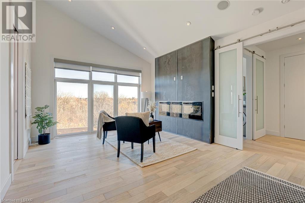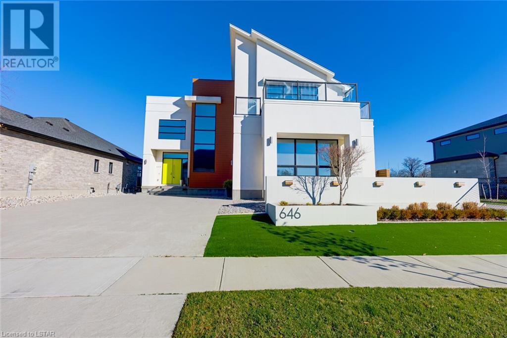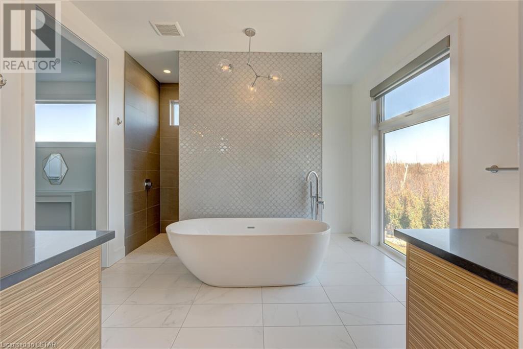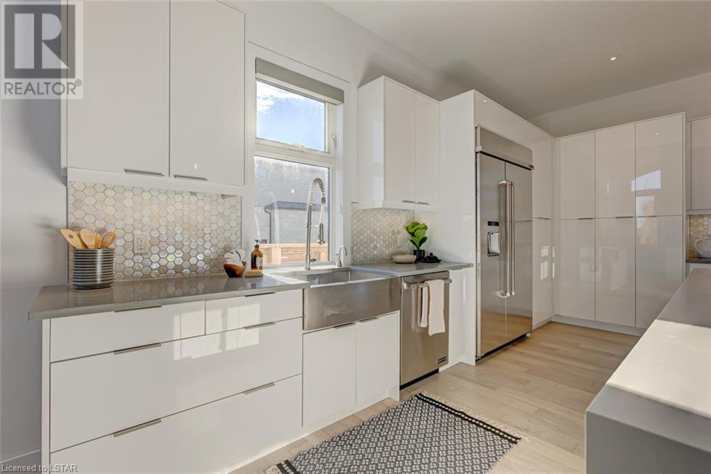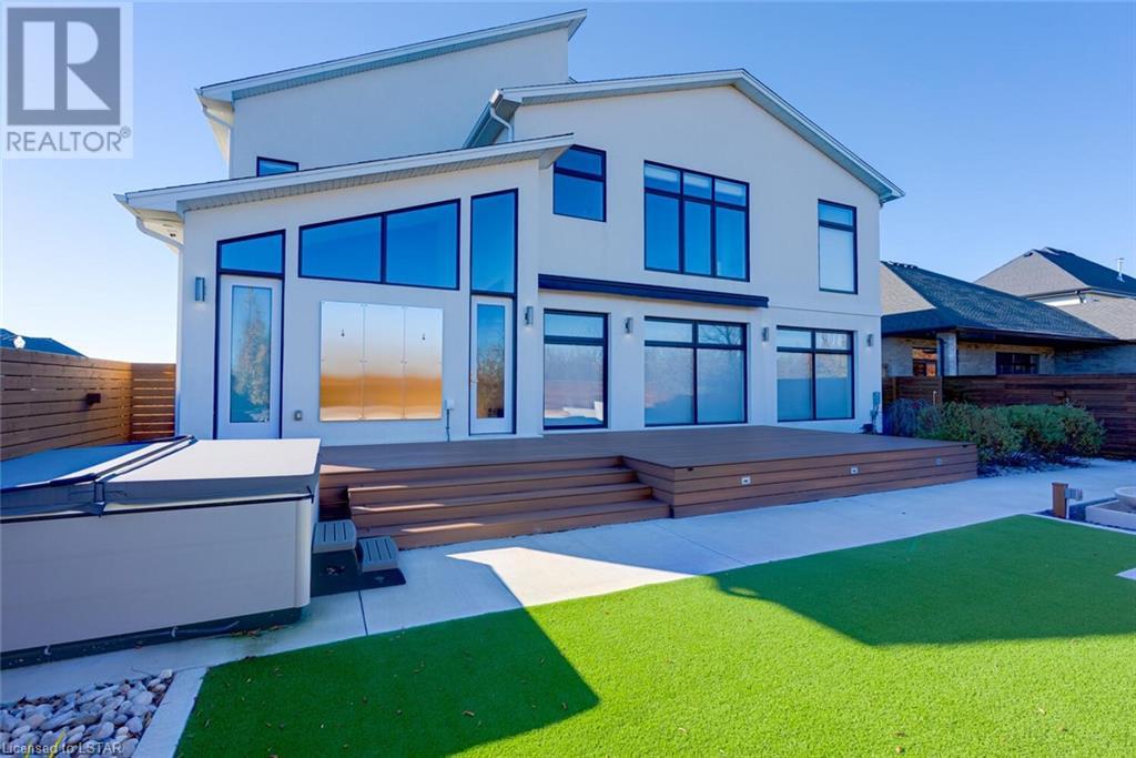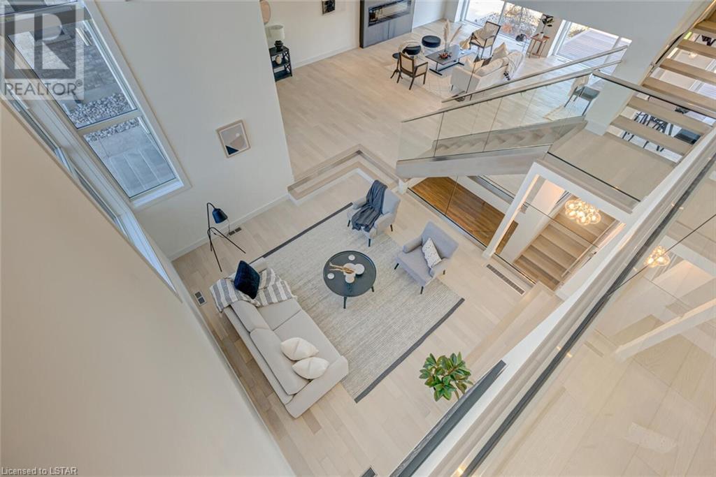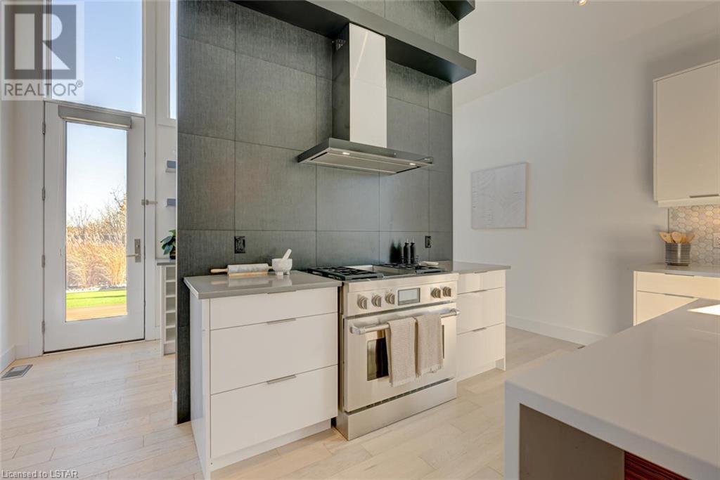 Outstanding custom-built property backing onto Medway Valley Heritage Forest trails with gorgeous view in desirable North London! This 3,900+ SF open concept layout boasts an impressive 20ft entryway with floor to ceiling windows in main living/dining room areas, sleek fireplace, contemporary glass/stainless railings/open risers and hardwood flooring throughout. Kitchen showcases white quartz countertops, custom cabinetry, plenty of storage, 10ft waterfall quartz island with Galley Workstation Sink. Second apron style sink in the kitchen with Garburator, Insta Hot Tap. Other features include a gas stove with hood range, commercial fridge/freezer combo, dishwasher (all S/S appliances), butler’s pantry with bar fridge, sink, ‘Urban Cultivator’ automated kitchen garden for growing fresh herbs/microgreens. Sunken lounge/family room. Upstairs features 4 beds & 3 full baths including stunning Primary Suite with vaulted ceiling, floor to ceiling windows, automated Hunter Douglas blinds, fireplace, and luxurious ensuite with double sinks, shower with bench, freestanding tub and massive closet with custom built-ins. Bedrooms 2 & 3 have custom closets with Jack & Jill ensuite. 4th bedroom has full bath & 20ft rock climbing wall. Convenient second floor laundry. 1694 SF Finished Basement offers a huge rec room, bedroom with full bath, bonus room for gym/playroom. Backyard with large composite deck, electric retractable awning, S/S BBQ backsplash panels, fire pit, fountain(roughed-in). 'Turfblock’ pet friendly artificial lawn, low maintenance stone/mulch gardens, perimeter privacy fence. Stil Hot tub. Installed Generac 7500 watt PowerPact automatic home backup generator, Battery backup sump pump system, Aquasana water filtration, Sprinkler system, Nest thermostat, Ring doorbell, Security system/cameras. Mudroom with shoe shelves/storage benches. 2 car garage with storage area. In-ceiling 5.1 Surround Speakers & Sonos sound system throughout house, slider volumes in each room. (id:22211)