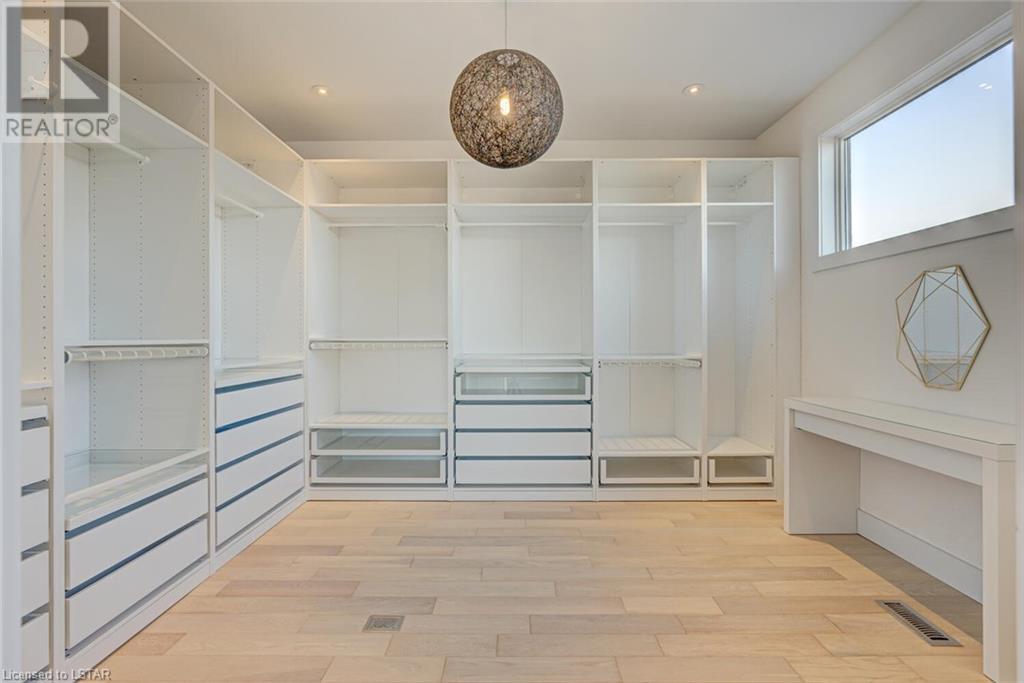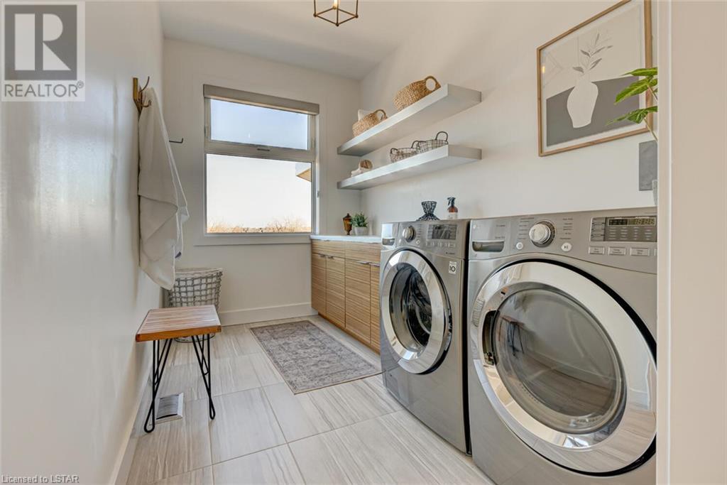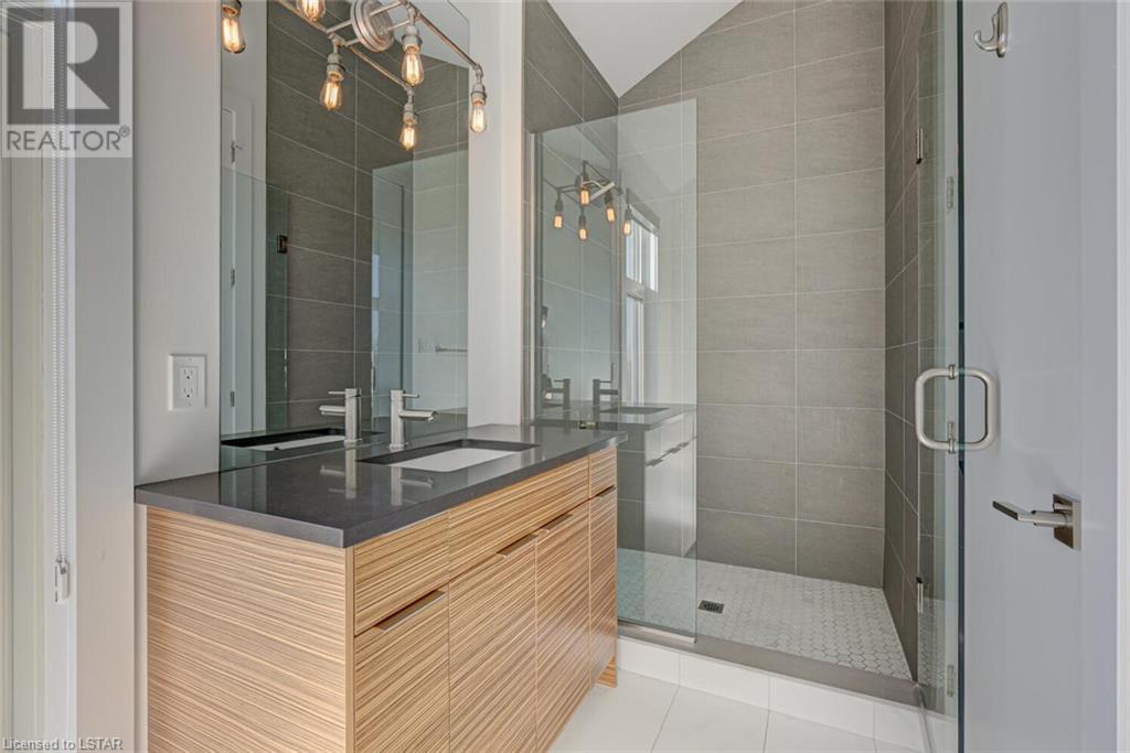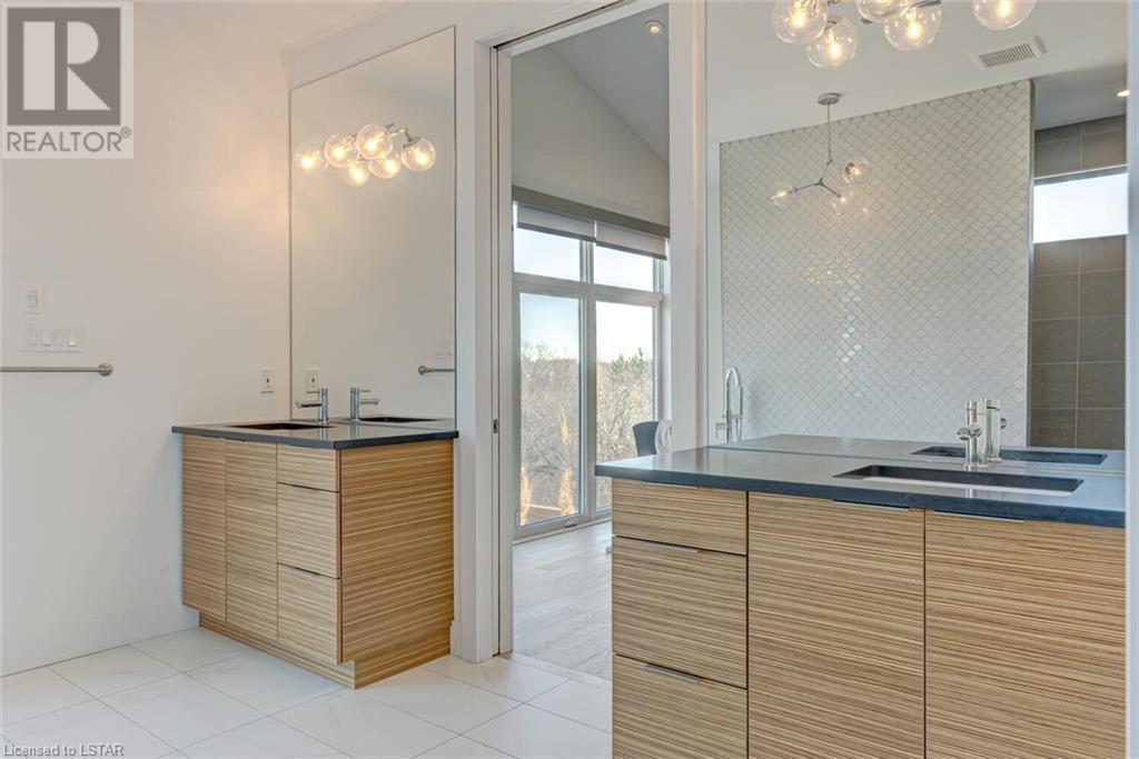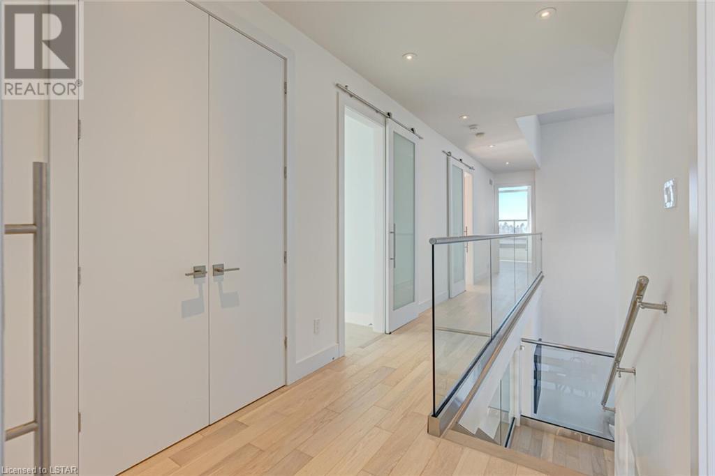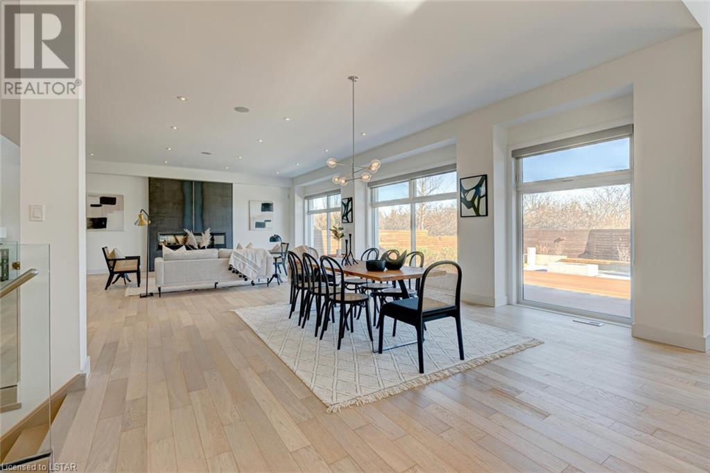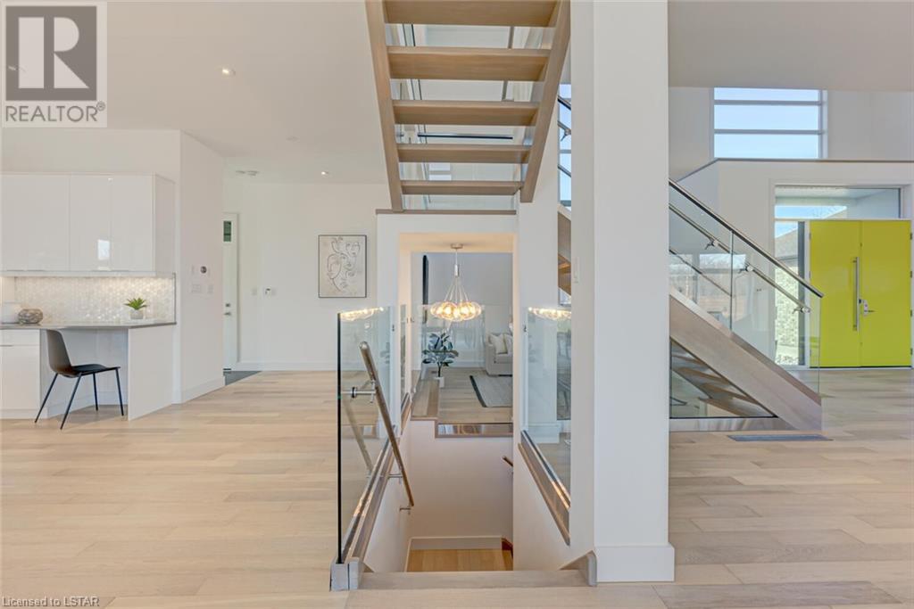 Outstanding custom-built property backing onto Medway Valley Heritage Forest trails with gorgeous view in desirable North London! This 3,900+ SF open concept layout boasts an impressive 20ft entryway with floor to ceiling windows in main living/dining room areas, sleek fireplace, contemporary glass/stainless railings/open risers and hardwood flooring throughout. Kitchen showcases white quartz countertops, custom cabinetry, plenty of storage, 10ft waterfall quartz island with Galley Workstation Sink. Second apron style sink in the kitchen with Garburator, Insta Hot Tap. Other features include a gas stove with hood range, commercial fridge/freezer combo, dishwasher (all S/S appliances), butler’s pantry with bar fridge, sink, ‘Urban Cultivator’ automated kitchen garden for growing fresh herbs/microgreens. Sunken lounge/family room. Upstairs features 4 beds & 3 full baths including stunning Primary Suite with vaulted ceiling, floor to ceiling windows, automated Hunter Douglas blinds, fireplace, and luxurious ensuite with double sinks, shower with bench, freestanding tub and massive closet with custom built-ins. Bedrooms 2 & 3 have custom closets with Jack & Jill ensuite. 4th bedroom has full bath & 20ft rock climbing wall. Convenient second floor laundry. 1694 SF Finished Basement offers a huge rec room, bedroom with full bath, bonus room for gym/playroom. Backyard with large composite deck, electric retractable awning, S/S BBQ backsplash panels, fire pit, fountain(roughed-in). 'Turfblock’ pet friendly artificial lawn, low maintenance stone/mulch gardens, perimeter privacy fence. Stil Hot tub. Installed Generac 7500 watt PowerPact automatic home backup generator, Battery backup sump pump system, Aquasana water filtration, Sprinkler system, Nest thermostat, Ring doorbell, Security system/cameras. Mudroom with shoe shelves/storage benches. 2 car garage with storage area. In-ceiling 5.1 Surround Speakers & Sonos sound system throughout house, slider volumes in each room. (id:22211)