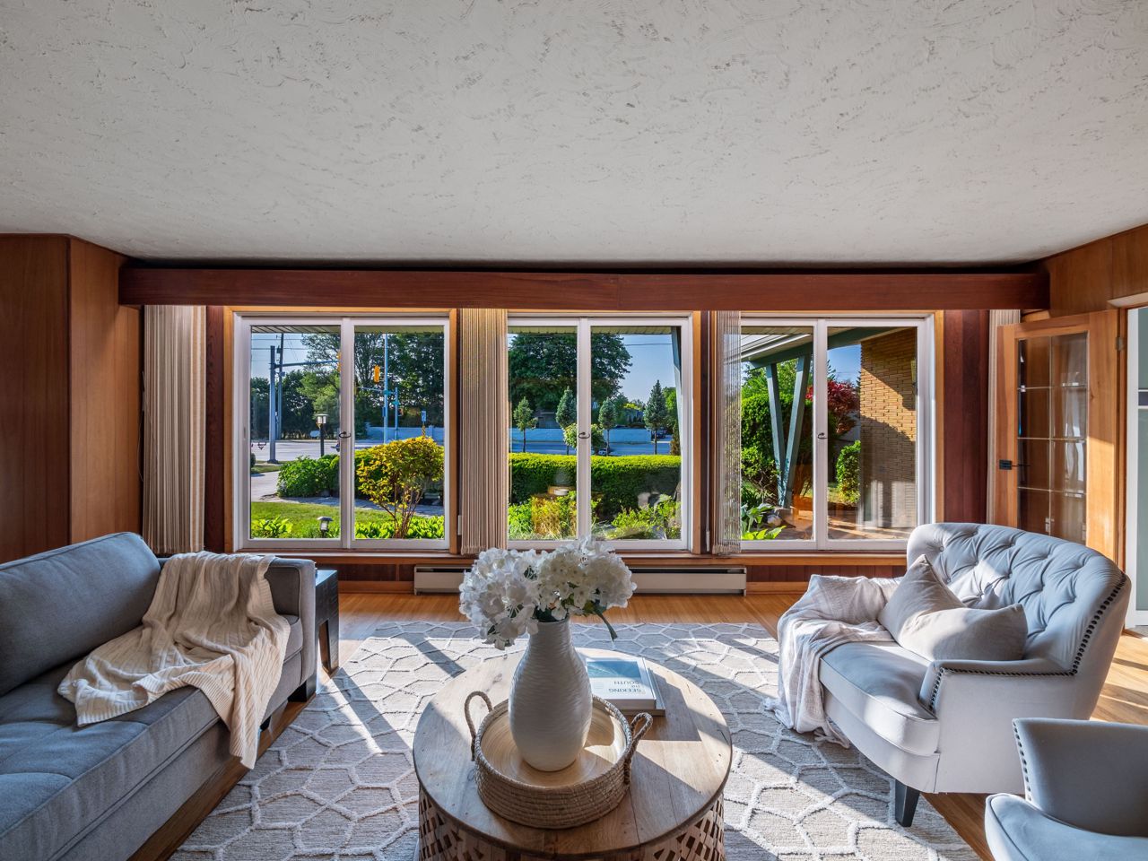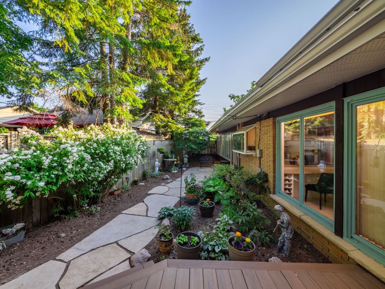 This Suzuki Built, Custom Brick Bungalow Is Nestled On A Large, Corner Lot within Walking Distance Of Several Highly Rated Schools. A Double Private Drive & Professional Landscaping Invite You To The Entrance Of This Wonderful Family Home. Inside, The Mid-Century Architectural Design Features 2 Oversized LRs Centered Around A Large Brick Fp: 1 attached To The Formal LR & The Other To The Fam Rm. These Rooms Offer An Inviting Space For Entertaining or Just Relaxing WFamily While Overlooking The Gardens thru An Abundance of Lrg Wndws. Natural Light Fills The House, Especially The Sunroom, Which Has 4 Skylights & Leads To The Bckyrd & Large Covered Deck. The 4 Bdrms Which Have Vaulted Ceilings & Ample Storage. The Primary Bdrm Has Dble Closet & Ensuite Bath. Primary Bthrm also has Dble Vanity + Jacuzzi Tub. Recently Reno’d Dble Garage, A Deep Lwr Lvl, Laundry & Giant Rec Room.SS Fridge, Wall Oven, Stove, Corian Countertops, W & D, Gas Furnace, A/C Central Air, Automatic Garage Dr Recently Installed Home Security System w/b/i Smoke Detector. 2839 sf on Mn Flr + 1086 sq in Bsmt = 3925 total sq ft *See flr plan.