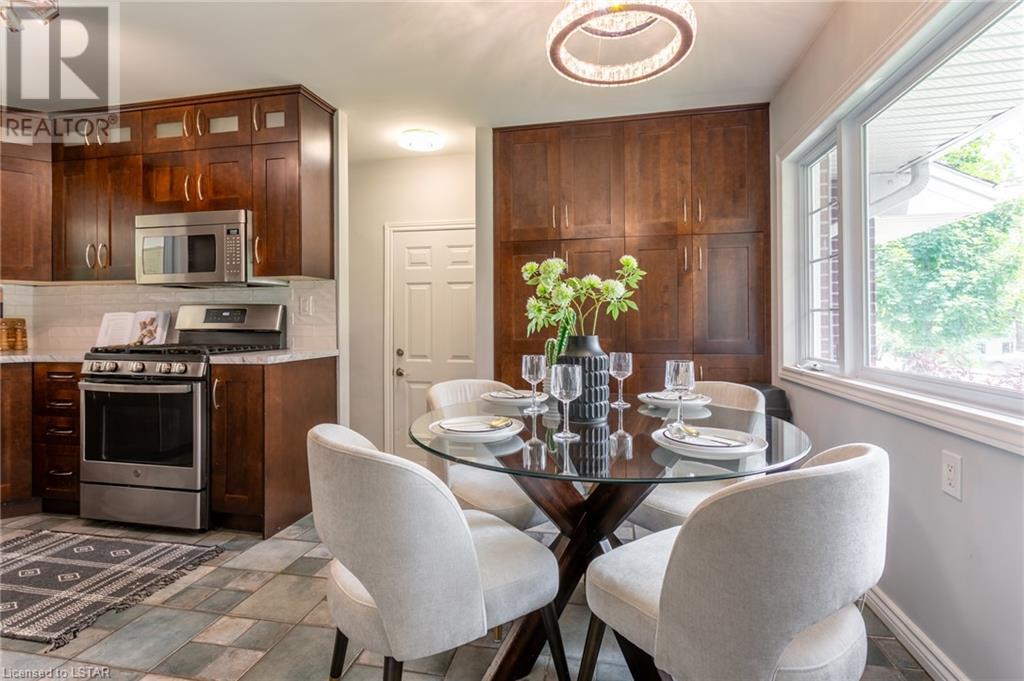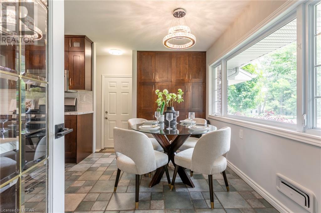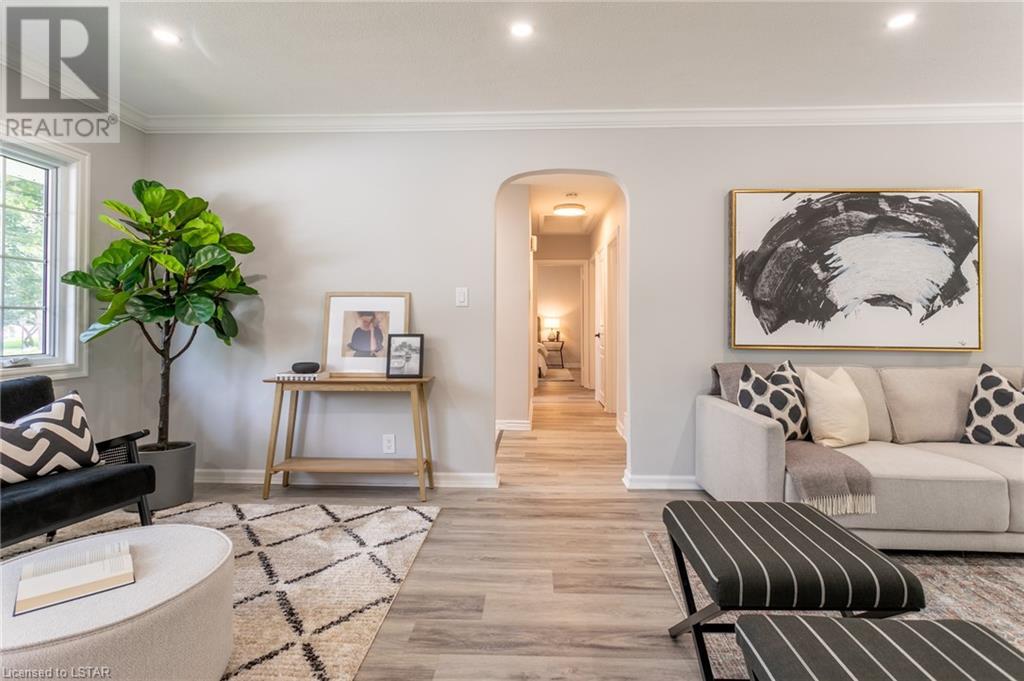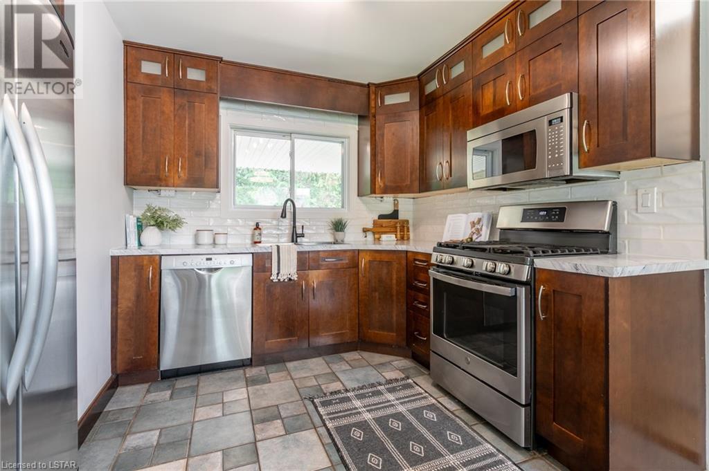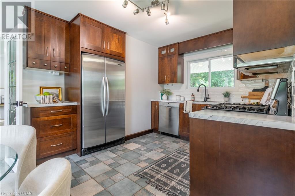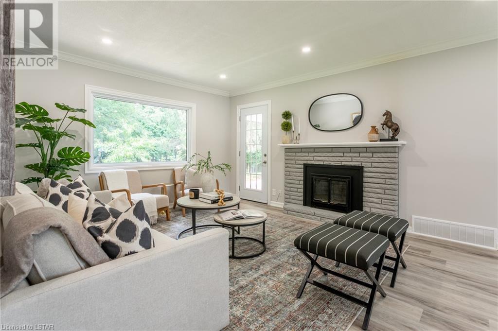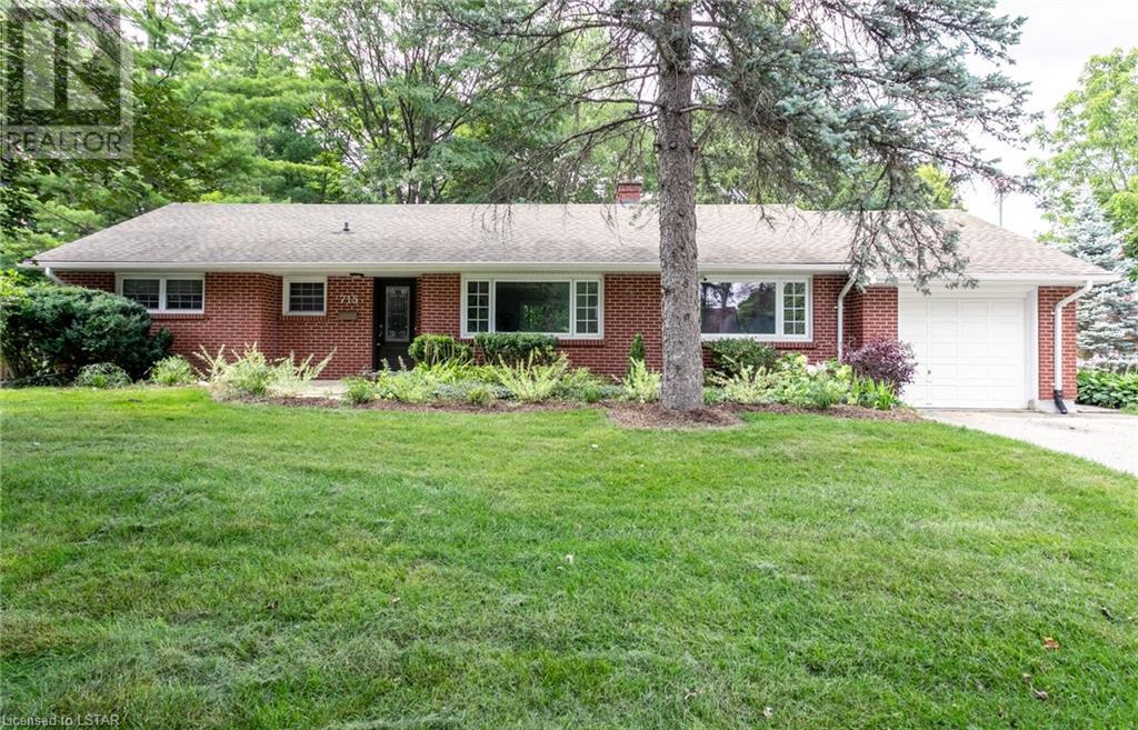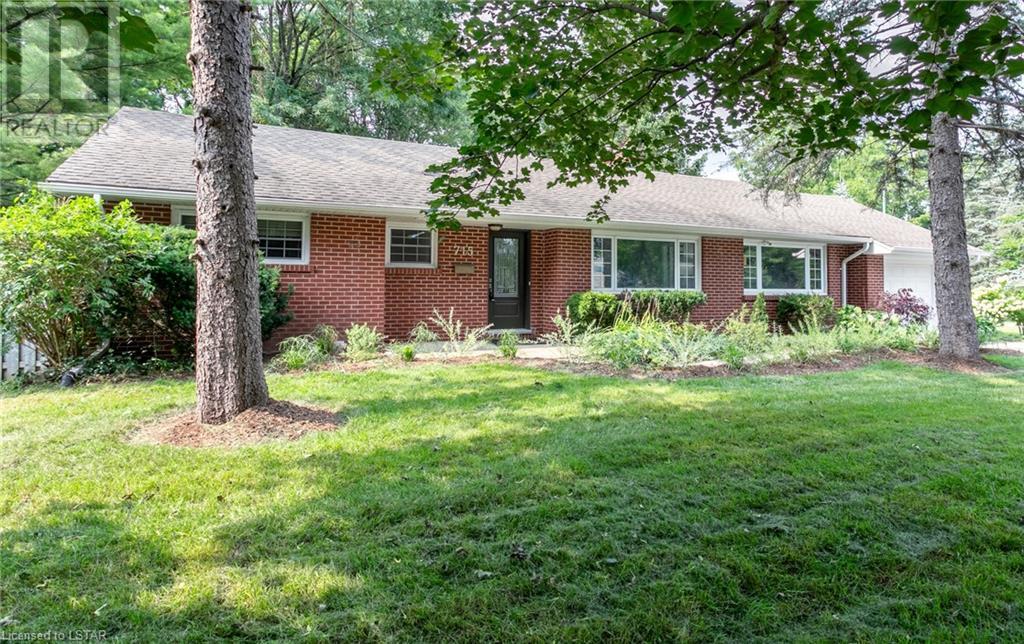 Welcome to 715 Riverside Drive! Sprawling 3+1 Bedroom brick ranch with in-law capability on a HUGE LOT (100x188 feet). This home has been renovated throughout including, painting, new flooring, trim, baseboards, bathrooms, doors, hardware and new lighting throughout. Enter the lobby with coat closet and access to the living/dining room with original stone faced fireplace. The large eat in kitchen with bright south facing window allows the morning sun to pour in. 3 good sized bedrooms and main bathroom make up the main floorplan. Access your attached single garage from the kitchen to the lower level with large 4th bedroom, 3 pc bathroom and large recreation room. This area makes for a great potential in-law suite or owner occupier and tenant arrangement. The lower level is home to the laundry room and a bonus room which could be an office, storage or craft room. The oversized backyard has so much potential. Install that pool you always wanted......or build a secondary dwelling or large workshop. Side entrance accesses main and lower levels from the garage. Enjoy the private back yard patio with ample room for lounging, entertaining and playing. Benefit from 2 large sheds and private, treed surroundings. Close to shopping, Riverside Public School, West Oaks FI and Oakridge SS and Sir Frederick Banting SS. Hop across the road to Thames River trails, golf course and parkland. (id:22211)