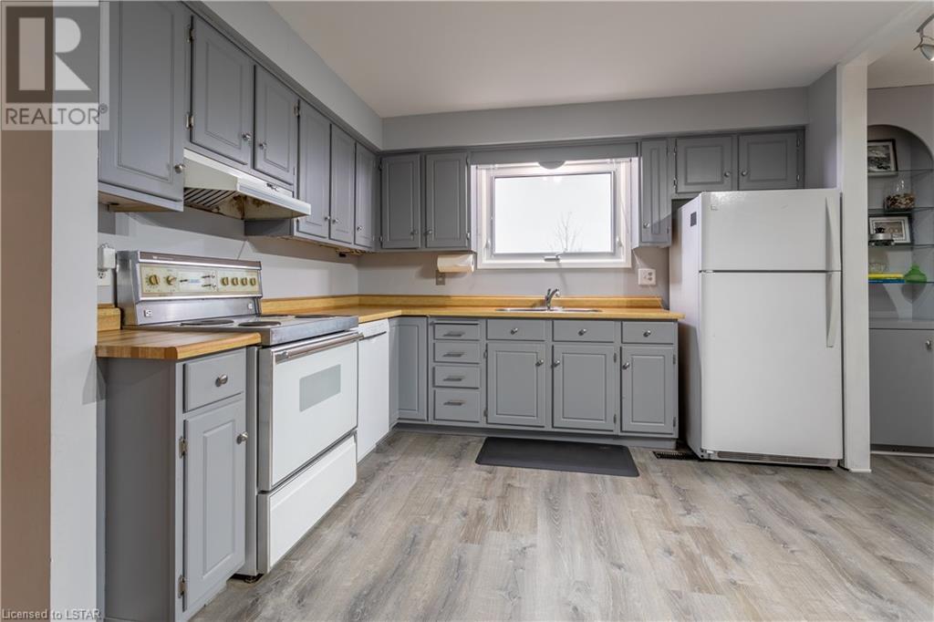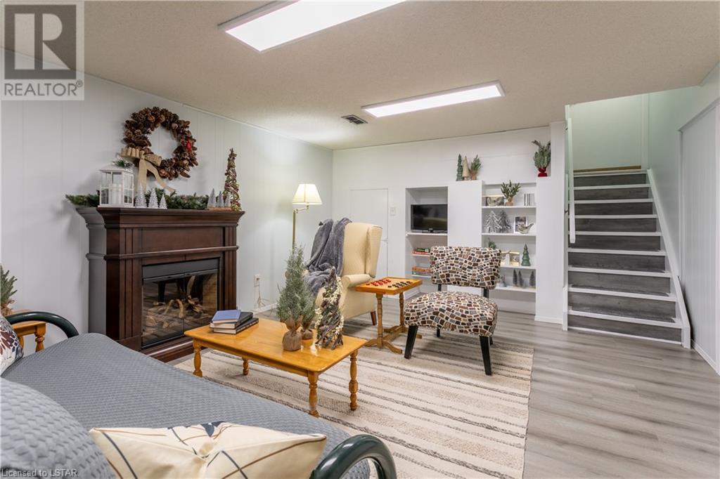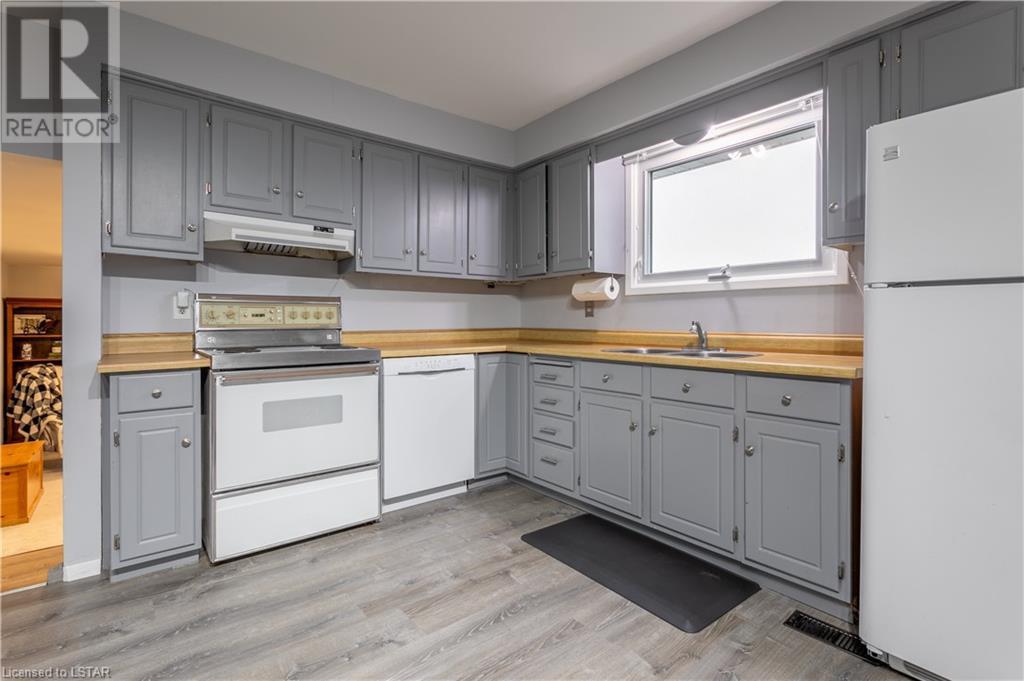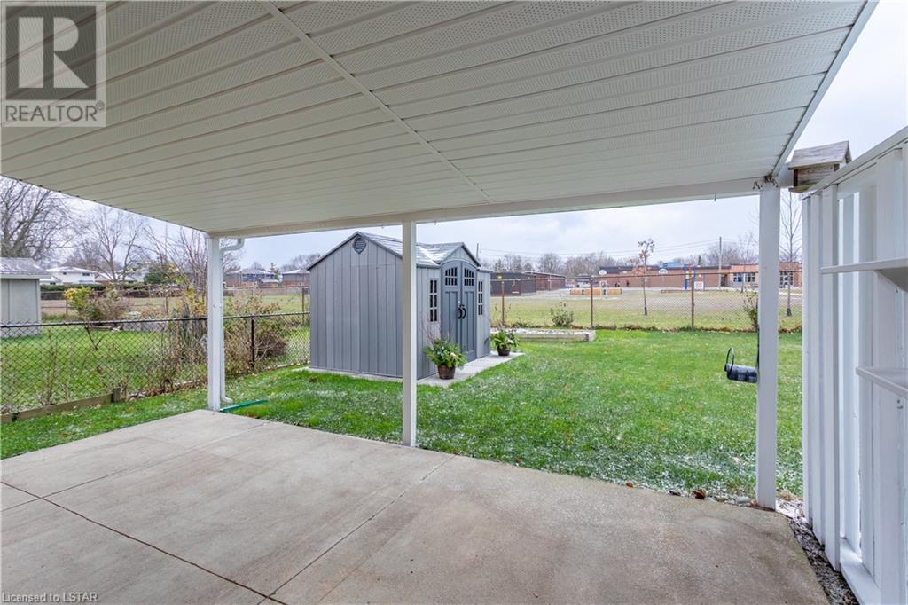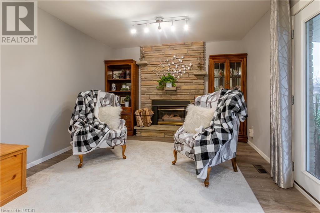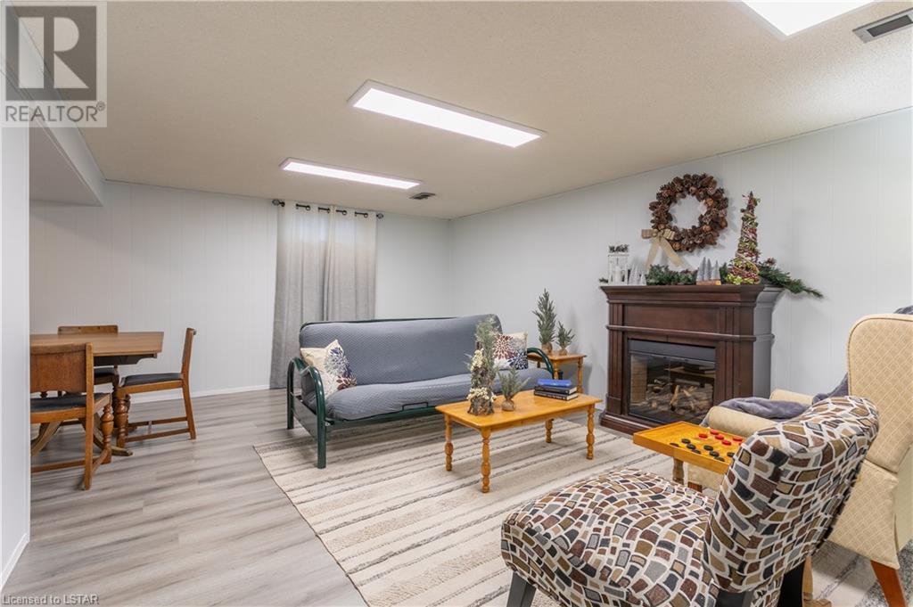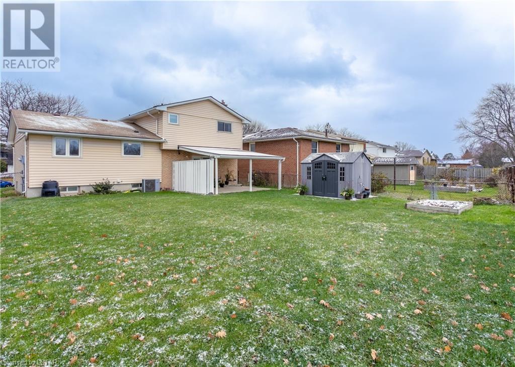“What a great neighbourhood!” This is what you will say as you drive up Lenore Street. Located in a desirable section of the city, with easy access to both the 401 and 402 and close to so many amenities – shopping, restaurants etc. As you arrive you will note how well cared for the property is, from the asphalt drive to the quaint front porch and attached garage. Stepping inside, you will realize that this pride of ownership runs throughout the entire home. The matching vinyl flooring has been installed on all levels of the homes and the entire home has been painted with tastefully chosen colous. Yes, this is a turnkey home – ready for new owners. There is a spacious living room with a bright bay window, next to a large and open eat-in kitchen (with built in accessory shelving). On the upper level, you will find three surprisingly spacious bedrooms and a nice decorated 4 piece bathroom. Just three steps down from the main floor and you will arrive at the powder room and inside access to the garage, then on to the family room, with its gas fireplace and patio doors that lead to the large and covered concrete patio and the fully fenced yard with a large shed and backing on to a large greenspace that is part of Sir Issac Brock Public School. The lower level of the home offers an additional family room, the laundry room as well as ample storage. With the additoin of an egress window there is plenty of space for a 4th bedroom on this level. (id:22211)