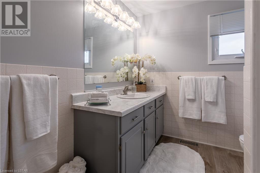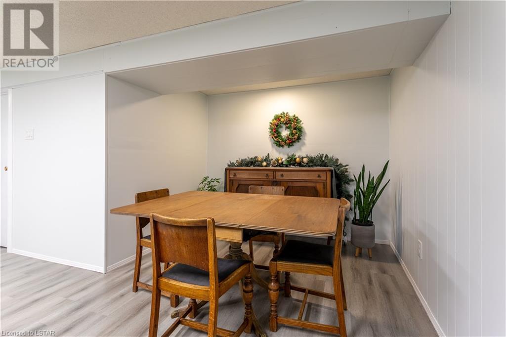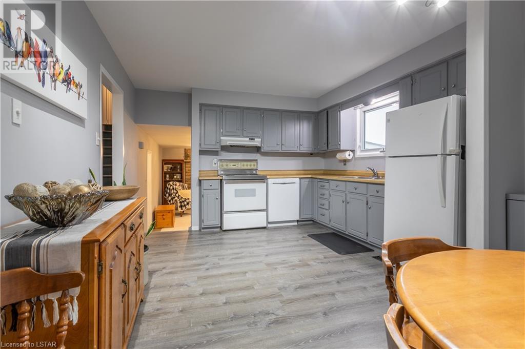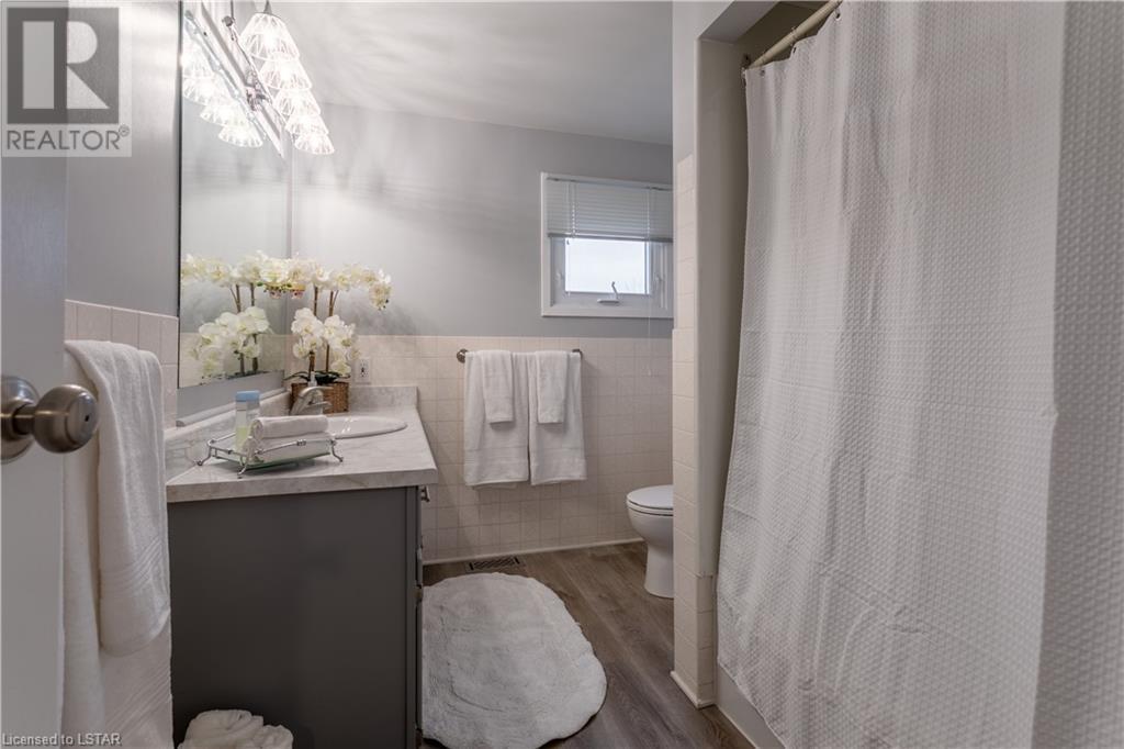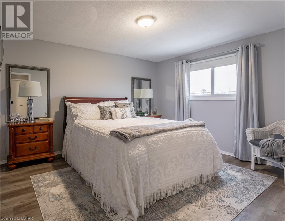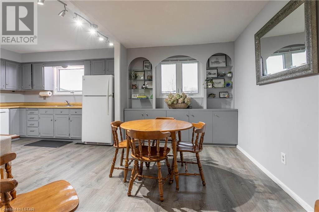 “What a great neighbourhood!” This is what you will say as you drive up Lenore Street. Located in a desirable section of the city, with easy access to both the 401 and 402 and close to so many amenities – shopping, restaurants etc. As you arrive you will note how well cared for the property is, from the asphalt drive to the quaint front porch and attached garage. Stepping inside, you will realize that this pride of ownership runs throughout the entire home. The matching vinyl flooring has been installed on all levels of the homes and the entire home has been painted with tastefully chosen colous. Yes, this is a turnkey home – ready for new owners. There is a spacious living room with a bright bay window, next to a large and open eat-in kitchen (with built in accessory shelving). On the upper level, you will find three surprisingly spacious bedrooms and a nice decorated 4 piece bathroom. Just three steps down from the main floor and you will arrive at the powder room and inside access to the garage, then on to the family room, with its gas fireplace and patio doors that lead to the large and covered concrete patio and the fully fenced yard with a large shed and backing on to a large greenspace that is part of Sir Issac Brock Public School. The lower level of the home offers an additional family room, the laundry room as well as ample storage. With the additoin of an egress window there is plenty of space for a 4th bedroom on this level. (id:22211)