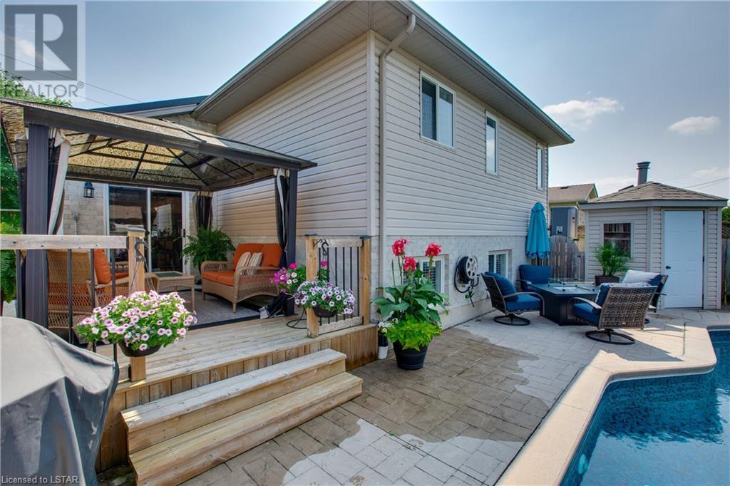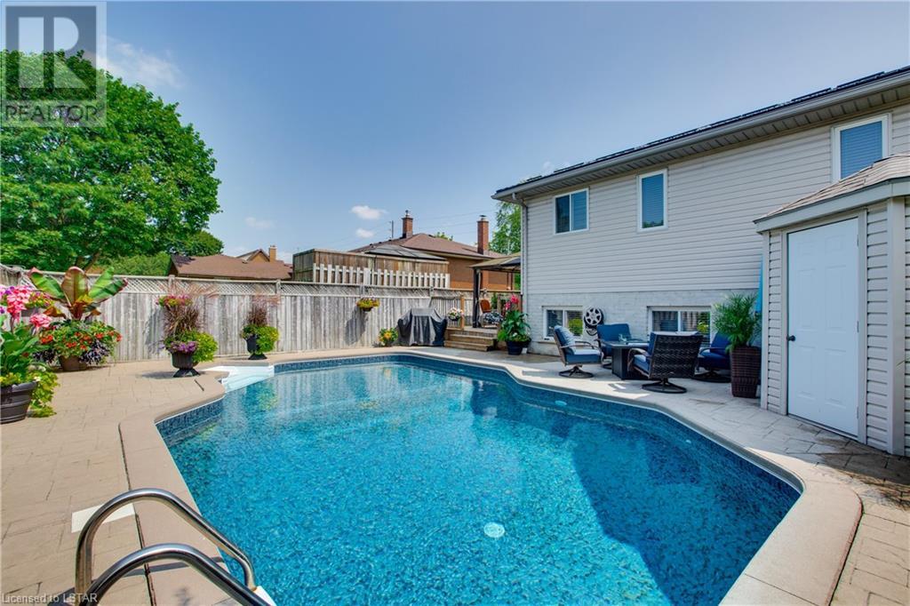 This bright, spacious and well-maintained 4 bedroom split-level beauty with double garage is ready for you to call home! Enjoy the handsome curb appeal before walking into the stunning front room and classy formal dining room. The oversized eat-in kitchen comes complete with vaulted ceilings, a large island, ceramic flooring, and newer appliances. The heart of this home is perfect for large dinners and gatherings. The second floor shows off 3 bedrooms, including a master with double closets and cheater door to a large main bath - with shower and jet tub. Just a few steps to the lower level, you will find the generous family room with gas fireplace that can fit the whole family on movie night. There is also a second 4 piece bath and 4th bedroom. The basement level of the home offers great development potential with an additional 708 sq. ft. of usable space. And finally, new flooring, lighting, and fresh paint complete the interior look of the home. The low maintenance back yard is perfect for pool lovers, entertaining or relaxing. The in-ground salt water heated pool is equipped with a new salt cell, pump and liner (2023). Enjoy the stamped concrete patio surrounding it, along with the gazebo covered deck. You can rest easy with the Hy Grade metal roof with 50 yr warranty (2011). Great location - close to shopping, Victoria Hospital, schools, downtown and highways. (id:22211)