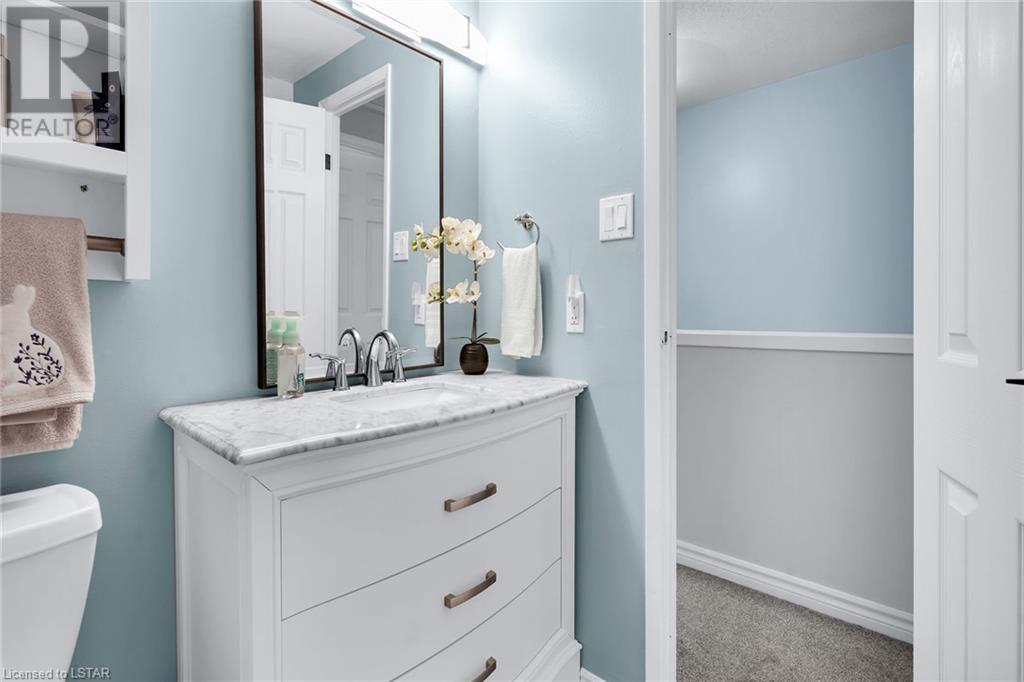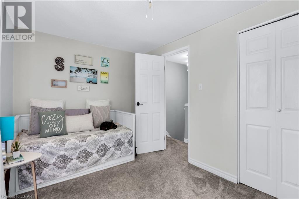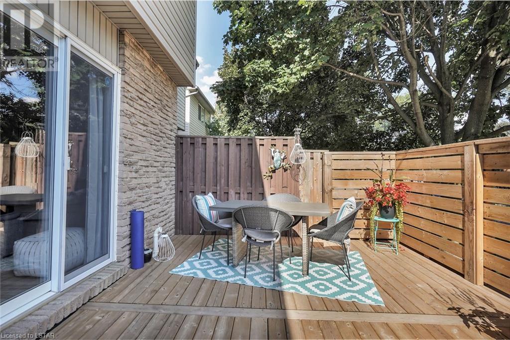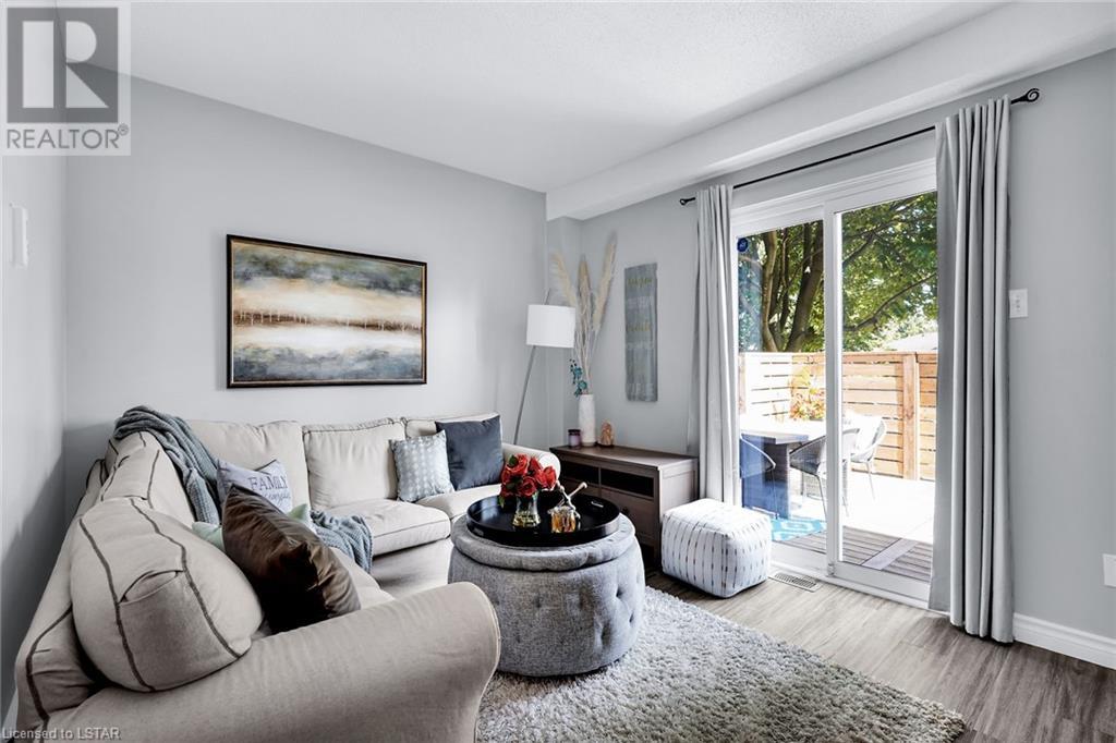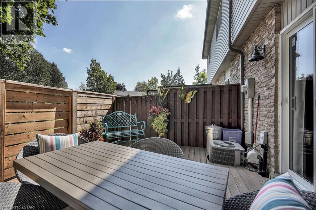 This incredible two-storey move-in ready condominium is located in the highly sought-after area of Westminster. Tucked away in the rear of the complex, you'll enjoy the convenience of parking right at your doorstep, with visitor parking nearby. Inside, this home is truly impressive. With two bedrooms, one and a half bathrooms, a partially finished basement, and a fully fenced yard complete with a fantastic private deck measuring 16ft X 13'6ft, there is plenty of space for comfortable living. The main level of the condo features a bright eating area that seamlessly connects to a modest kitchen, a comfortable living room, and a convenient two-piece bathroom. Moving to the second level, you'll find a spacious primary bedroom and a second bedroom, both offering ample closet space. The delightful four-piece bathroom was recently renovated in 2021, adding a touch of modern luxury. The basement sets a cozy atmosphere with a gas fireplace and a spacious recreational room, perfect for unwinding after a long day. Additionally, the generous-sized laundry room provides ample storage space. One parking space is assigned to this unit, and water is included in the condo fees. If needed, there is also the option to rent a second parking space from the Condo Corporation. Conveniently located near various amenities, restaurants, public transit, Tim Horton's, Shoppers Drug Mart, White Oaks Mall, Westminster Park, and with easy access to Highway 401, this condo offers a prime location. Don't miss the opportunity to view this exceptional property. It's a true gem in the heart of Westminster. (id:22211)
