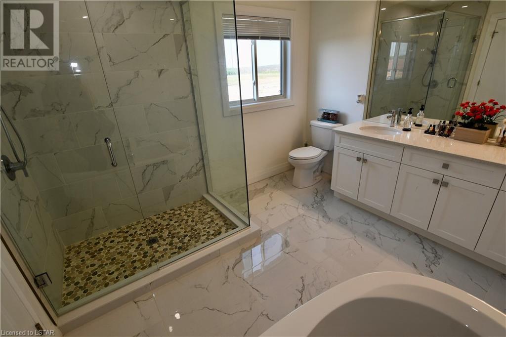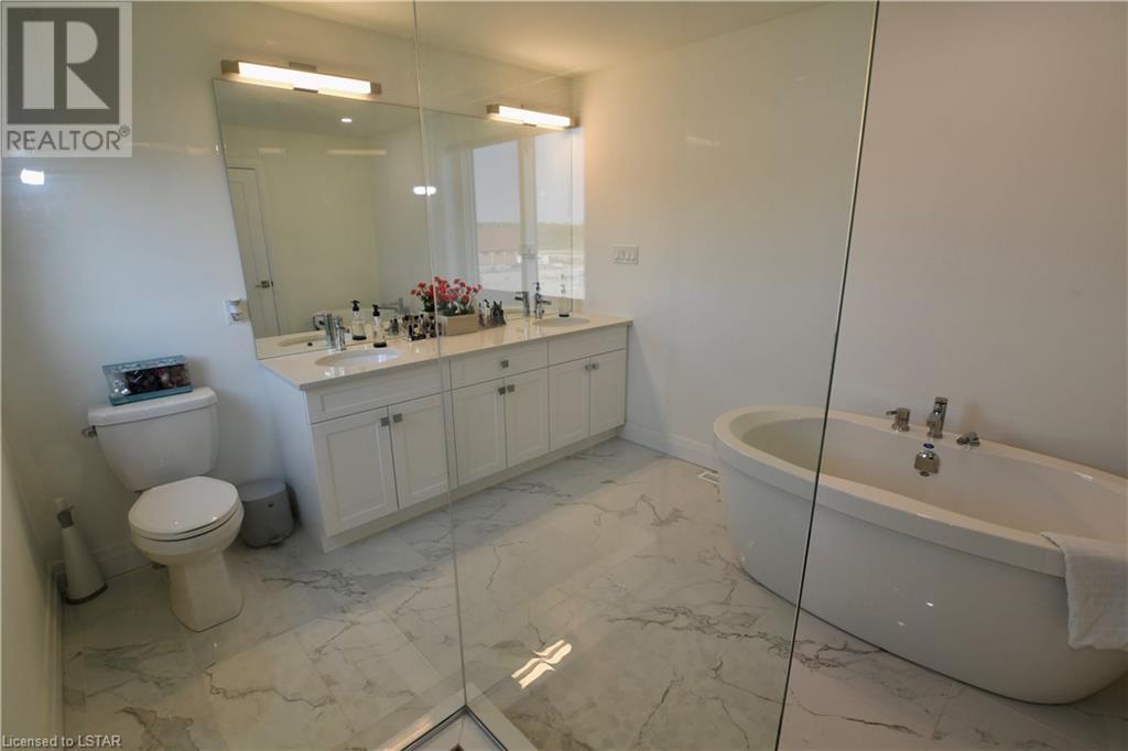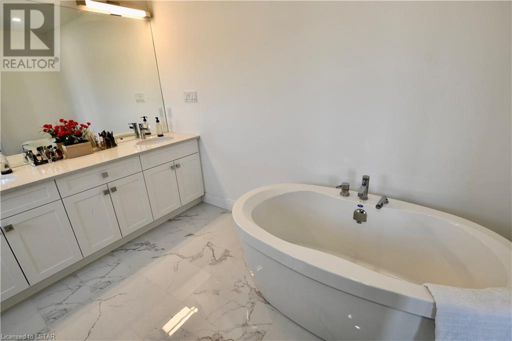 This elegant and exceptionally clean 2 years young home is situated in the prestigious neighbourhood of Uplands North. Experience a grandiose feeling from the moment you walk in with 9 ft ceilings and an open concept design. This home features 4 generous size bedrooms, 3 full bathrooms including a luxury 5-pc ensuite, engineered hardwood, custom blinds, quartz countertops, concrete driveway and is painted in modern neutral colours throughout. All 4 bedrooms are on the upper level with one of the bedrooms featuring a balcony to enjoy reading a book or a cup of coffee. Main floor boasts huge windows and patio doors providing tons of natural sunlight and access to backyard. Laundry on main level as well as a 3-pc bathroom. Lower is your open canvas as it is fully insulated and has a bathroom rough-in, 3 egress windows and a cold room. Close to all amenities, Western University and excellent schools. (id:22211)