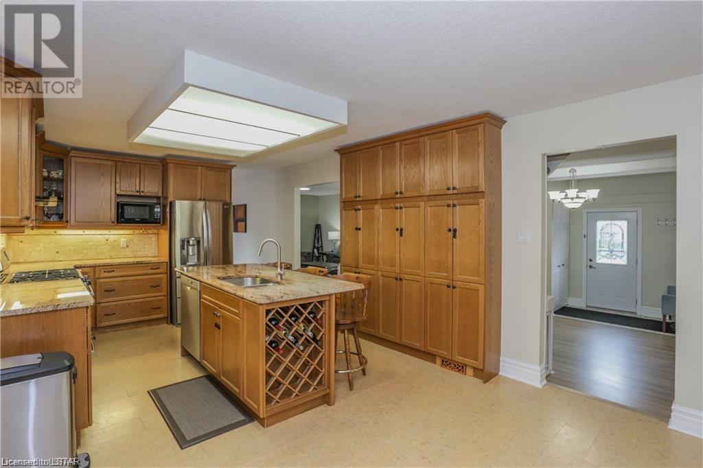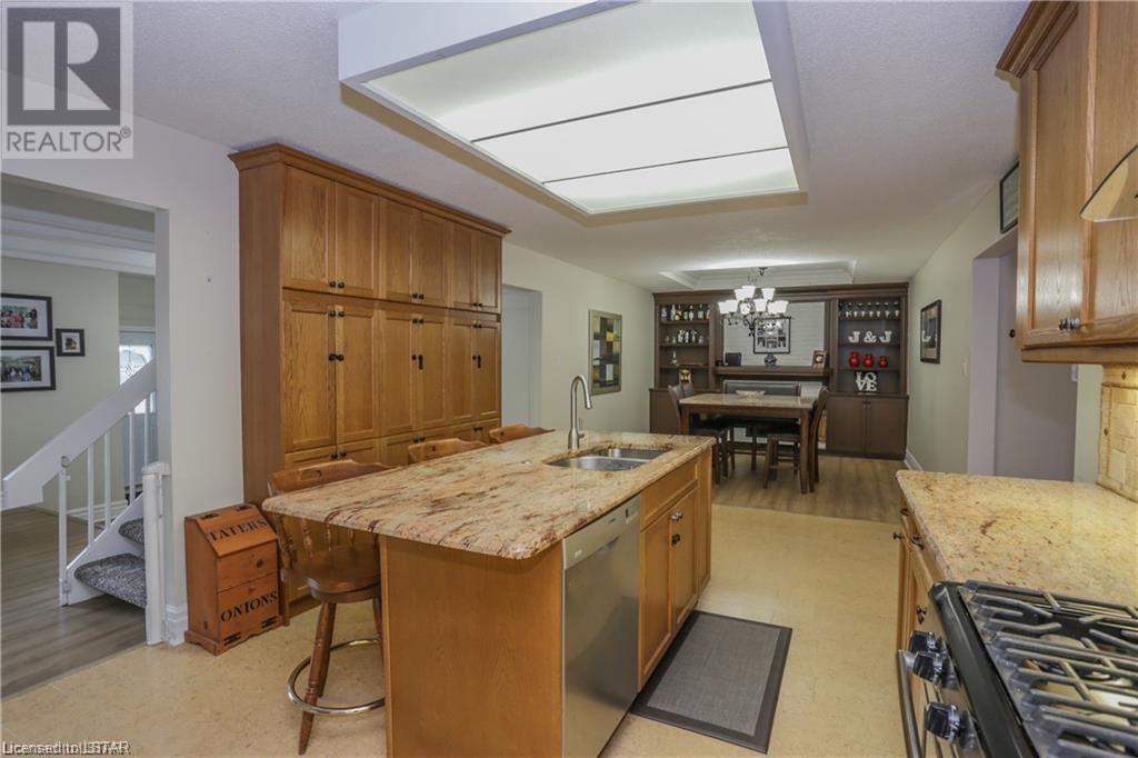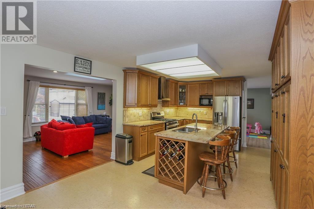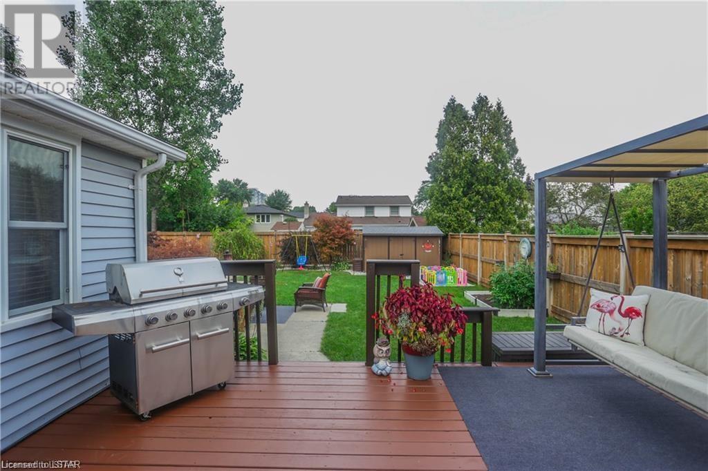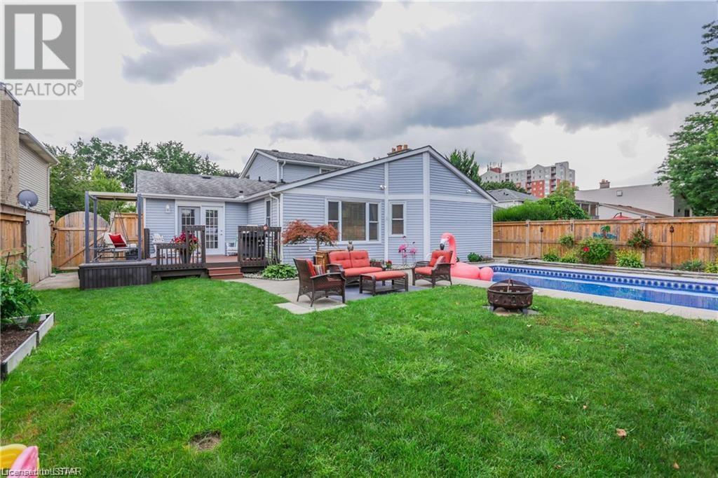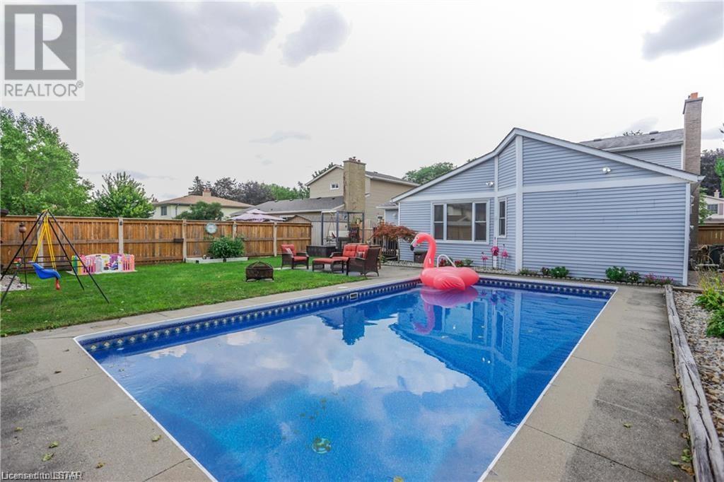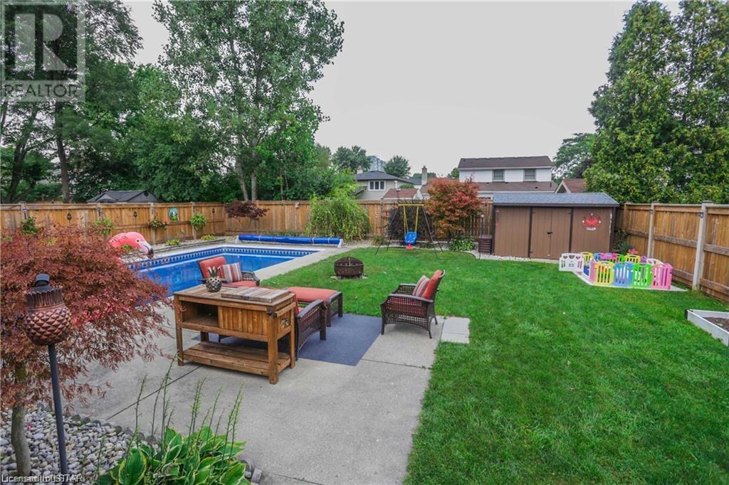 Welcome to this Gorgeous family sized home located in the Westmount area of London. This home features a large and completely remodelled kitchen with granite counter tops, huge island, pantry and high-end stainless steel appliances. The Family Room overlooks a fully fenced private back yard oasis with heated inground pool (16 x 32')This home has potential for easy main floor inlaw suite / granny suite or potential income with separate entrance. Basement provides extensive storage and finished rec room/ billiards room with gas fireplace and wet bar. Backyard has private patio area & beautifully landscaped rear yard/garden with 12' x 7' garden shed. prewired for hottub. Updated flooring on main and second floor, updated shower on main floor. New pool pump 2021, painted deck 2021, pool cover 2021. Newer windows 2006, fence 2017, roof shingles 2008, attic insulation (R50) 2009, furnace 2021, electrical panel 2010, 2 gas fireplace/1 electric. This home has room to grow. Excellent for entertaining or family fun. Walking distance to Saunders Secondary School and West Sherwood Fox PS, Westmount Mall, bus routes, shopping, movie theatre, restaurants, parks. (id:22211)