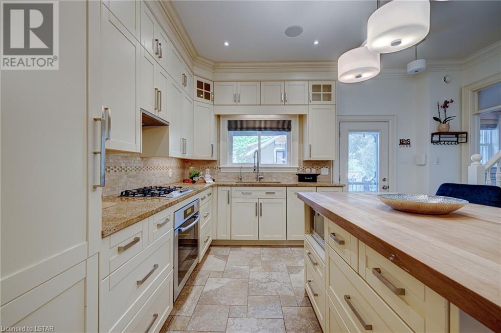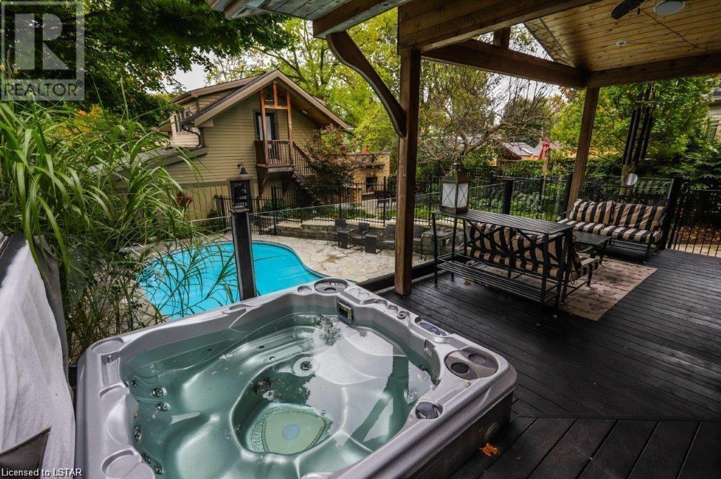 Breathtaking 2.5 storey home in the heart of the Bishop Hellmuth Historical District. This historic century home has been extensively renovated top to bottom with high end appliances (Miele & Subzero) and designer touches including custom millwork throughout. The property offers 4 bedrooms and 3 bathrooms above grade including a 3rd floor master retreat complete with a seating area, breakfast bar and ensuite. Laundry can be found on the second level for convenience and the basement is fully finished with a butlers pantry, mudroom and family room. Step out back to discover an Oasis complete with irrigation and landscaping throughout, in-ground heated salt water pool, built-in hot tub, Napoleon outdoor BBQ kitchen, and outdoor fireplace with pizza oven. Plenty of parking located in the insulated 2.5 car garage with a personal gym/office located on top. Other key features include European-style vinyl windows, metal roof and custom cabinetry. Walking distance to schools, parks, shopping, hospitals & downtown (id:22211)