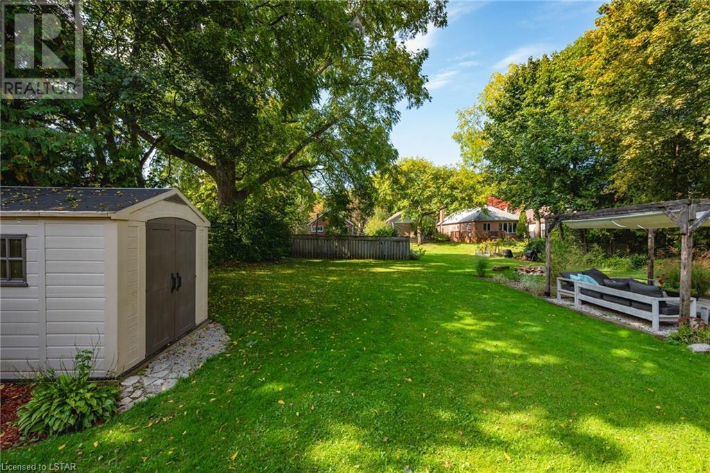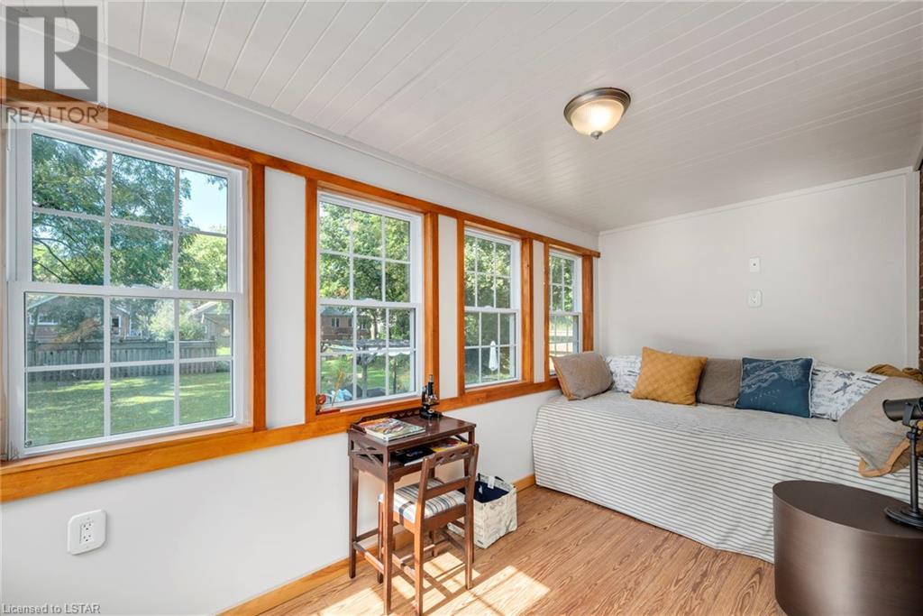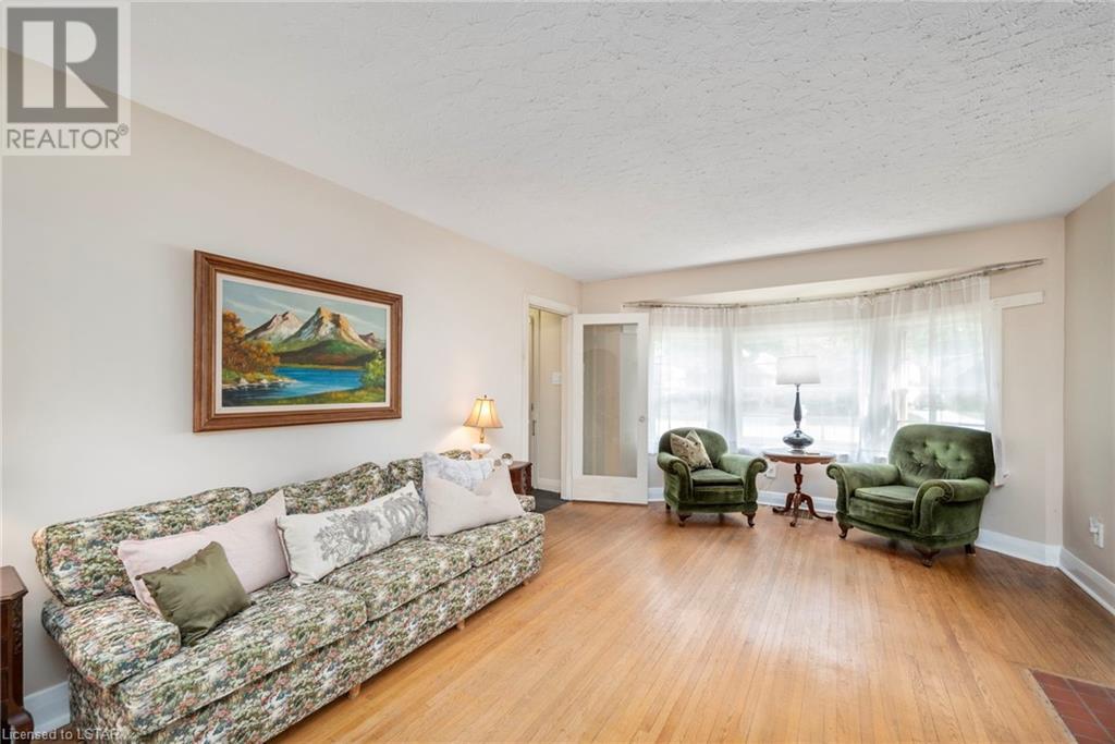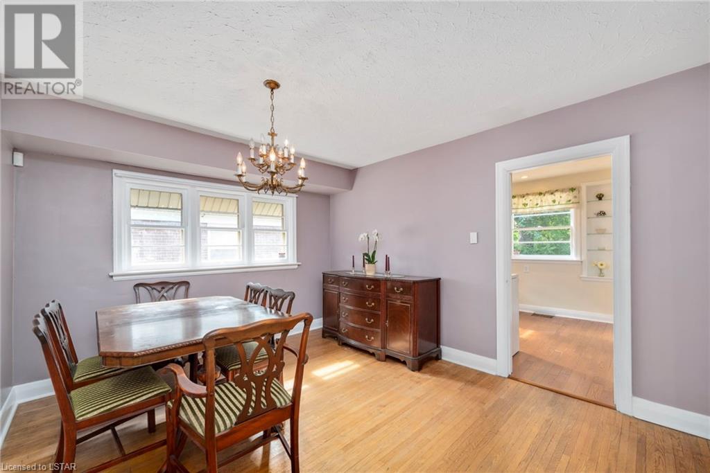 Welcome to this beautiful Arts & Crafts style bungalow in Old North! Pride of ownership is evident here as this home has been in the same family since 1945. Strategically situated on this massive 146ft deep lot, open space and a canopy of trees adorn the property. This one floor home has well-maintained original hardwood floors throughout, original victorian designed ornate grates, baseboards, framed & etched glass door and doorknobs. The expansive main floor holds a living room which provides lots of light and contains a wood burning fireplace, dining area with large windows, kitchen backing on to the backyard, main floor master & secondary bedrooms, 4 pc bathroom and incredible 3 season sunroom with cable & power overlooking the park-like backyard. The lower level has a separate entrance to the backyard and is an open concept clean slate for you to do what you wish. Some updates include roof (2021), concrete front porch with aluminum railing (2022), shed (2018), security system-owned (2022), 125amp electrical, updated cupula & more. Professionally landscaped front and back yards with healthy green grass. Long driveway + garage with high ceilings for storage and access to the backyard. These large lots are rare in this sought-after Old North location. Close to major amenities including St Josephs Hospital, Downtown London, Grocery, Gas, Public Transit, Food & Entertainment, Budweiser Gardens, Parks, Nature Trails + much more. Come see this home for yourself as it is finally on the market after 75+ years! (id:22211)