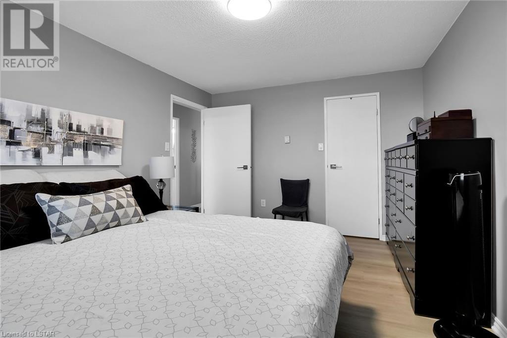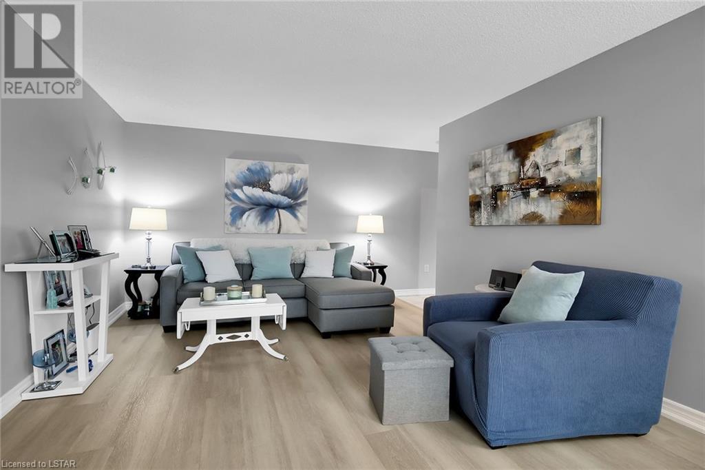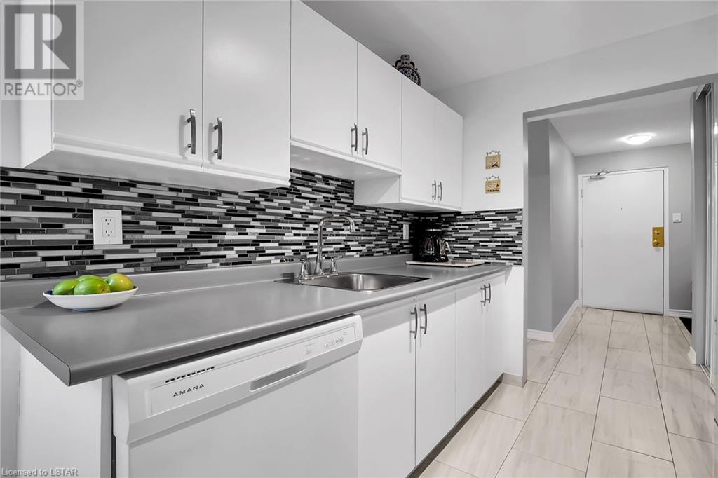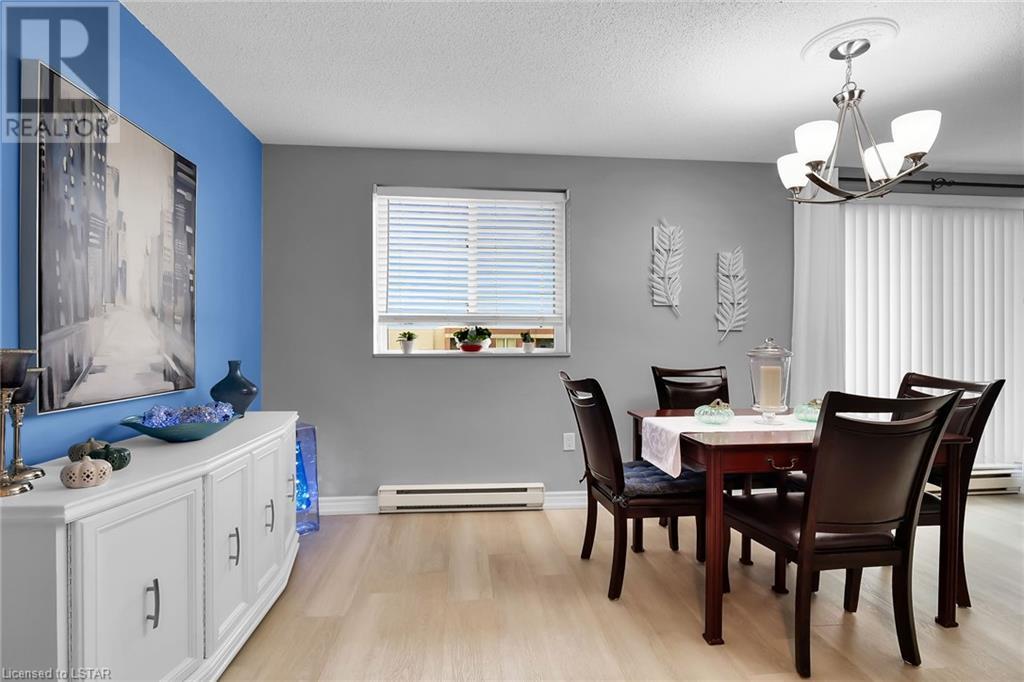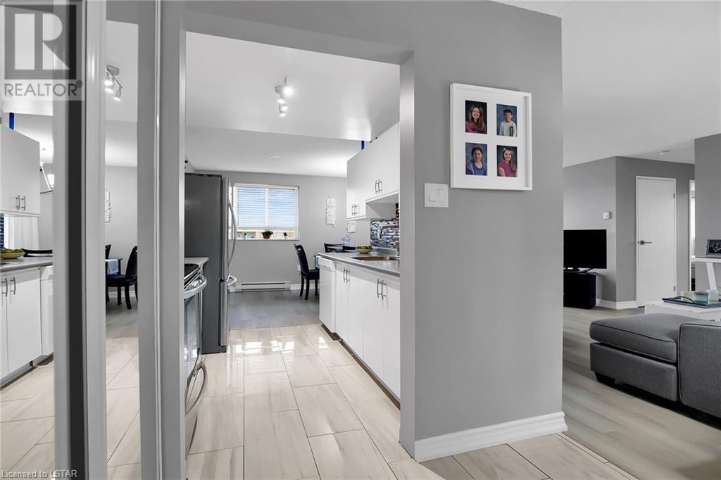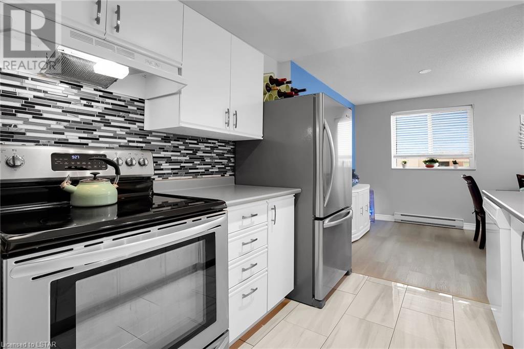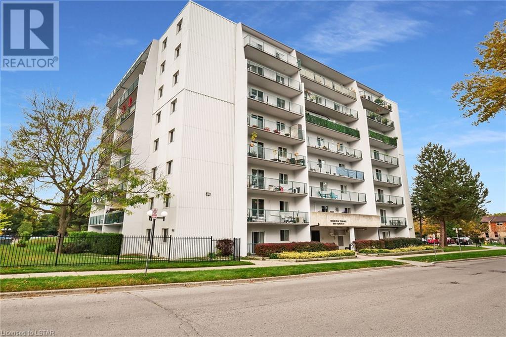Welcome to Ridgeview Terrace. A wonderful condo apartment complex located along direct bus routes going downtown, to Western University, and Fanshawe College. This 2 bedroom unit has been updated from top to bottom. You will love walking into your front foyer that has newer ceramic flooring and leads to your Modern renovated Kitchen featuring white cabinets, a beautiful backsplash, and stainless steel appliances. The separate dining area and living room features loads of natural light, great paint colours, and newer vinyl laminate flooring. Off the living room you will see the Patio Doors leading out onto the balcony with great views of the Forest City. The primary Bedroom is a great size and has a walk-in closet. The Second bedroom is currently being used for storage but is easily able to accommodate a queen size bedroom. The bathroom has been renovated from top to bottom with a new tiled shower/bath combo, flooring, and vanity. Whether you are looking to purchase your first starter home, downsize, or looking to add a property to your investment portfolio this condo has everything you want and is in move in ready condition. Book your appointment to see this unit today! (id:22211)