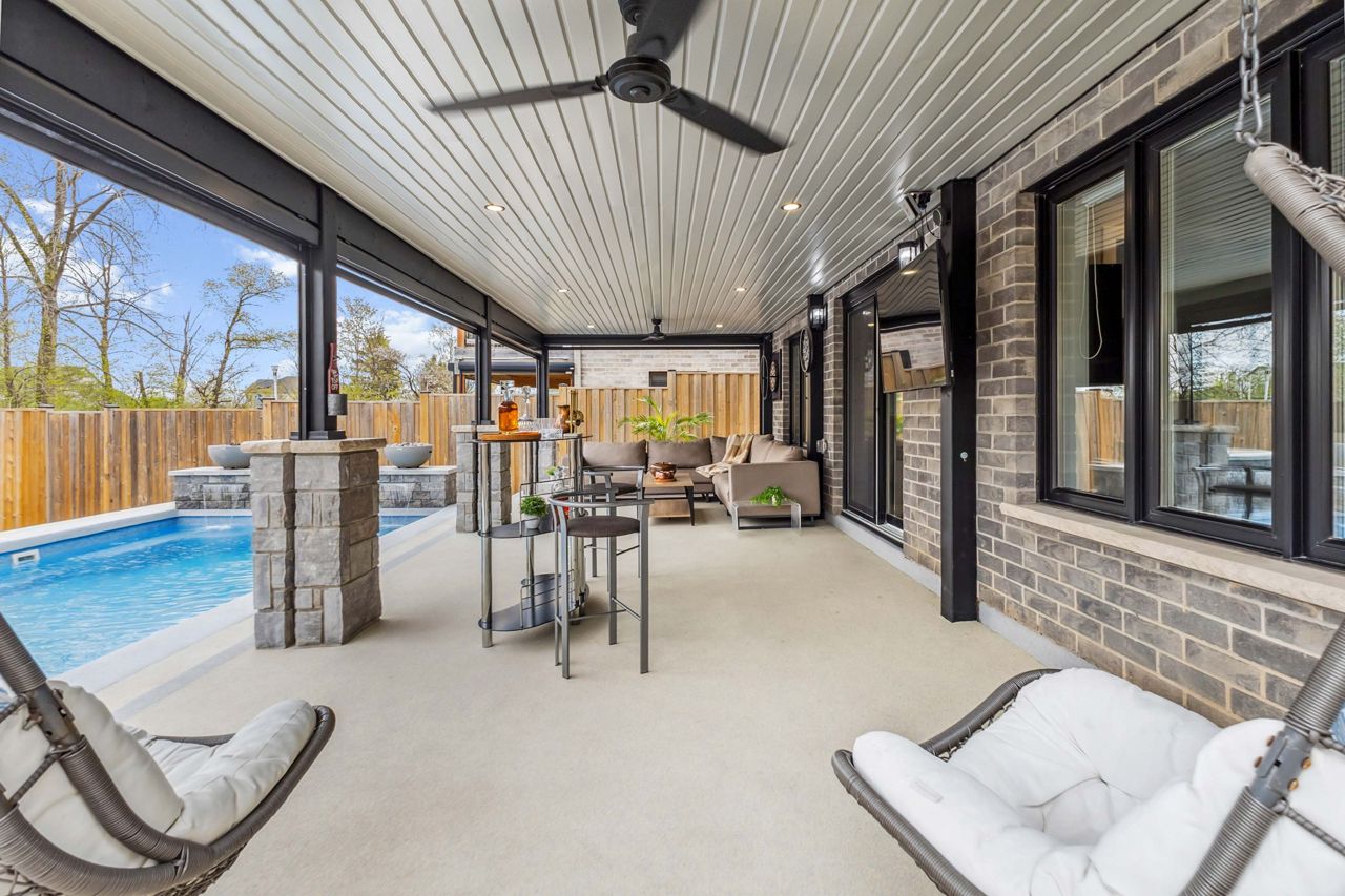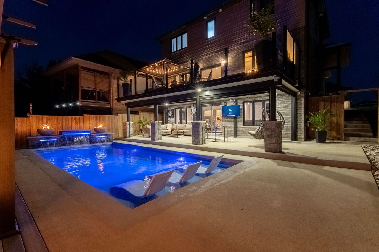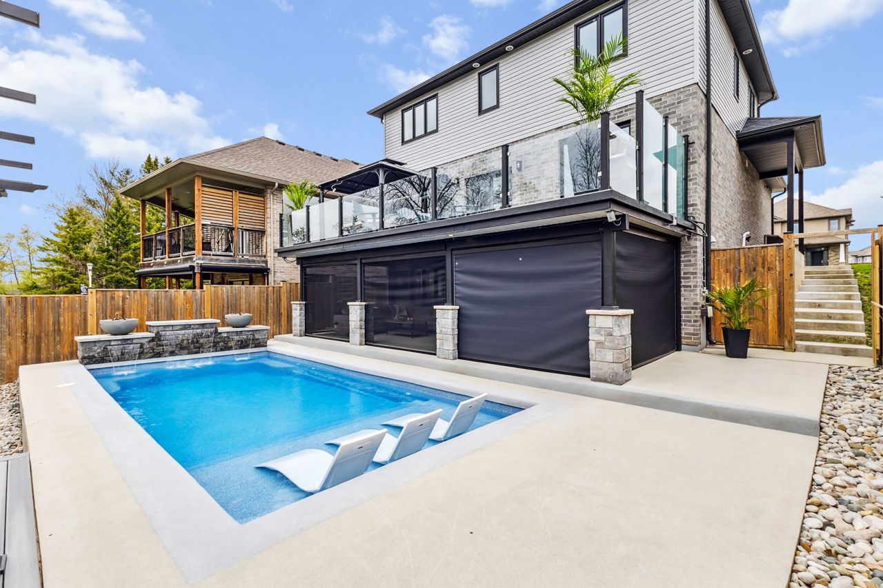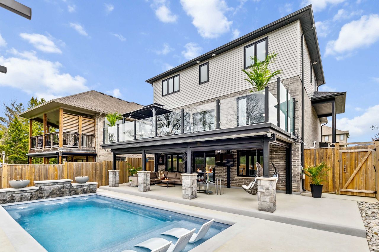 Welcome to 2529 Seven Oaks Ridge, a luxurious 4+2 bedroom, 4.5 bathroom home with over 3000 square feet of finished space located in the beautiful Victoria on the River community. Backing onto Meadowlily Woods, this property offers an open-concept main floor with 9' ceilings, hardwood floors, and stunning forest views. The chefs kitchen features quartz countertops, walk-in pantry, bar fridge, custom built-in buffet, and walkout access to a private deck with tempered glass railings, privacy panels, a natural gas fire pit and hot tub that is perfect for outdoor relaxation. The living room is bright and spacious with a gorgeous Opti-myst water vapour fireplace and even more custom built-ins. The fully finished walk-out basement includes egress windows and a private side entrance, making it ideal for multigenerational living or possibility for an accessory dwelling unit (ADU). Enjoy resort-style amenities in your own backyard, including a heated in-ground saltwater pool, soft Crete patio, fully-fenced yard, automated retractable outdoor shades, and fire/water features that create a peaceful retreat. Additional highlights include central air with HRV system, spray foam insulation under the basement concrete, triple-pane windows for energy efficiency, and a spacious 2-car heated garage that is EV ready. The three car wide concrete driveway is perfect for extra parking or a boat. Surrounded by nature yet minutes from the 401 and all city conveniences, this home blends comfort, style, and functionality in one of Londons most desirable neighbourhoods.