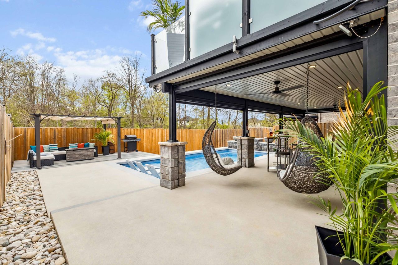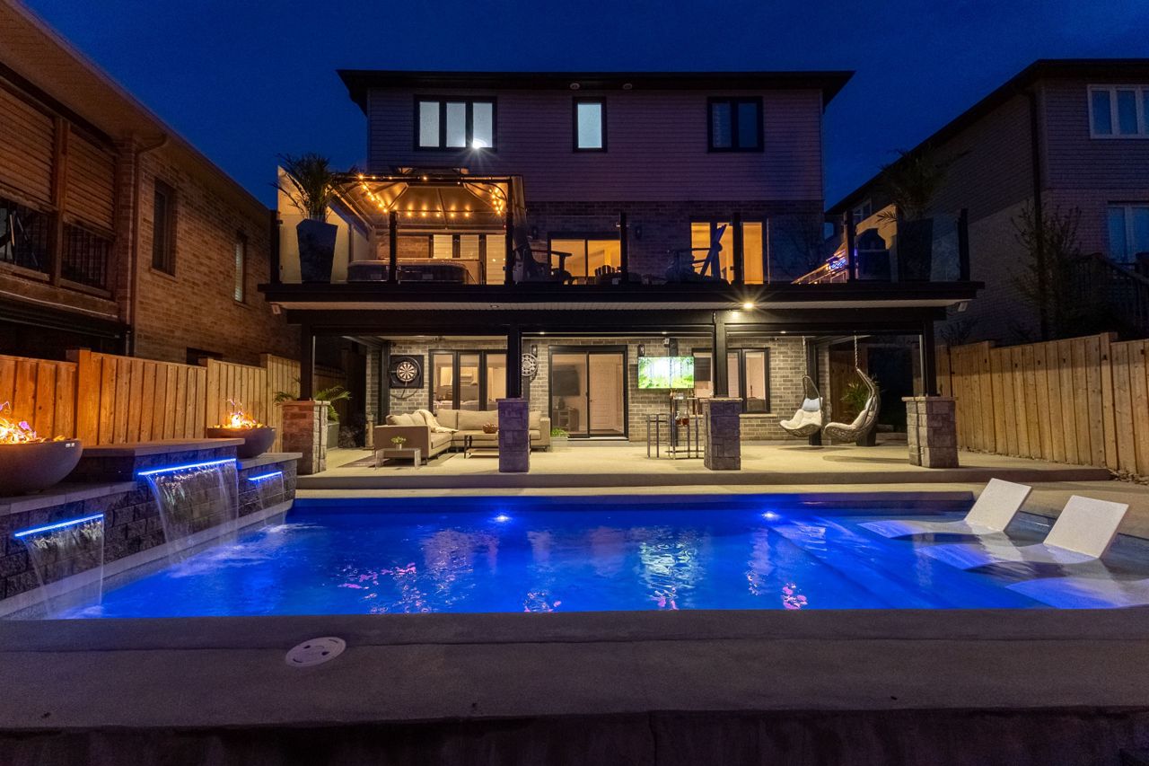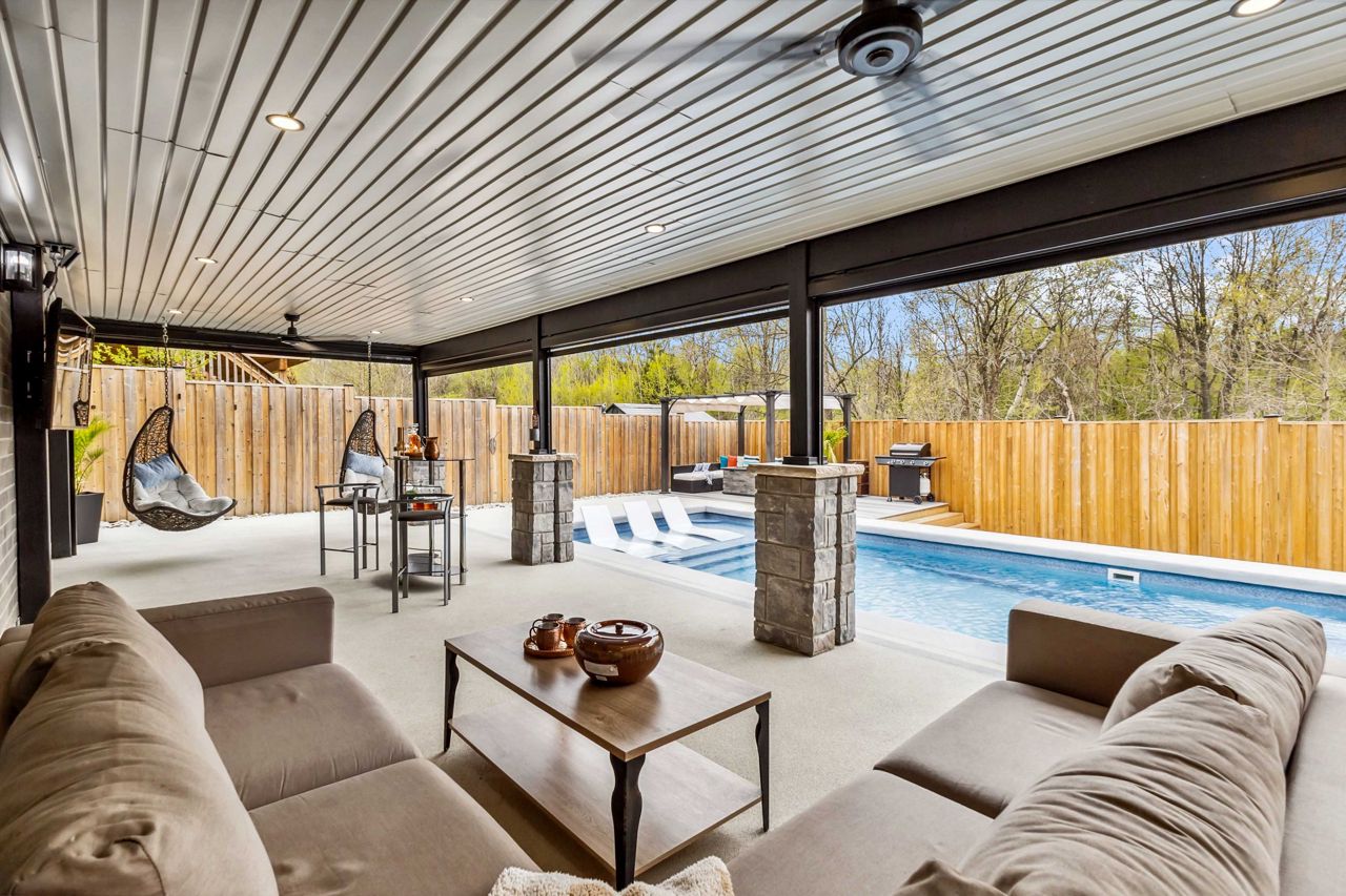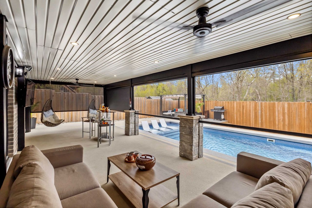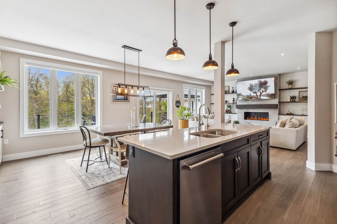 Welcome to 2529 Seven Oaks Ridge, a luxurious 4+2 bedroom, 4.5 bathroom home with over 3000 square feet of finished space located in the beautiful Victoria on the River community. Backing onto Meadowlily Woods, this property offers an open-concept main floor with 9' ceilings, hardwood floors, and stunning forest views. The chefs kitchen features quartz countertops, walk-in pantry, bar fridge, custom built-in buffet, and walkout access to a private deck with tempered glass railings, privacy panels, a natural gas fire pit and hot tub that is perfect for outdoor relaxation. The living room is bright and spacious with a gorgeous Opti-myst water vapour fireplace and even more custom built-ins. The fully finished walk-out basement includes egress windows and a private side entrance, making it ideal for multigenerational living or possibility for an accessory dwelling unit (ADU). Enjoy resort-style amenities in your own backyard, including a heated in-ground saltwater pool, soft Crete patio, fully-fenced yard, automated retractable outdoor shades, and fire/water features that create a peaceful retreat. Additional highlights include central air with HRV system, spray foam insulation under the basement concrete, triple-pane windows for energy efficiency, and a spacious 2-car heated garage that is EV ready. The three car wide concrete driveway is perfect for extra parking or a boat. Surrounded by nature yet minutes from the 401 and all city conveniences, this home blends comfort, style, and functionality in one of Londons most desirable neighbourhoods.