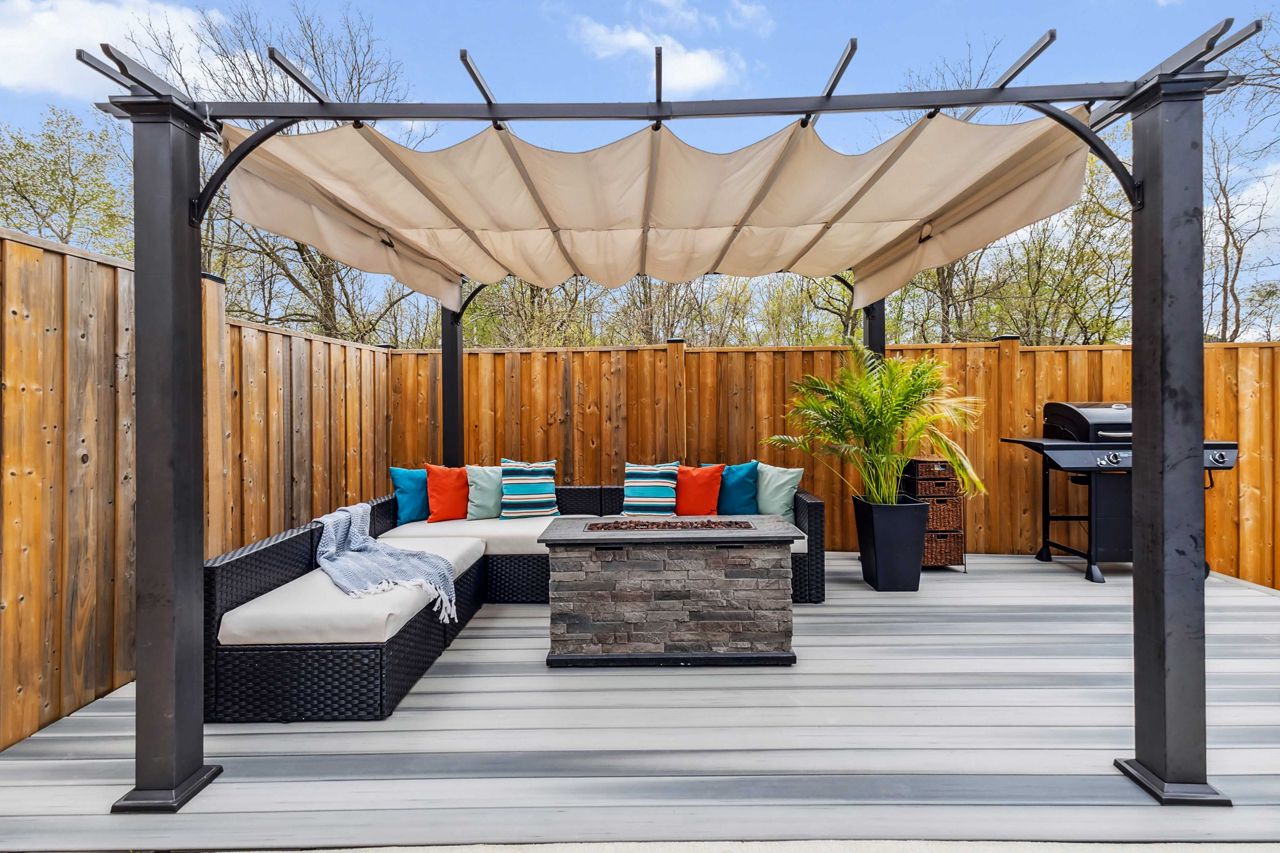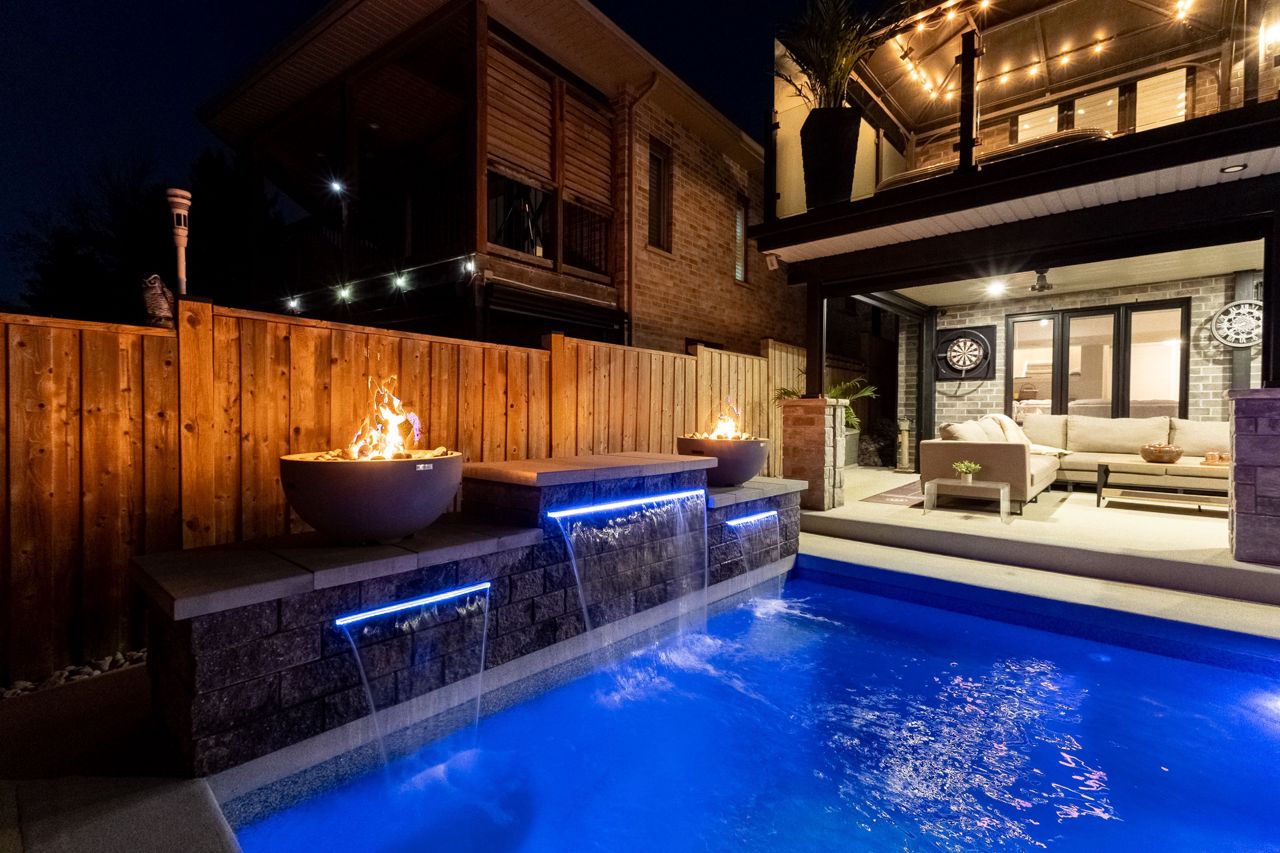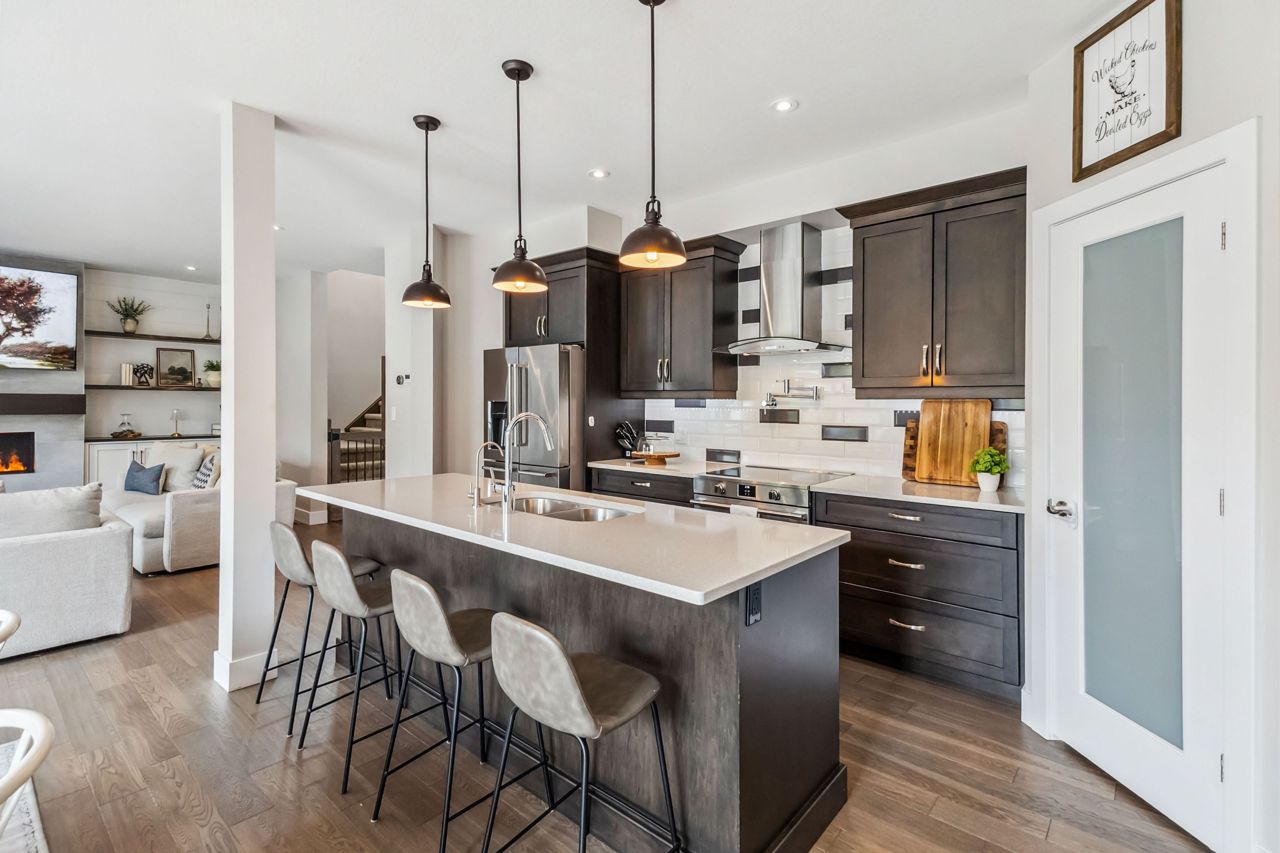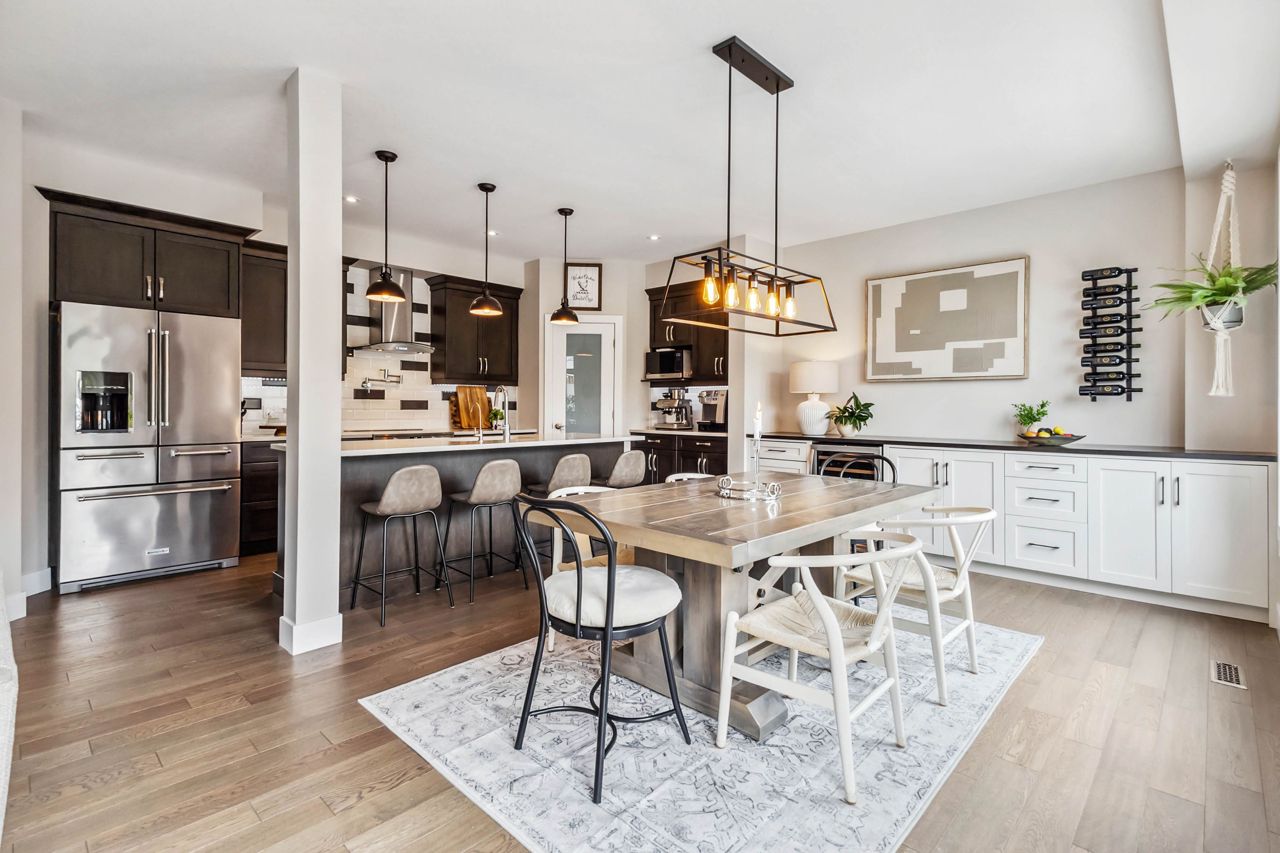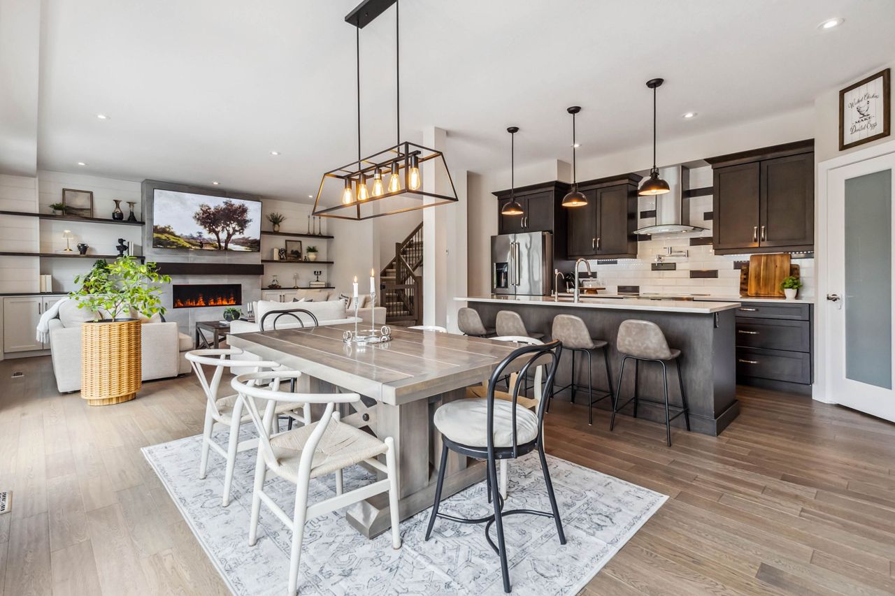 厨师级厨房配备石英台面、步入式食品储藏室、酒吧冰箱、定制嵌入式餐柜,并直通带钢化玻璃围栏的私人露台,配有隐私隔板、天然气火坑和按摩浴缸,是户外放松的绝佳场所。客厅宽敞明亮,配有Opti-myst水雾壁炉和更多定制内置家具。
