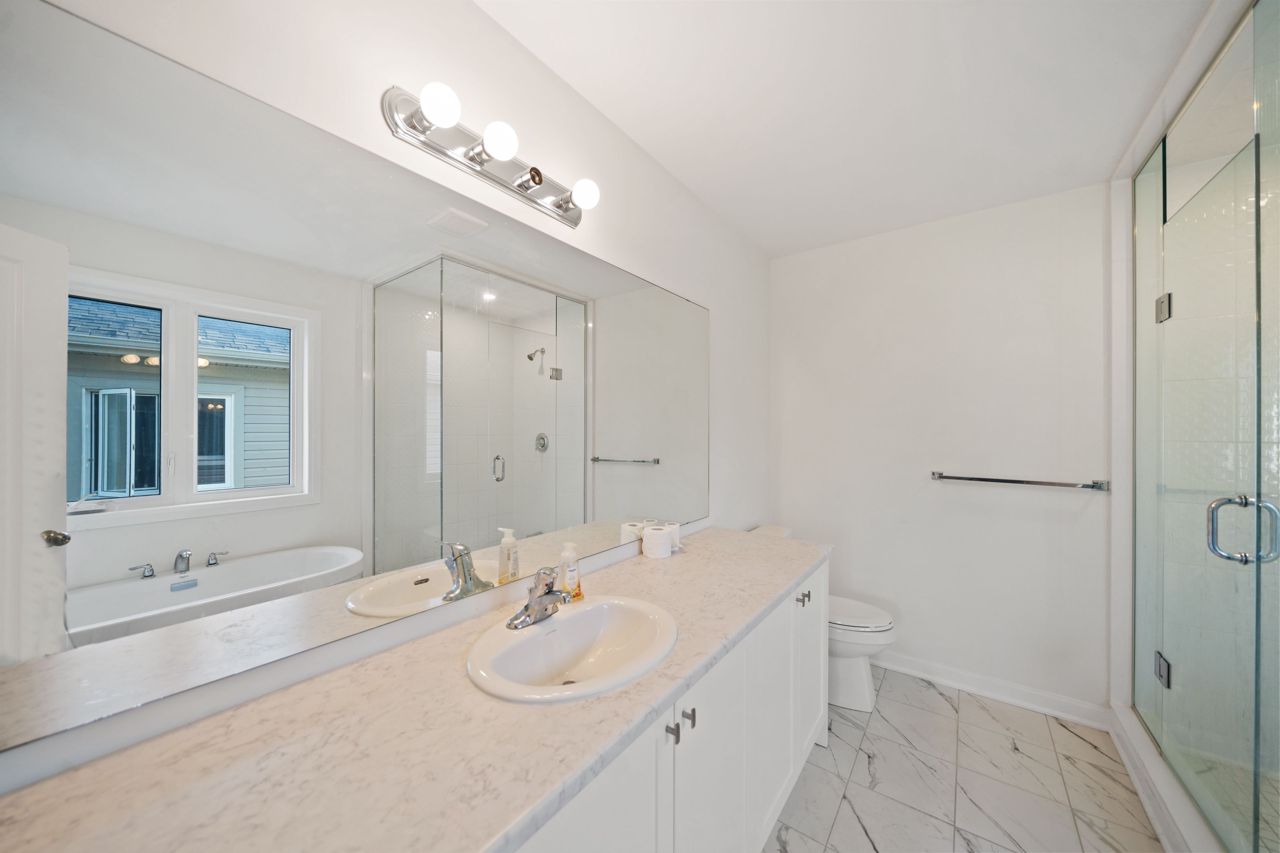 二层采用全区域舒适地毯设计,前两间卧室采用"Jack & Jill"共享卫浴格局,第三、四间卧室同样采用此创新布局,确保每间卧室均享独立卫浴。超大衣帽间遍布各处。主卧套房配备双开门入口、步入式衣帽间及四件套卫浴,包含浸泡式浴缸与瓷砖步入式淋浴间。