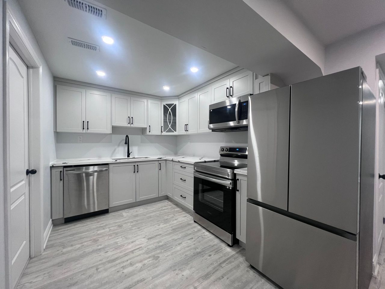 Fully upgraded Basement unit for rent! A lot of windows and have natural light fill up almost all the spaces! Over 1100 sqf living space with private entrance and private washer & Dryer. Laminate throughout and Pot light throughout. Parking is at the rear, Two parking spaces beside garage. Convenient location for School, Parks, Shops, and Community center and Transportation.S.S. Double door Fridge, S.S. range, Over-the-Range Microwave, S.S. Dishwasher, Washer, Dryer, and WIndow Blind.
