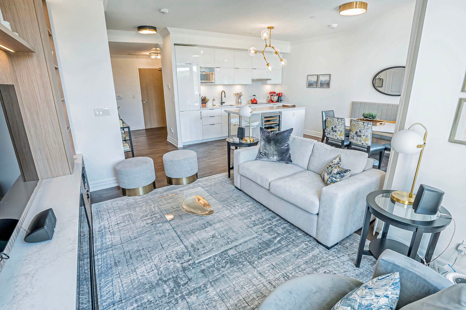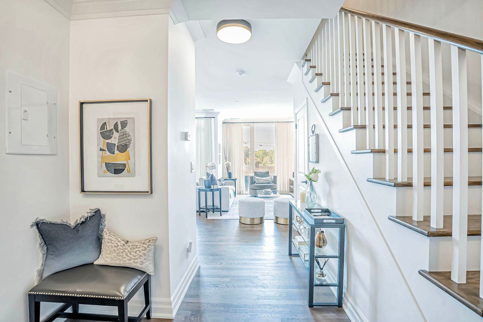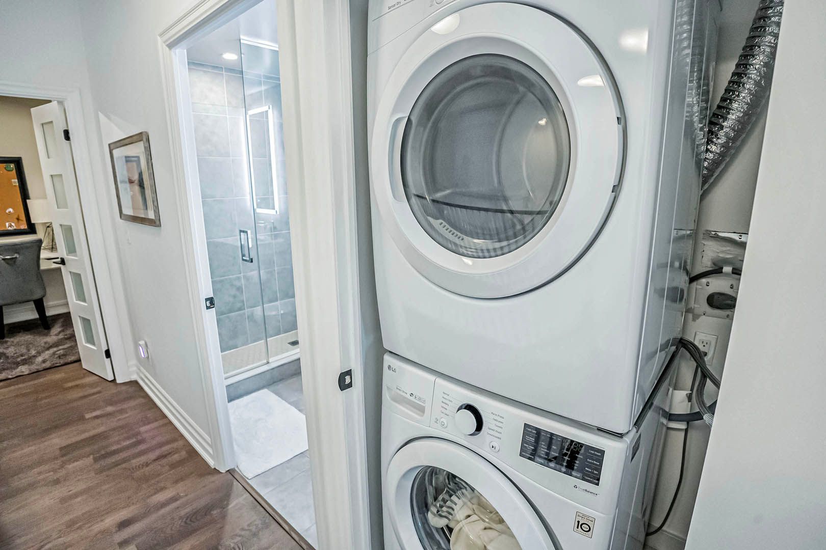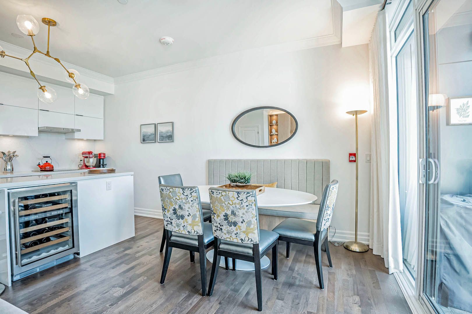 Welcome to elevated elegance and sophistication. **Everything in this home is custom and designer inspired** Chic wallpaper in the bedrooms & bathrooms (textured wallpaper in master bedroom). Caesarstone and wood media wall with dimmable ambient led lighting - includes built in remote controlled electric fireplace. Television also *included*. Caesarstone on the media wall, kitchen island and backsplash all match. Built in banquet in breakfast area with cabinets underneath. Beautiful kitchen island with wine fridge underneath + touchless faucet. Under stairs storage room has been transformed into a pantry with built in shelving and cabinets. Designer inspired light fixtures, door handles and bathroom hardware. Modern style crown moulding and baseboards. Bedrooms with blinds + black out curtains. A spacious spa like master bathroom with a tub and double sink. 250 sq ft large terrace to entertain guests. If you want refined living at it's best, this is the home for you! *Parking & Locker included* Parking level on P1All existing appliances + Subzero wine fridge, wardrobe closet in third bedroom, all window coverings, all light fixtures, all mirrors in bathrooms, built in banquet, television, existing thermostat, usb compatible electrical outlet