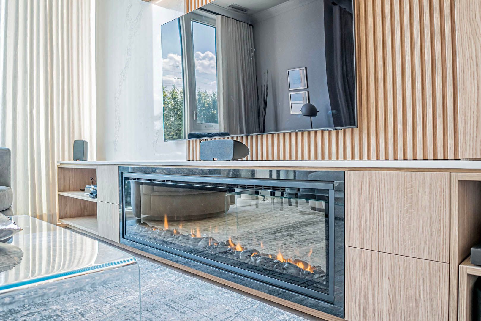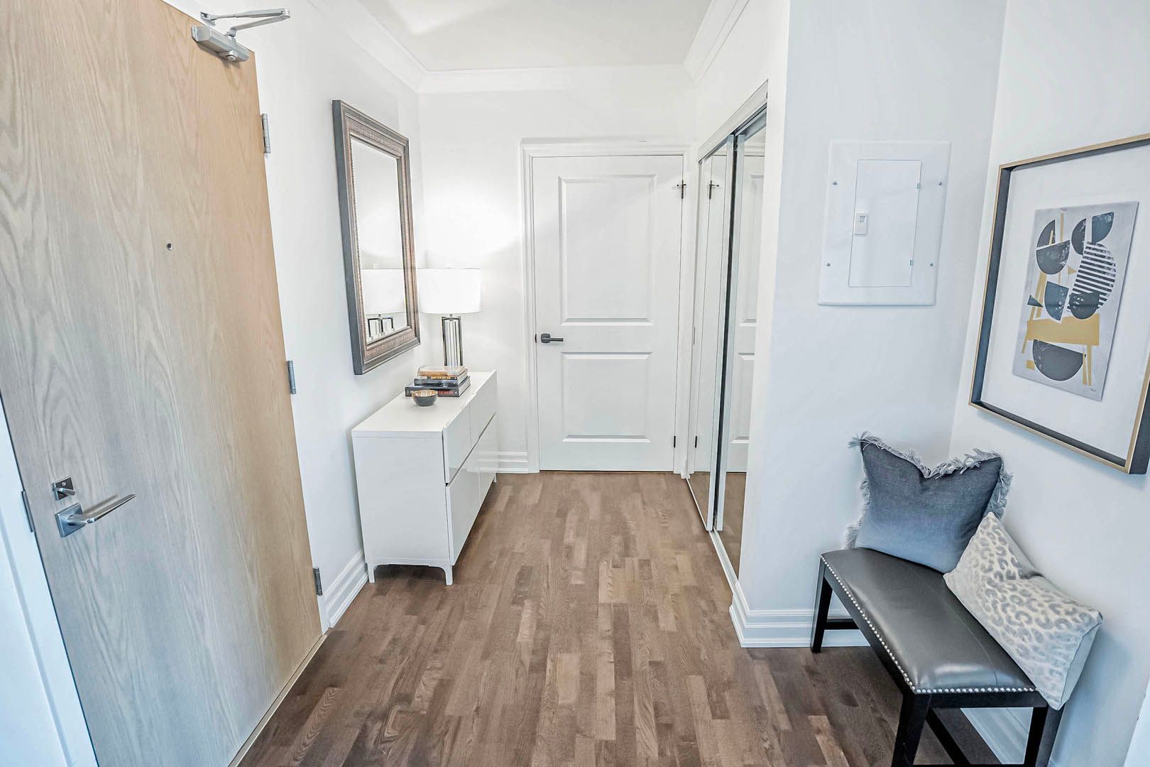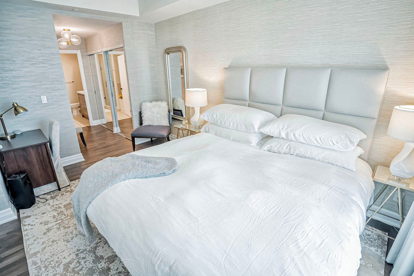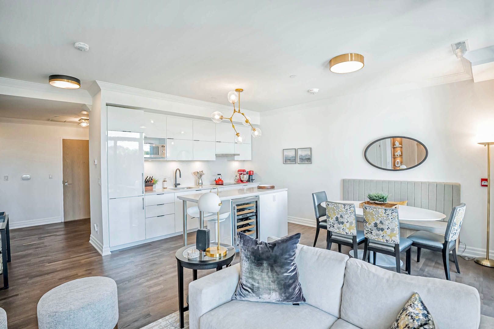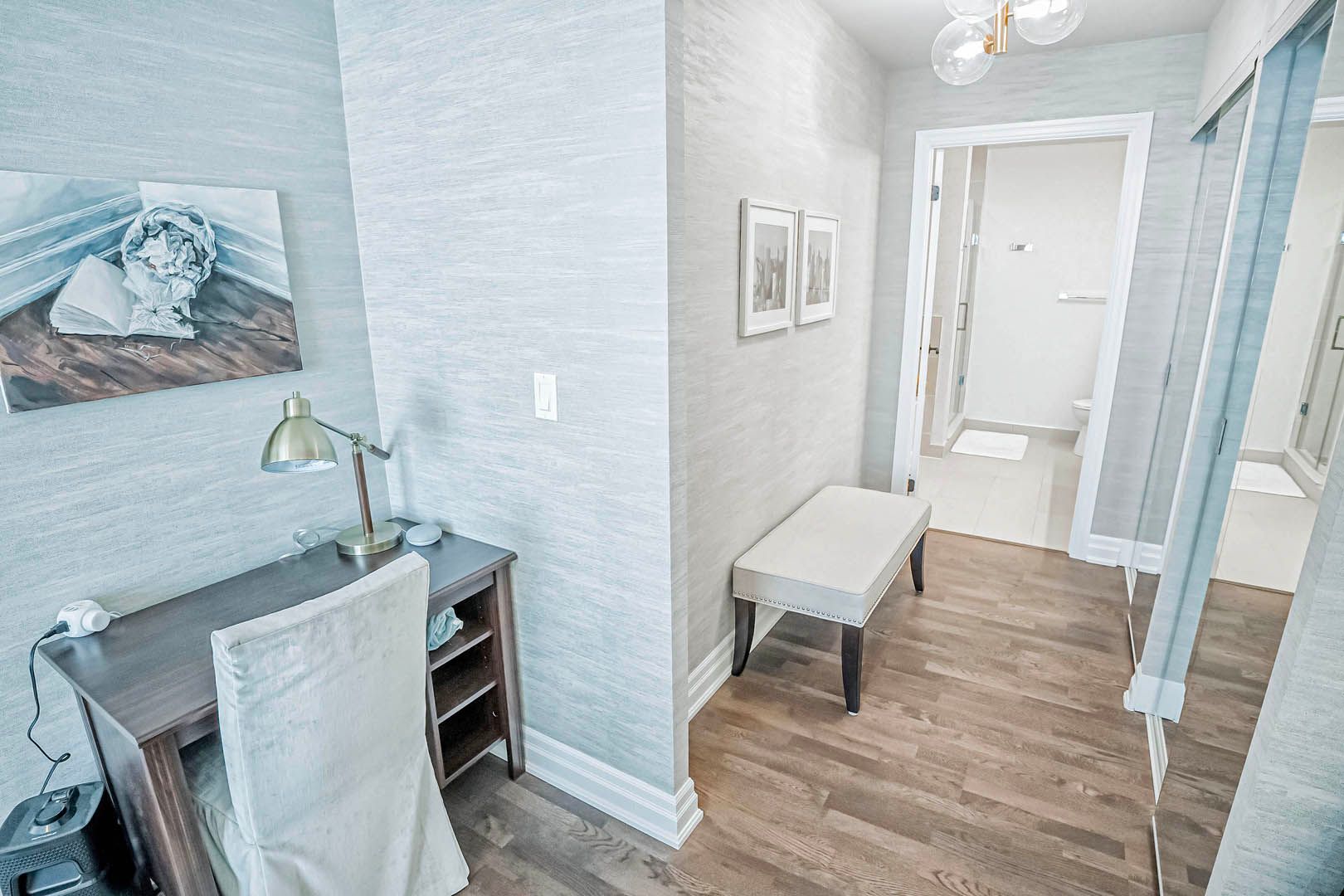 Welcome to elevated elegance and sophistication. **Everything in this home is custom and designer inspired** Chic wallpaper in the bedrooms & bathrooms (textured wallpaper in master bedroom). Caesarstone and wood media wall with dimmable ambient led lighting - includes built in remote controlled electric fireplace. Television also *included*. Caesarstone on the media wall, kitchen island and backsplash all match. Built in banquet in breakfast area with cabinets underneath. Beautiful kitchen island with wine fridge underneath + touchless faucet. Under stairs storage room has been transformed into a pantry with built in shelving and cabinets. Designer inspired light fixtures, door handles and bathroom hardware. Modern style crown moulding and baseboards. Bedrooms with blinds + black out curtains. A spacious spa like master bathroom with a tub and double sink. 250 sq ft large terrace to entertain guests. If you want refined living at it's best, this is the home for you! *Parking & Locker included* Parking level on P1All existing appliances + Subzero wine fridge, wardrobe closet in third bedroom, all window coverings, all light fixtures, all mirrors in bathrooms, built in banquet, television, existing thermostat, usb compatible electrical outlet