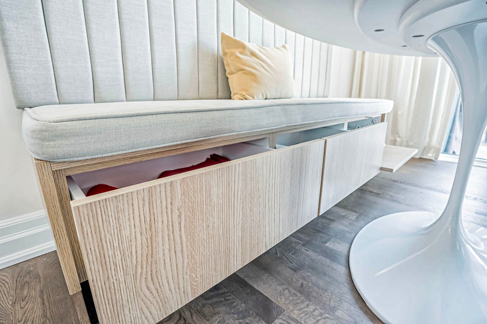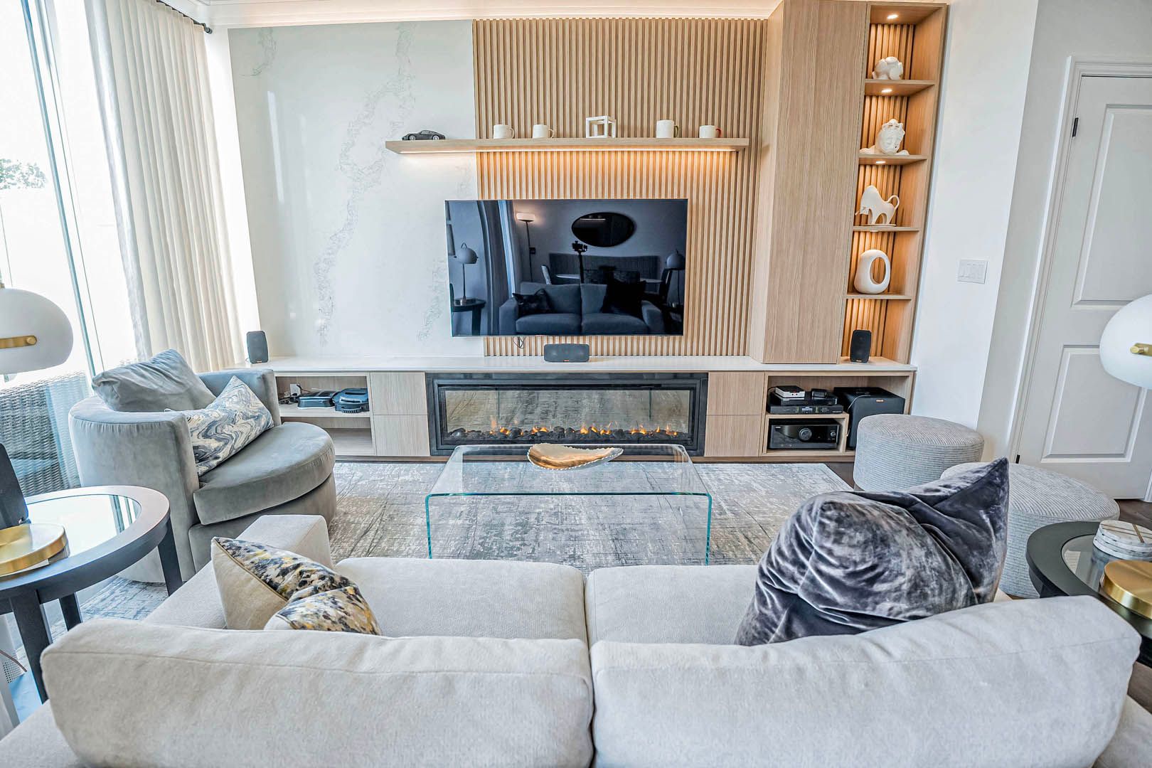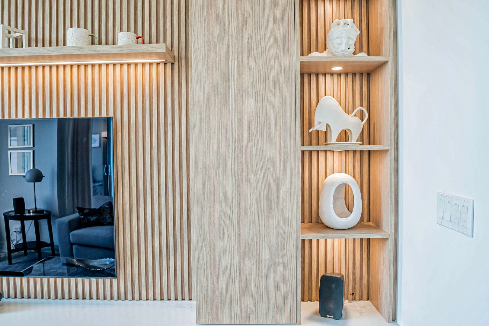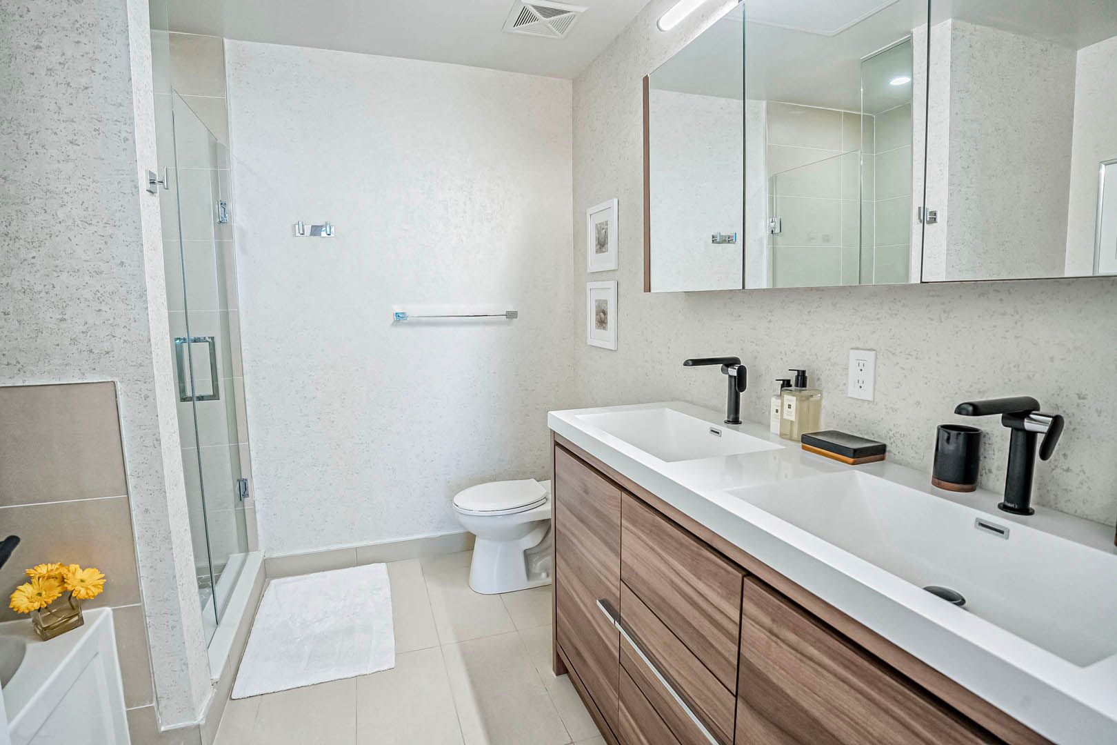 Welcome to elevated elegance and sophistication. **Everything in this home is custom and designer inspired** Chic wallpaper in the bedrooms & bathrooms (textured wallpaper in master bedroom). Caesarstone and wood media wall with dimmable ambient led lighting - includes built in remote controlled electric fireplace. Television also *included*. Caesarstone on the media wall, kitchen island and backsplash all match. Built in banquet in breakfast area with cabinets underneath. Beautiful kitchen island with wine fridge underneath + touchless faucet. Under stairs storage room has been transformed into a pantry with built in shelving and cabinets. Designer inspired light fixtures, door handles and bathroom hardware. Modern style crown moulding and baseboards. Bedrooms with blinds + black out curtains. A spacious spa like master bathroom with a tub and double sink. 250 sq ft large terrace to entertain guests. If you want refined living at it's best, this is the home for you! *Parking & Locker included* Parking level on P1All existing appliances + Subzero wine fridge, wardrobe closet in third bedroom, all window coverings, all light fixtures, all mirrors in bathrooms, built in banquet, television, existing thermostat, usb compatible electrical outlet