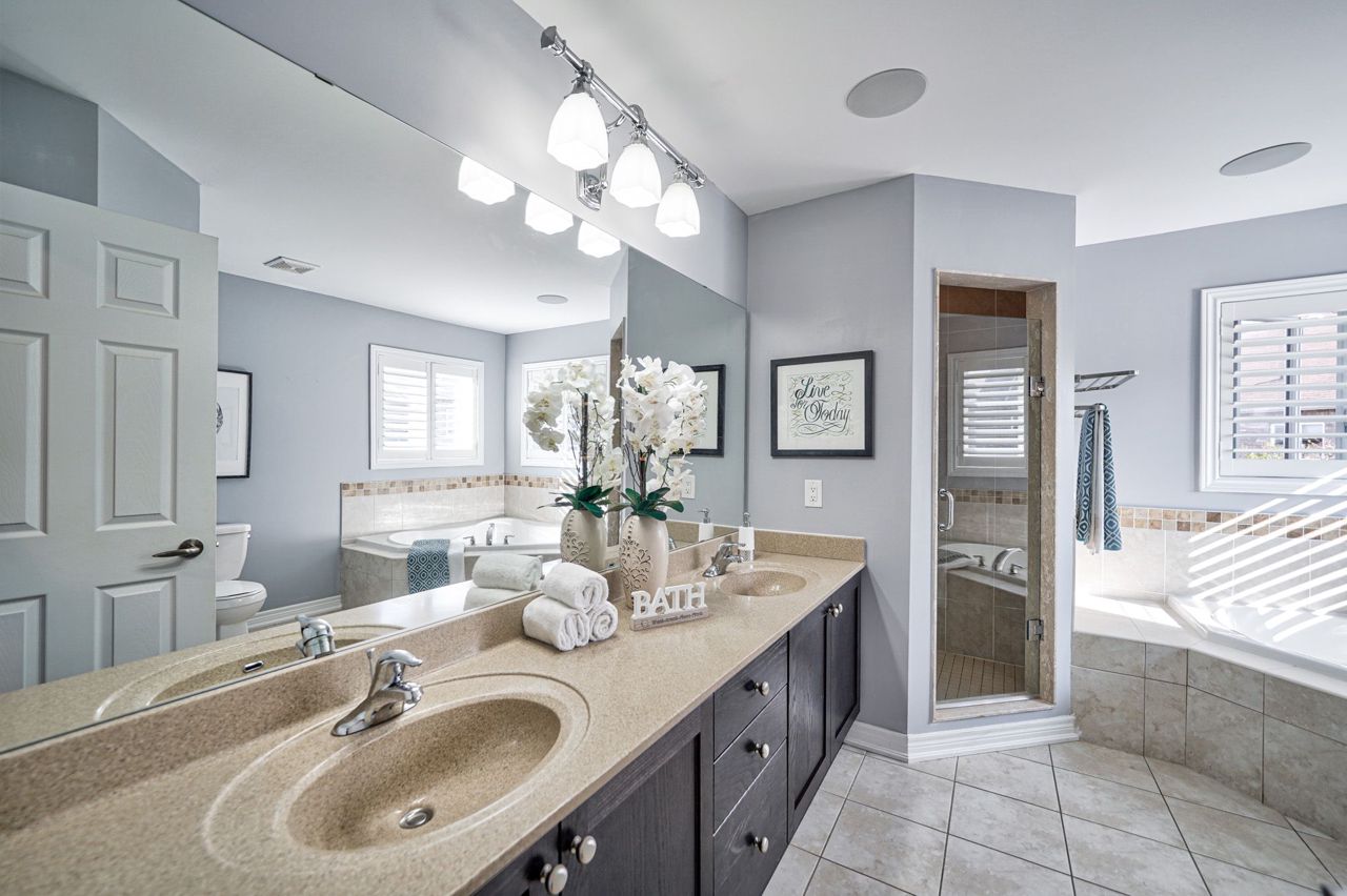 Perfection In A Family Home! 2 Storey Detached About 2857Sq/Ft, 4+1 Bedrooms & 4.5 Baths Situated On A Premium Lot. This House Offers: Beautiful 104Ft Wide Backyard, Professional Interlock In Front And Back Yard .New Painting Fantastic Open Concept Layout, B/I Speakers, Cat6 Wiring Thruout, Humidifier, Uv Air Purifier. Master Bdrm W/6 Pc Ensuite, Guest Bdrm W/ 4 Pc Ensuite, Cali Shutters 2nd Flr And Family Rm, Front Load Washer/Dryer, Pot Lights& More. Steps To School, Park & Shops, Hospital, Hwy and Community Centres! **Do Not Miss Out!! ***Top Ranking Bur Oak H.S. *Beautiful 104Ft Wide Backyard, *Professional Interlock In Front And Back Yard .*Recently Finished basement with bar Great room, bedroom and 2pc washroom with Vinyl Floor.