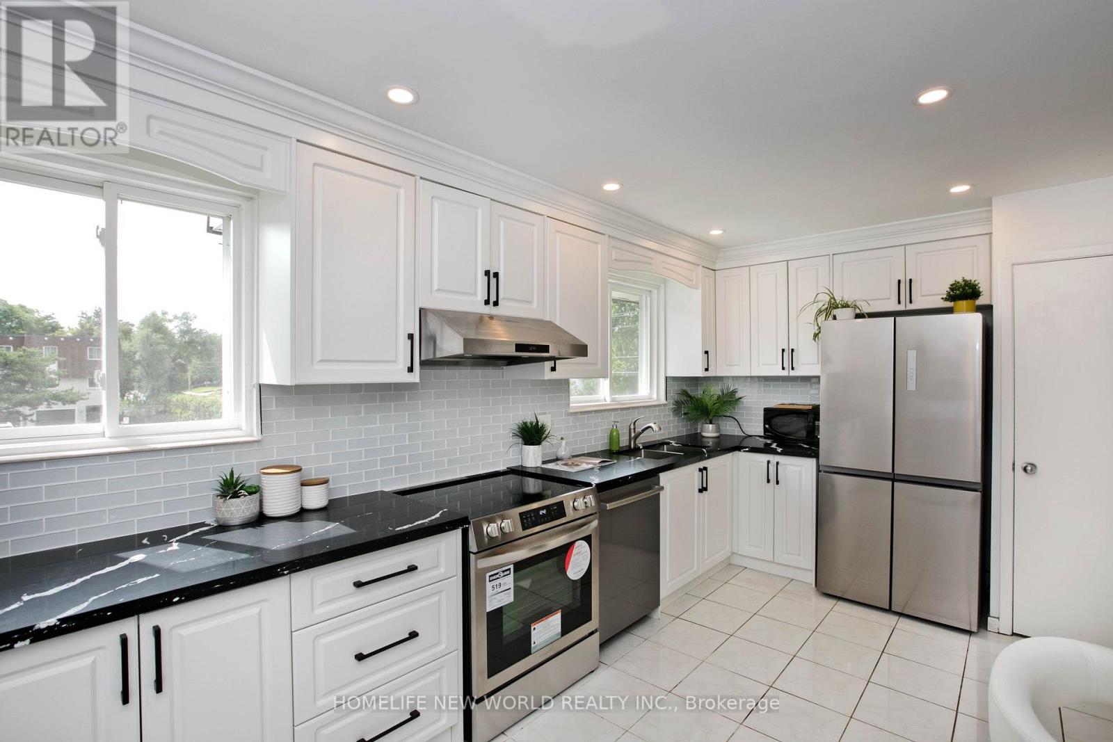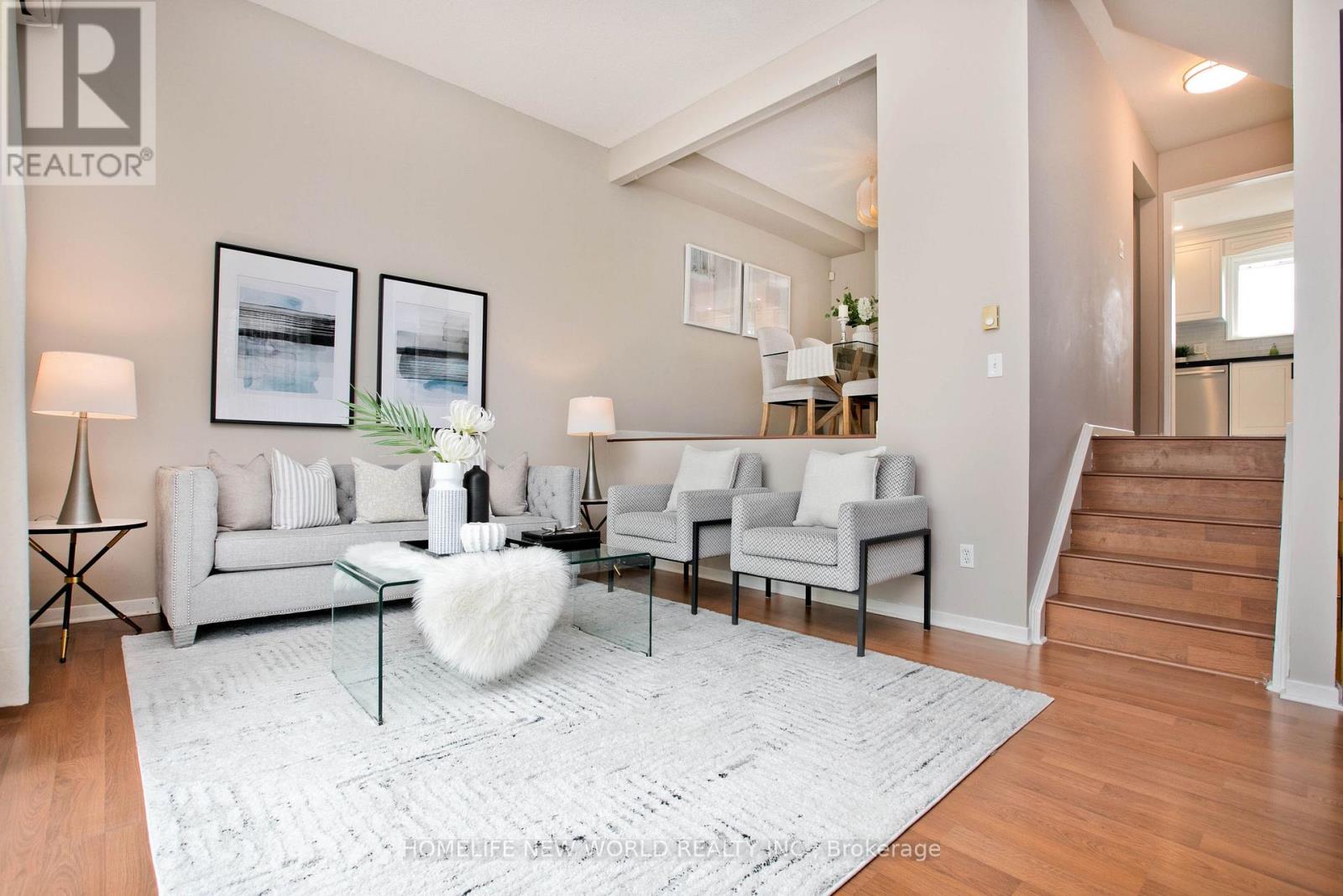 A MUST SEE !!! Newly Renovated Gorgeous Total 4 Levels Quiet Corner Condo Townhouse Situated In The Desirable Thornhill Neighborhood. Total Over 1700Sqft Impressive Features: Main Flr Boasts A Breathtaking Open Concept Living Rm w/High Cathedral Ceilings; Huge Floor to Ceiling Wndws, W/O to Terrace; Upgraded Modern & Bright Kitchen w/Brand New Appliances; Quartz Counter Top; Nice Breakfast Area; Pot lights and Spacious Laundry Rm; Newly Upgraded High Energy Wndws; Three Spacious Bdrms w/Hardwood Flr Throughout & Professionally Renovated 4Pc Bath. Two Bdrms are South Facing w/Plenty Sunlight. Finished Basement w/Vinyl Flr Can be Used as Guest Bdrm, Family Rm or Exercise/Office. All Fresh Paint. This home Also offers A Treed/Private Landscaped Fenced Yard. Close to Top Ranking Schools: Henderson Avenue P.S. (Gifted Program); St. Robert Catholic H.S (IB Program); Thornhill S.S; St.Anthony Catholic M.S. Don't Miss Out This Opportunity !!! .... For More Pictures, Pls See Virtual Tour !**** EXTRAS **** Wall AC Unit Heaters/Cool; Lawn Care & Snow Removal included in Maint. Fee; Auto Garage Remote (id:22211)