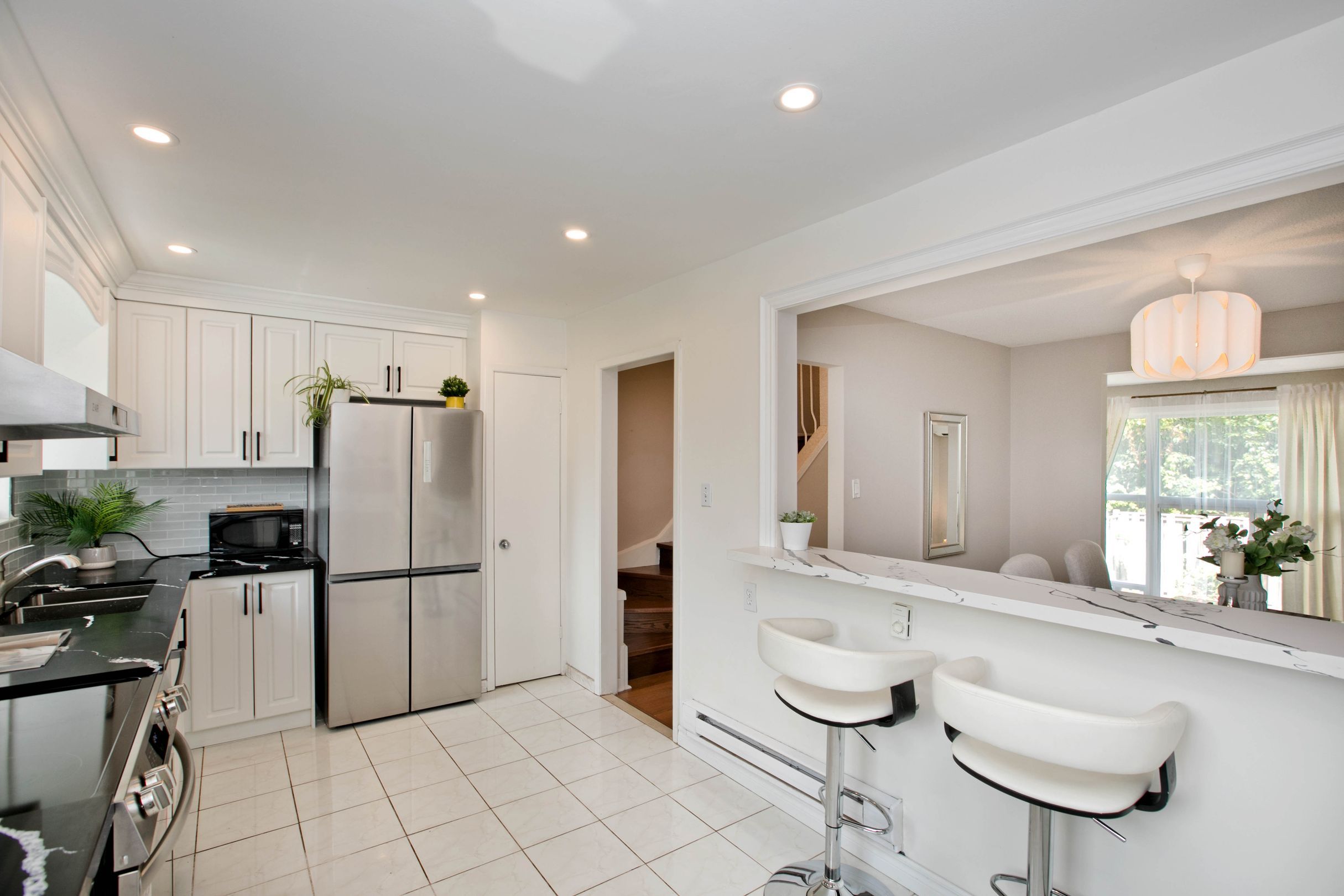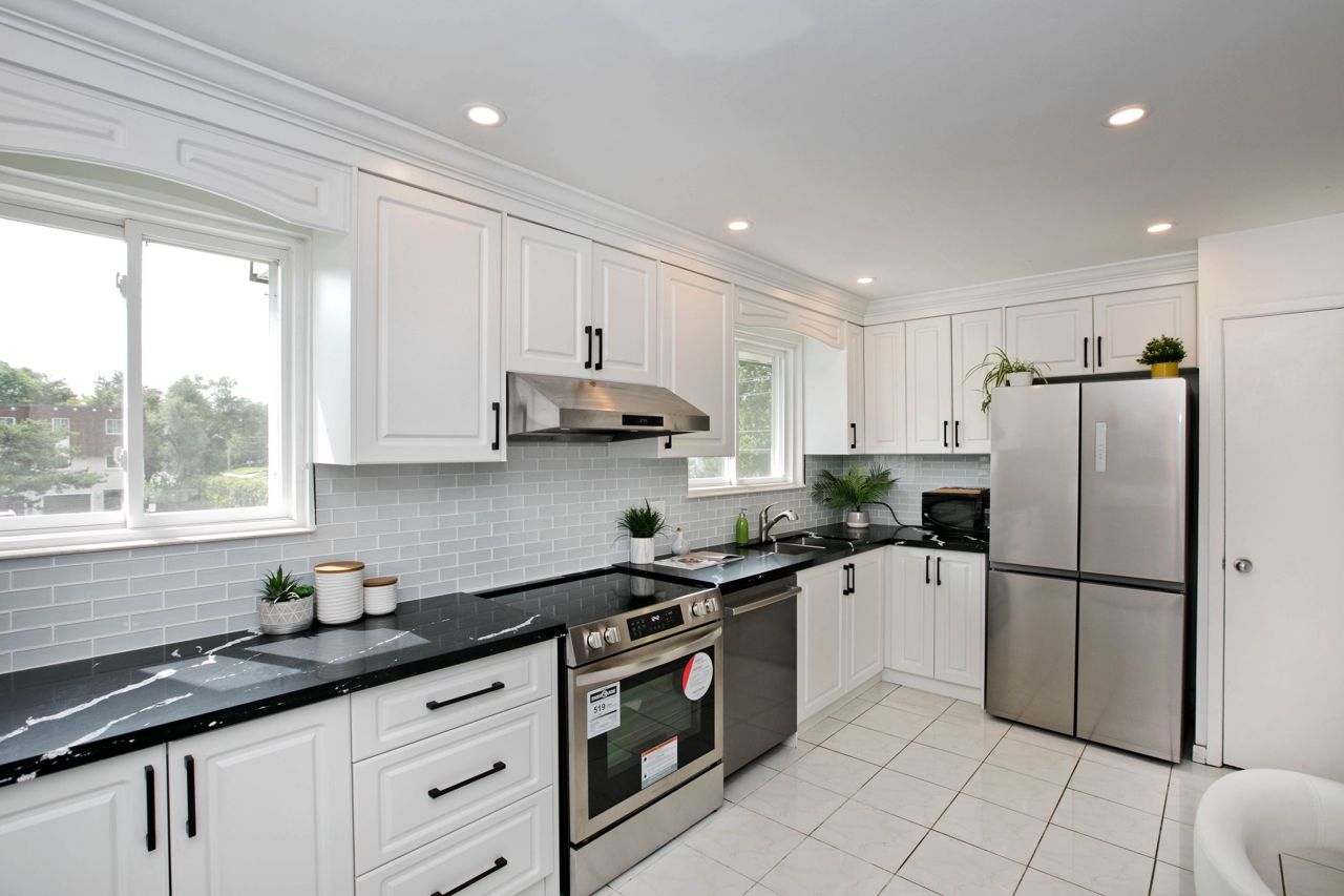 A MUST SEE !!! Newly Renovated Gorgeous Total 4 Levels Quiet Corner Condo Townhouse Situated In The Desirable Thornhill Neighborhood. Total Over 1700Sqft Impressive Features: Main Flr Boasts A Breathtaking Open Concept Living Rm w/High Cathedral Ceilings; Huge Floor to Ceiling Wndws, W/O to Terrace; Upgraded Modern & Bright Kitchen w/Brand New Appliances; Quartz Counter Top; Nice Breakfast Area; Pot lights and Spacious Laundry Rm; Newly Upgraded High Energy Wndws; Three Spacious Bdrms w/Hardwood Flr Throughout & Professionally Renovated 4Pc Bath. Two Bdrms are South Facing w/Plenty Sunlight. Finished Basement w/Vinyl Flr Can be Used as Guest Bdrm, Family Rm or Exercise/Office. All Fresh Paint. This home Also offers A Treed/Private Landscaped Fenced Yard. Close to Top Ranking Schools: Henderson Avenue P.S. (Gifted Program); St. Robert Catholic H.S (IB Program); Thornhill S.S; St.Anthony Catholic M.S. Don't Miss Out This Opportunity !!! .... For More Pictures, Pls See Virtual Tour !Wall AC Unit Heaters/Cool; Lawn Care & Snow Removal included in Maint. Fee; Auto Garage Remote