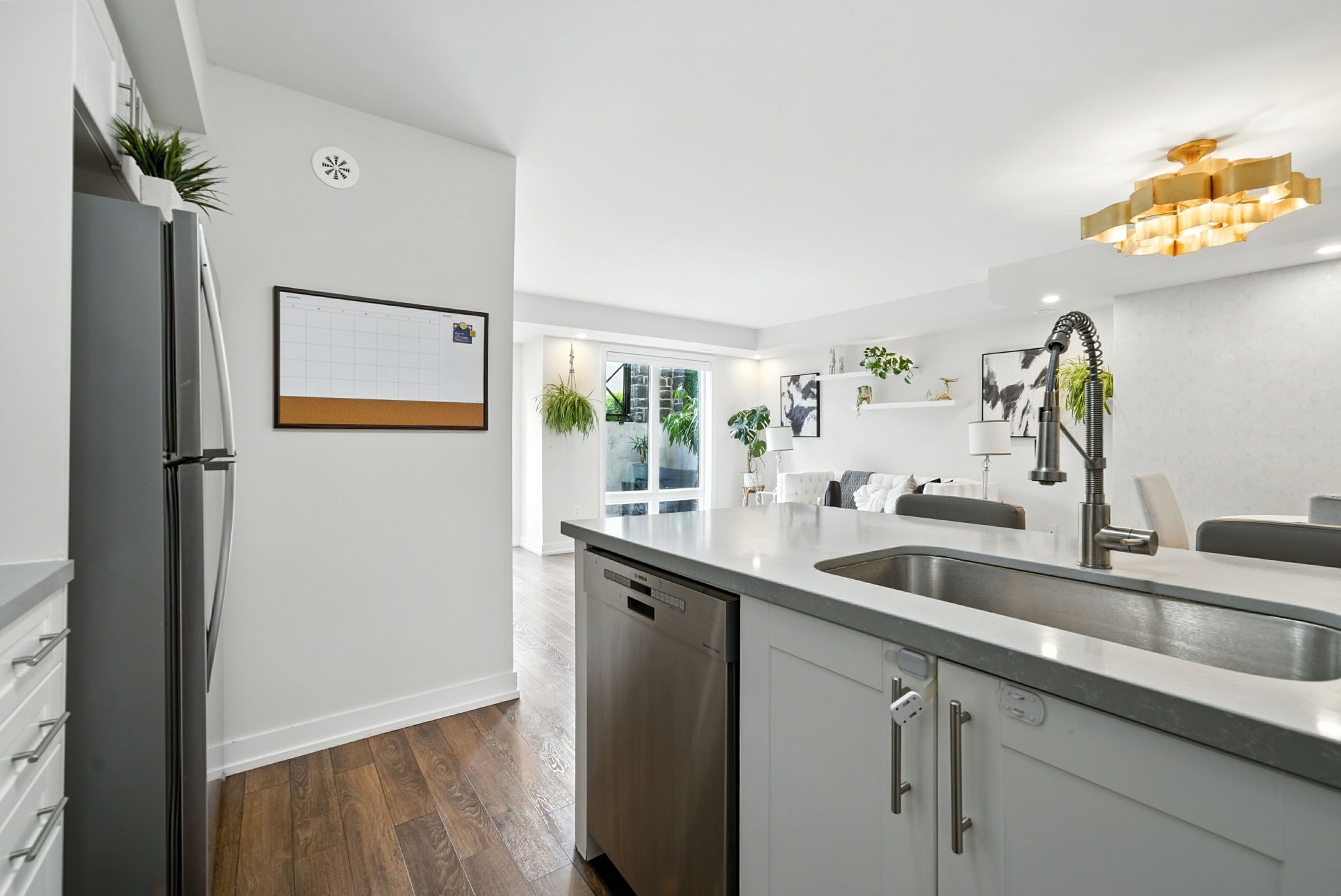 欢迎来到位于格兰德科奈尔(Grand Cornell)的棕石(The Brownstones)这个稀有、朝南的尽头单位,带私人入口。这套1,037平方英尺的住宅,提供明亮、开放式的布局,并配备了智能的储物解决方案,覆盖整个区域。U型厨房时尚且实用,拥有升级的不锈钢电器,全新博世(Bosch)洗碗机(2025年4月),深抽屉,拉出式橱柜整理器,以及一个方便的转角橱柜。嵌入式水槽使清洁变得轻松,而冰箱上方的延伸橱柜则增加了宝贵的储物空间。享受两个完整的四件式卫生间,包括主卫。主卧室拥有超大衣柜,而第二卧室则提供灵活的空间,可用于接待客人,设置办公室或育儿室。步出到您的私人、阳光普照的露台,非常适合放松身心,款待宾客或创建一个小花园天堂。这套住宅包括两个停车位和一个储物柜,位于安全的地下车库内。地理位置完美,靠近顶级便利设施——万锦市斯陶夫维尔医院(Markham Stouffville Hospital)、格兰德科奈尔公园(Grand Cornell Park)、科奈尔社区中心和图书馆,顶尖学校,新的科奈尔巴士总站,以及沃尔玛(Walmart)、Longos 和 Dollaramar 等购物选择——一切您所需都在几分钟路程内。这套尽头单位的联排别墅结合了现代升级,实用设计和无与伦比的便利性,形成一个明亮而温馨的空间。