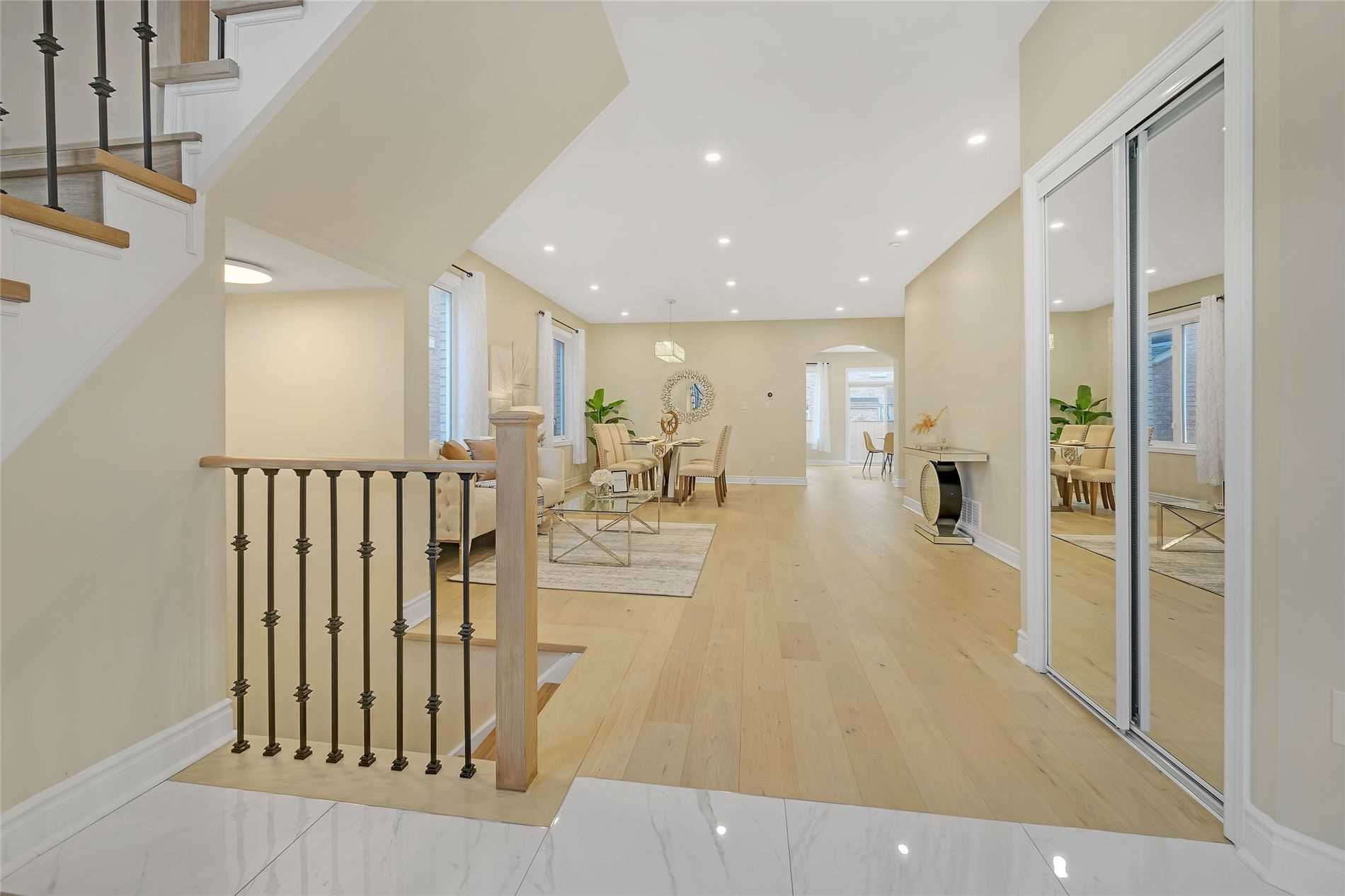 Gorgeous 2 Garage Detached 4 Br In The Quiet Community Of Greensborough. Grand Stone Arch Double Doorway. Modern Renovations, Brand New Pot Lights Throughout, Iron Picket Stairwell, 9Ft Ceiling, Hardwood Flooring, Large Format Ceramic Tiles. Modern Kitchen, Island With Bar Seating And Large Breakfast Area. Updated S.S Appliance And Gas Stove. Open Concept Living W/ Dining Conversion. Open Study On 2nd Level, 2 Way Fireplace In Master With Upgraded 5 Pc Glass Shower. Double Stairwell To Basement. Matching Stone Landscaping Aesthetic. Long Driveway W/Out Sidewalk. Immaculate Move In Ready Condition.