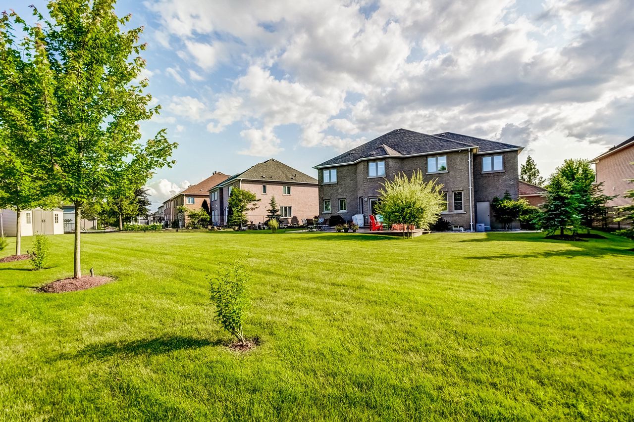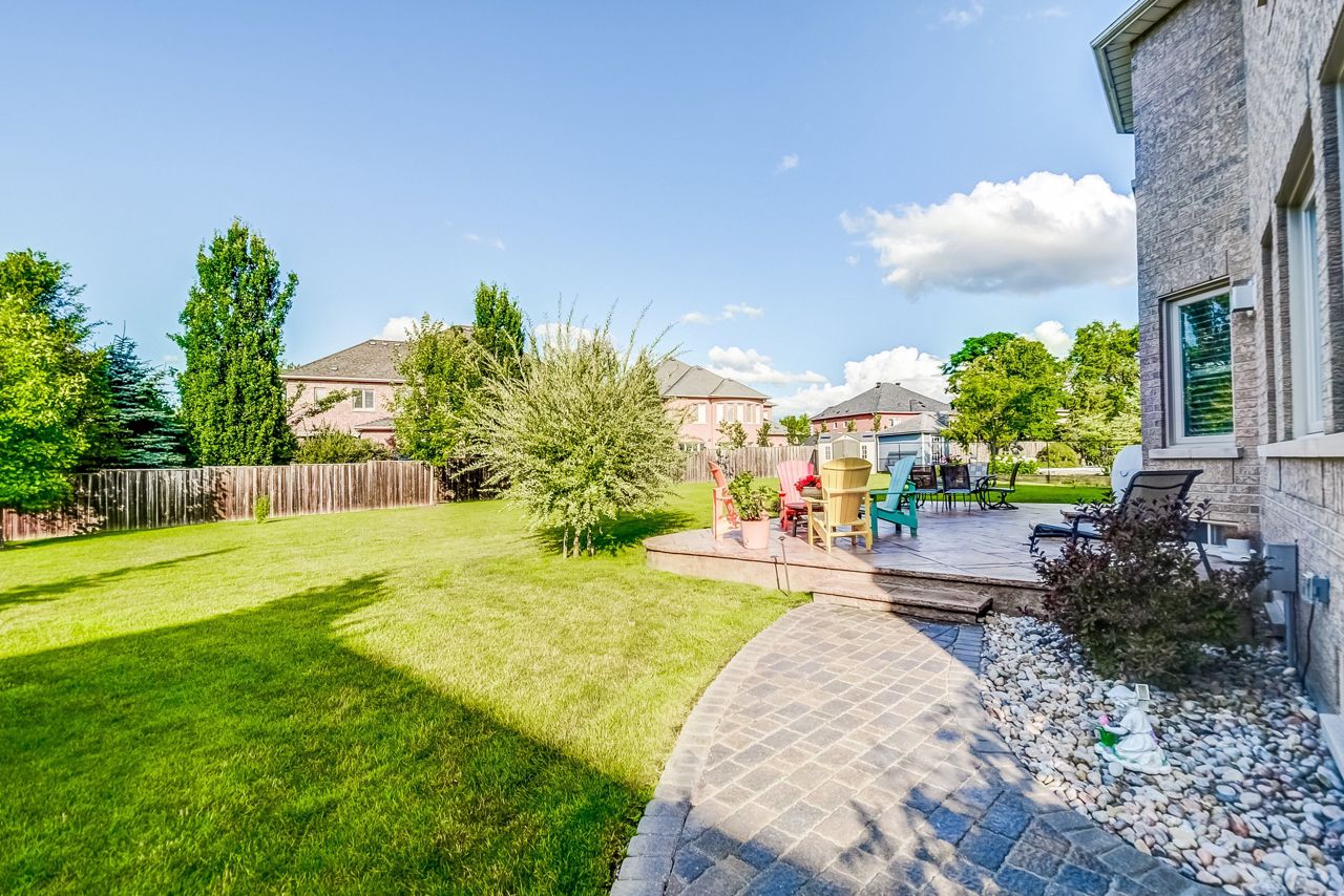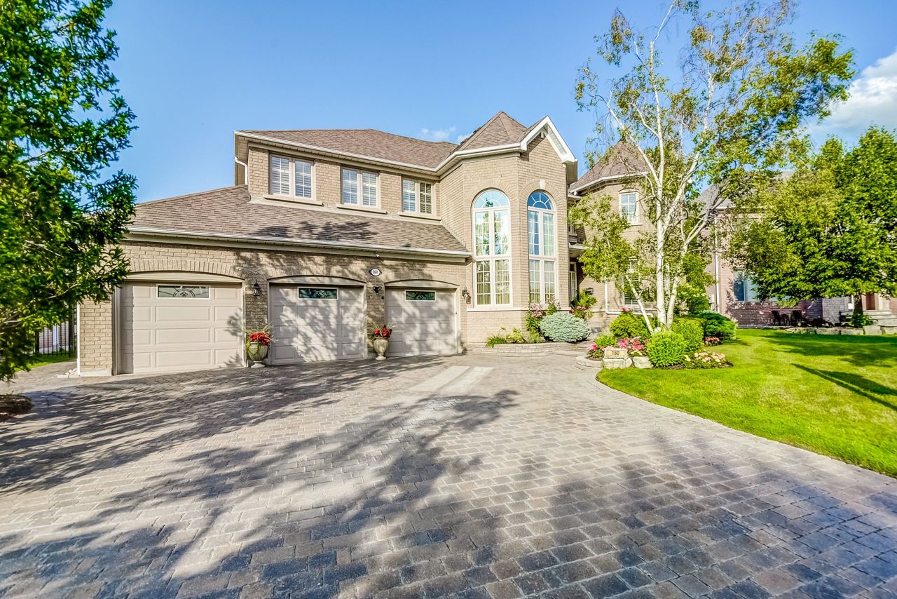 Truly a gem, unlike any others in the comfort of city-living! One of a kind pie-shaped lot boosting 16,000+ sq. ft. of land that showcases an enormous backyard with a large "Pattern Concrete" patio. Proud owner of 20+ years! Stunning 4,300+ sq. ft. 4 bedroom, 3+1 bathroom Madison home in the prestigious neighbourhood of Cachet. 3 car garage with 1 additional tandem parking that allows for total of 4 car parking with direct access to both the house and the backyard. Huge master bedroom with ensuite, walk-in closets, sitting area & California shutters. Regal 2 story ceiling, crown moulding & hardwood floor in the living room for an additional WOW factor. Huge basement area that is open for your design to come true. Located close to all amenities such as supermarkets, restaurants, parks, shopping centres, top ranked schools as well as Hwys. 404 & 407. 3 outdoor floodlight cameras & security alarm system.Lot measurement: 21.73 ft x 146.23 ft x 59.54 ft x 160.76 ft x 41.25 ft x 87.75 ft. Additionally included: Shed in backyard