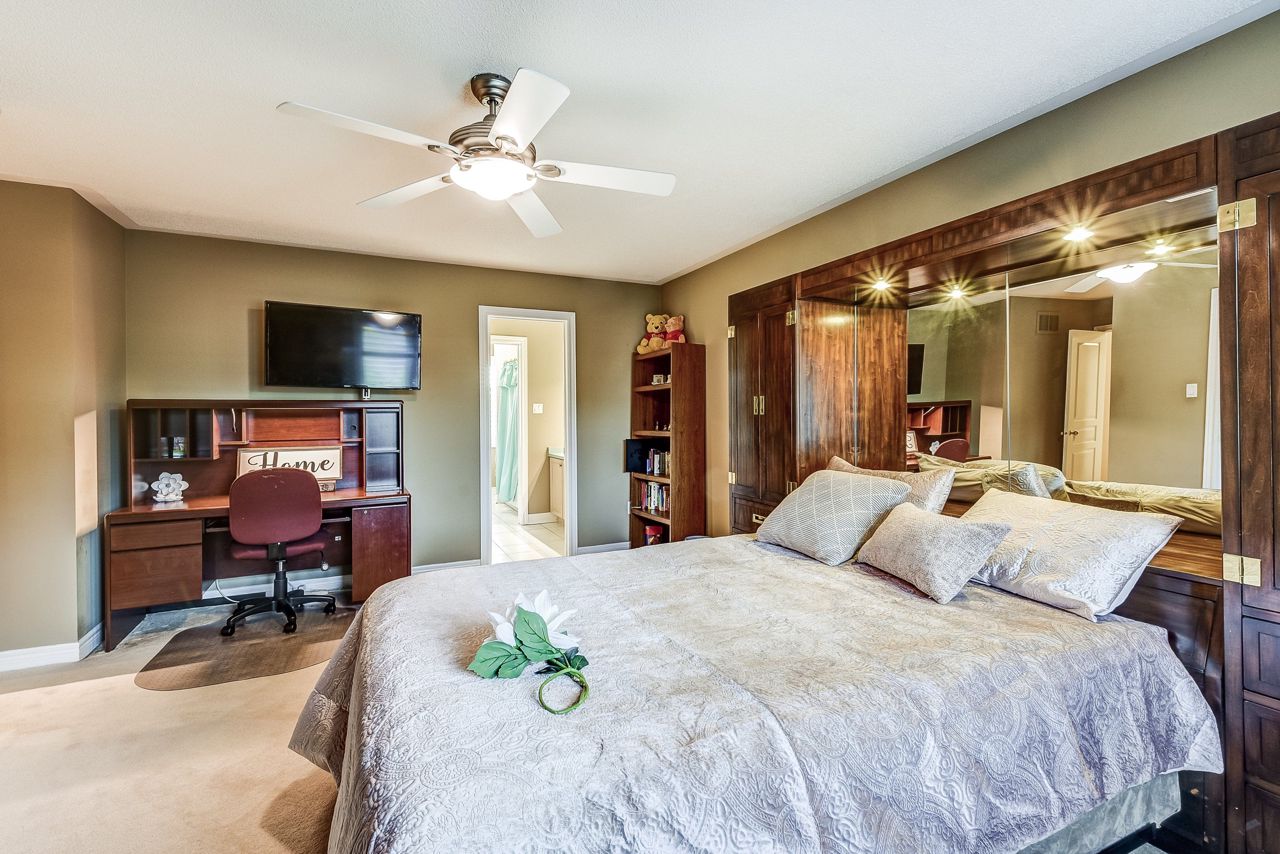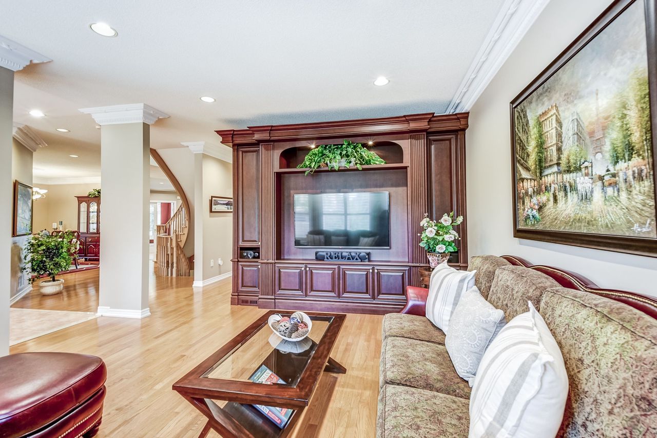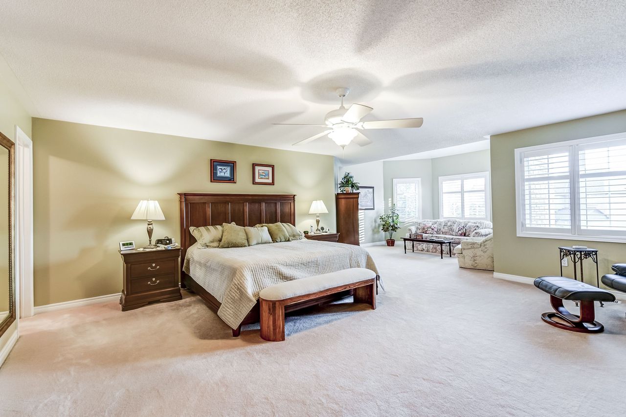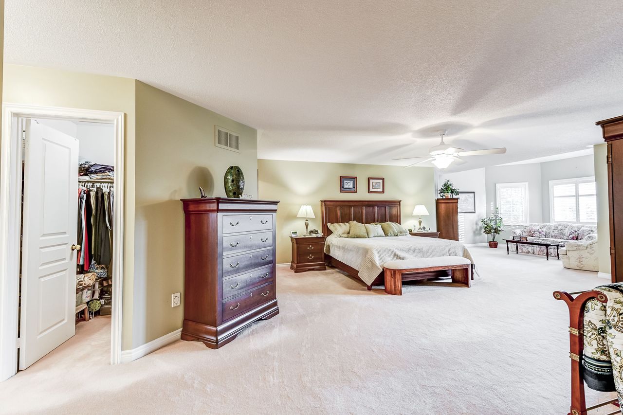 Truly a gem, unlike any others in the comfort of city-living! One of a kind pie-shaped lot boosting 16,000+ sq. ft. of land that showcases an enormous backyard with a large "Pattern Concrete" patio. Proud owner of 20+ years! Stunning 4,300+ sq. ft. 4 bedroom, 3+1 bathroom Madison home in the prestigious neighbourhood of Cachet. 3 car garage with 1 additional tandem parking that allows for total of 4 car parking with direct access to both the house and the backyard. Huge master bedroom with ensuite, walk-in closets, sitting area & California shutters. Regal 2 story ceiling, crown moulding & hardwood floor in the living room for an additional WOW factor. Huge basement area that is open for your design to come true. Located close to all amenities such as supermarkets, restaurants, parks, shopping centres, top ranked schools as well as Hwys. 404 & 407. 3 outdoor floodlight cameras & security alarm system.Lot measurement: 21.73 ft x 146.23 ft x 59.54 ft x 160.76 ft x 41.25 ft x 87.75 ft. Additionally included: Shed in backyard