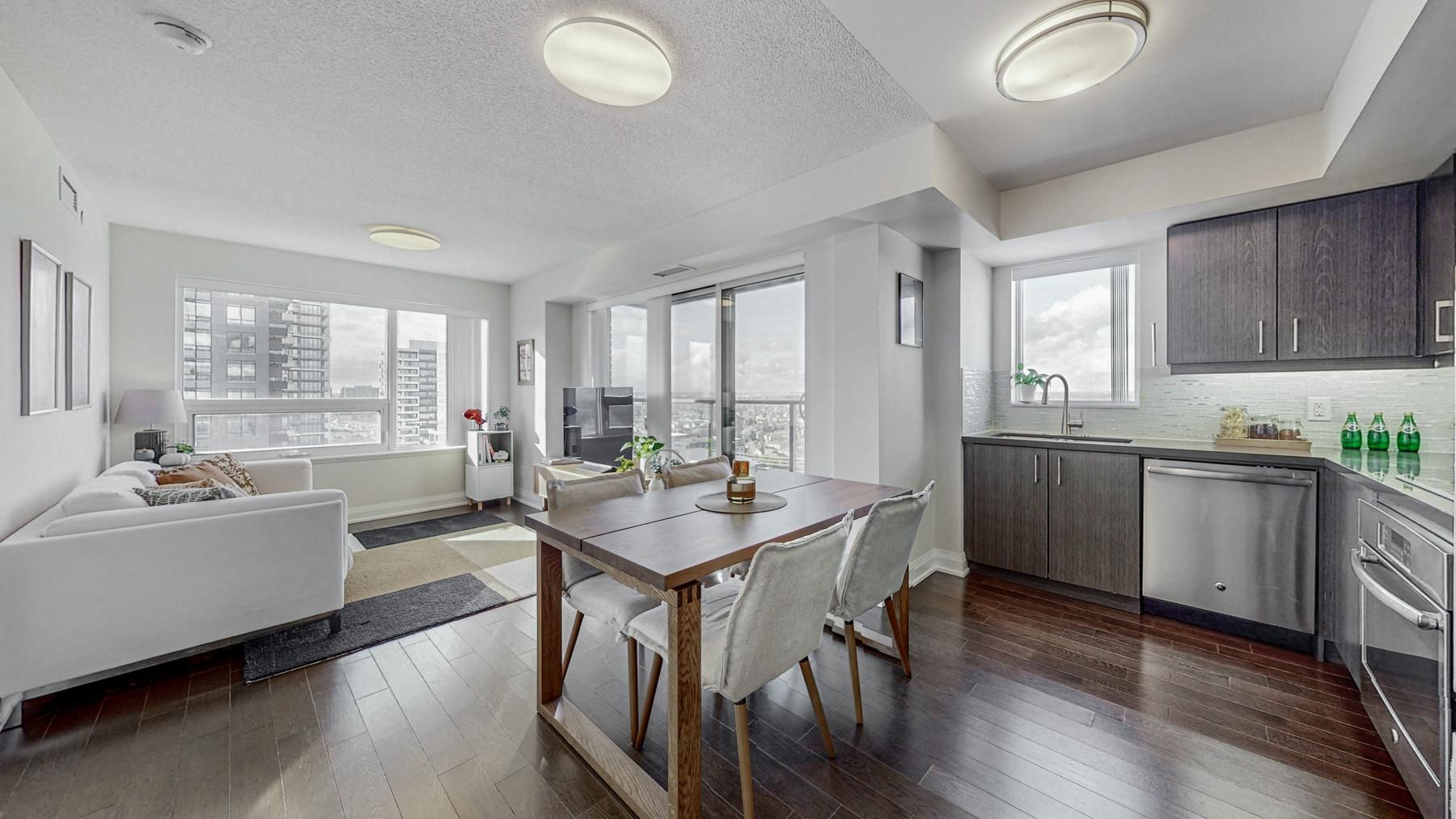Location,Location,Location!Absolutely Beautiful 2 Bedrooms Luxury Condo With 859 Sqft Plus 50 Sqft Balcony In Uptown Markham - Riverwalk East By Times Group, Corner Unit In High Floor With Great clear City View Of Markham. Laminated Floor Throughout. Open Concept Kitchen with Upgraded Granite Countertop & Stainless Appliances. 2023 New cooktop, faucets, cabinet handles, fresh paint. Ensuite Bath And Walk-In Closet In Spacious Master Bedroom. Very Bright & Spacious with Excellent Layout.Close To 404/407.Top Rank Unionville High School, Restaurants, Banks, Theatre, York University Campus.5 minutes walk to the Markham Downtown. Absolutely Your Dream Home.Stainless Steel: Fridge, Stove, Exhaust Fan, Built-In Dishwasher, Washer And Dryer, All Existing Light Fixture, All Existing Window Blinds. All Existing Elf's, 1 Parking.